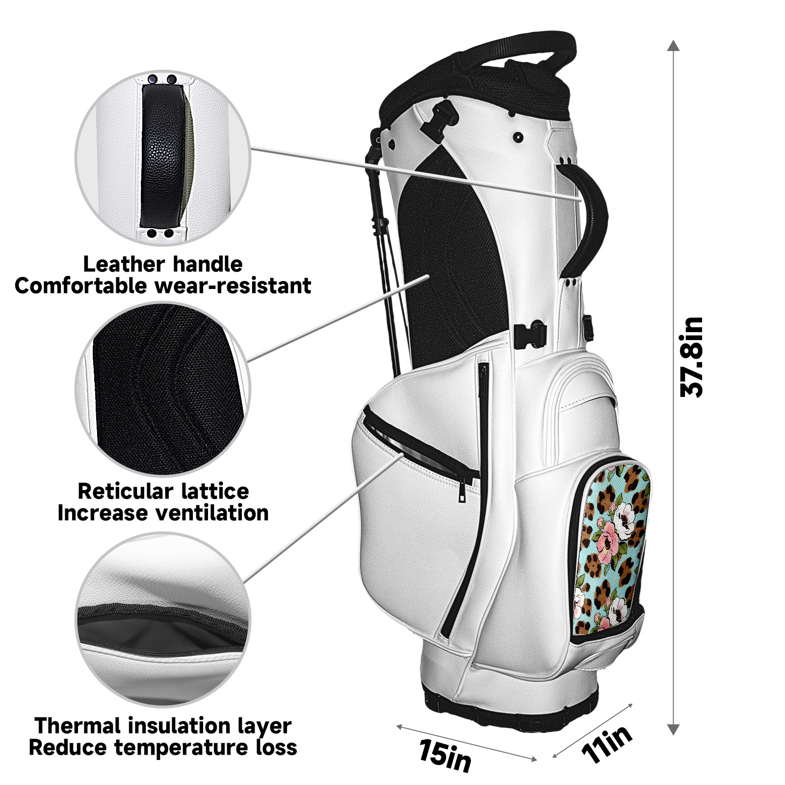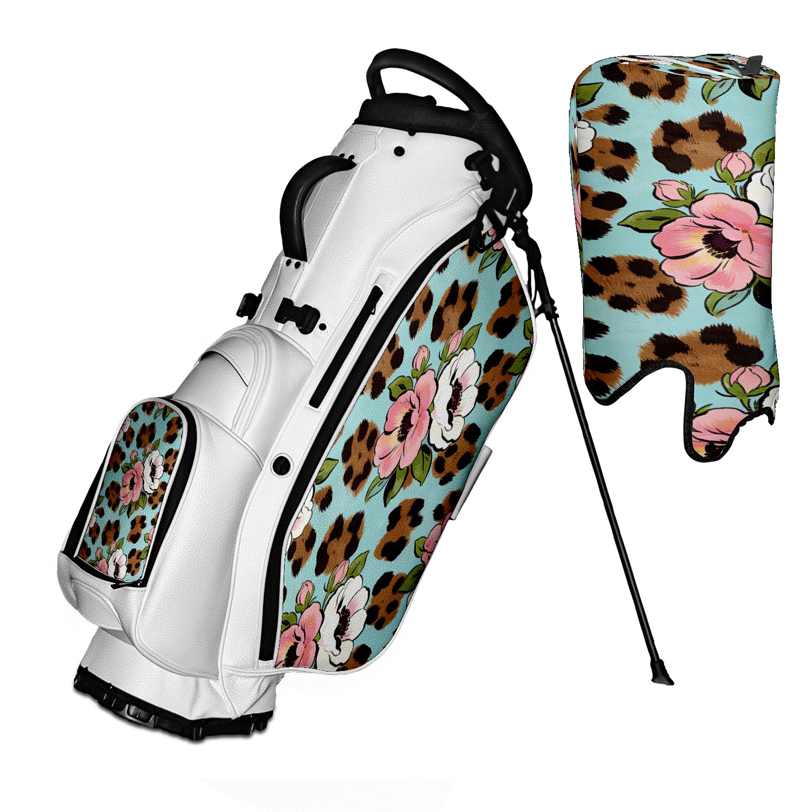 5 - Way Divider Golf Stand Bag, Lightweight Golf Bag with Padded Straps & Rain Cover for Men & Women, Ideal for Golf Courses & Driving Ranges Leopard Print Flowers