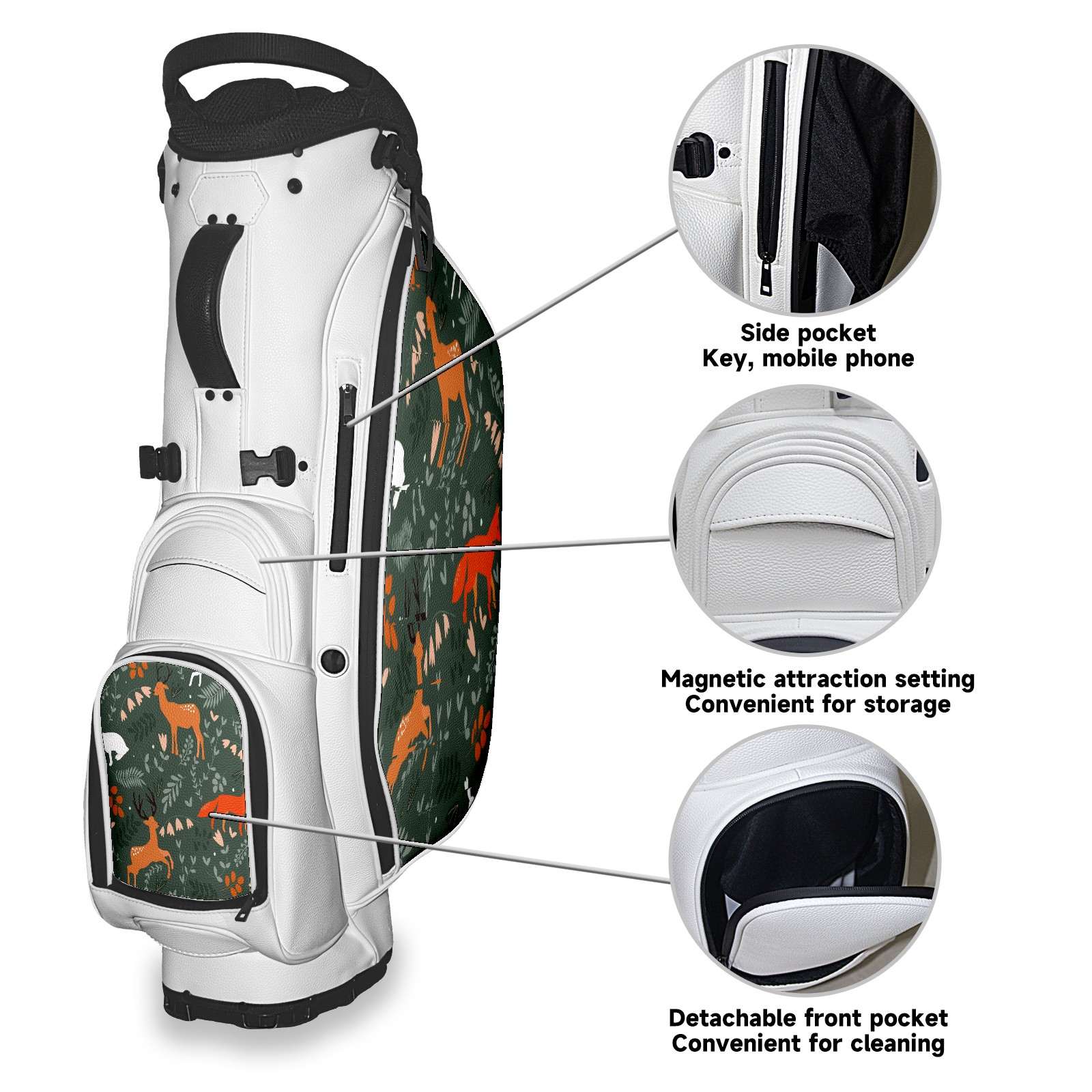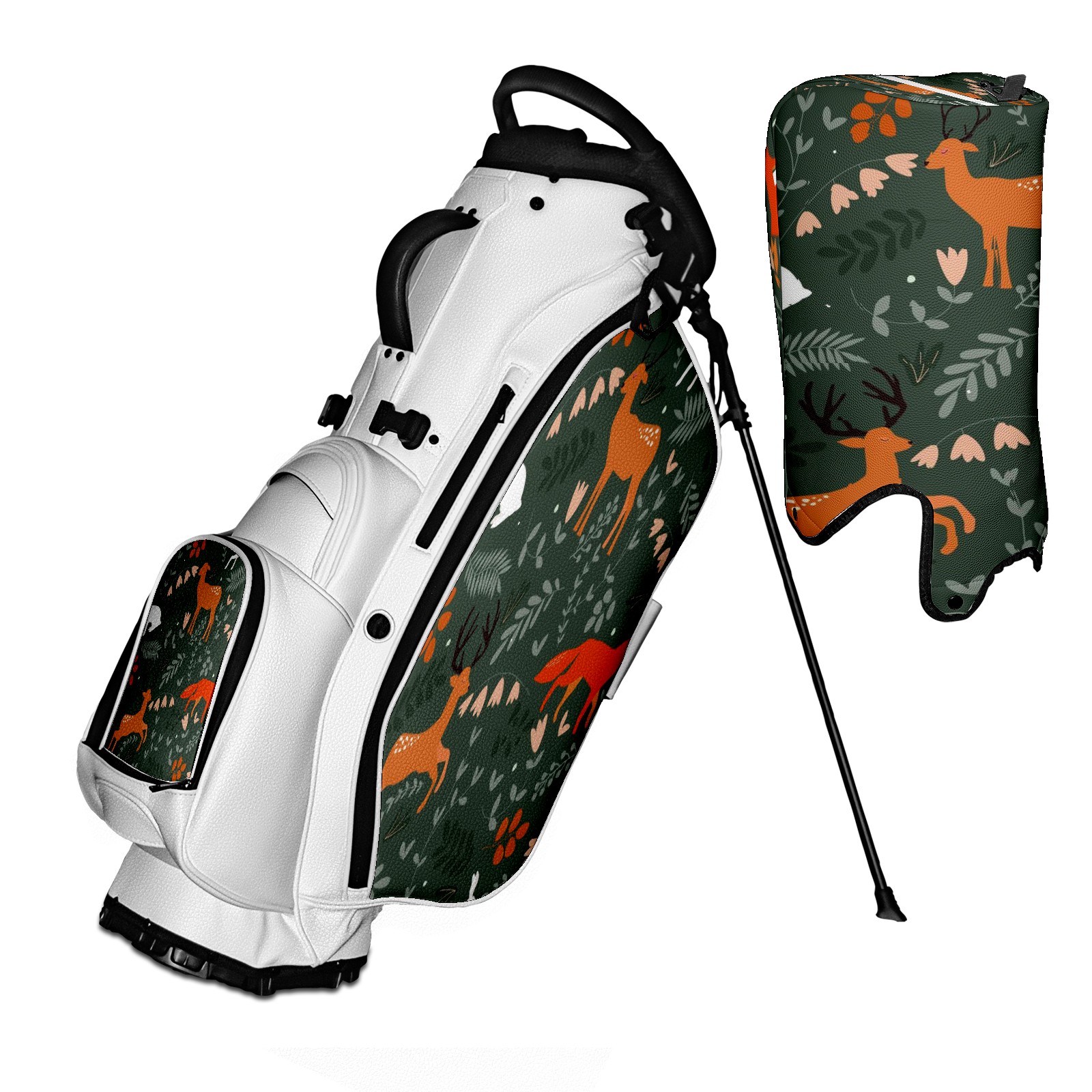 5 - Way Divider Golf Stand Bag, Lightweight Golf Bag with Padded Straps & Rain Cover for Men & Women, Ideal for Golf Courses & Driving Ranges Dark Green Deer Animal