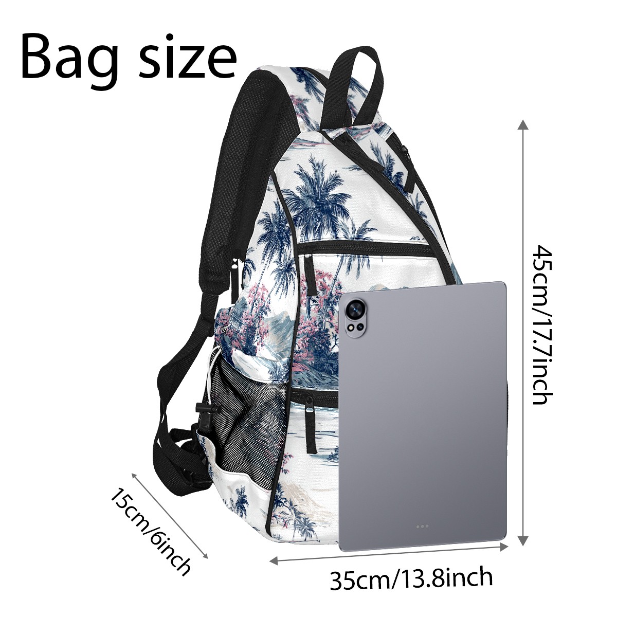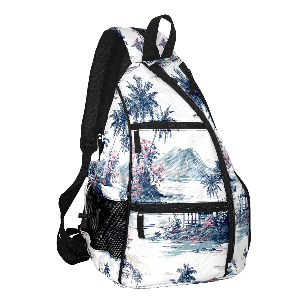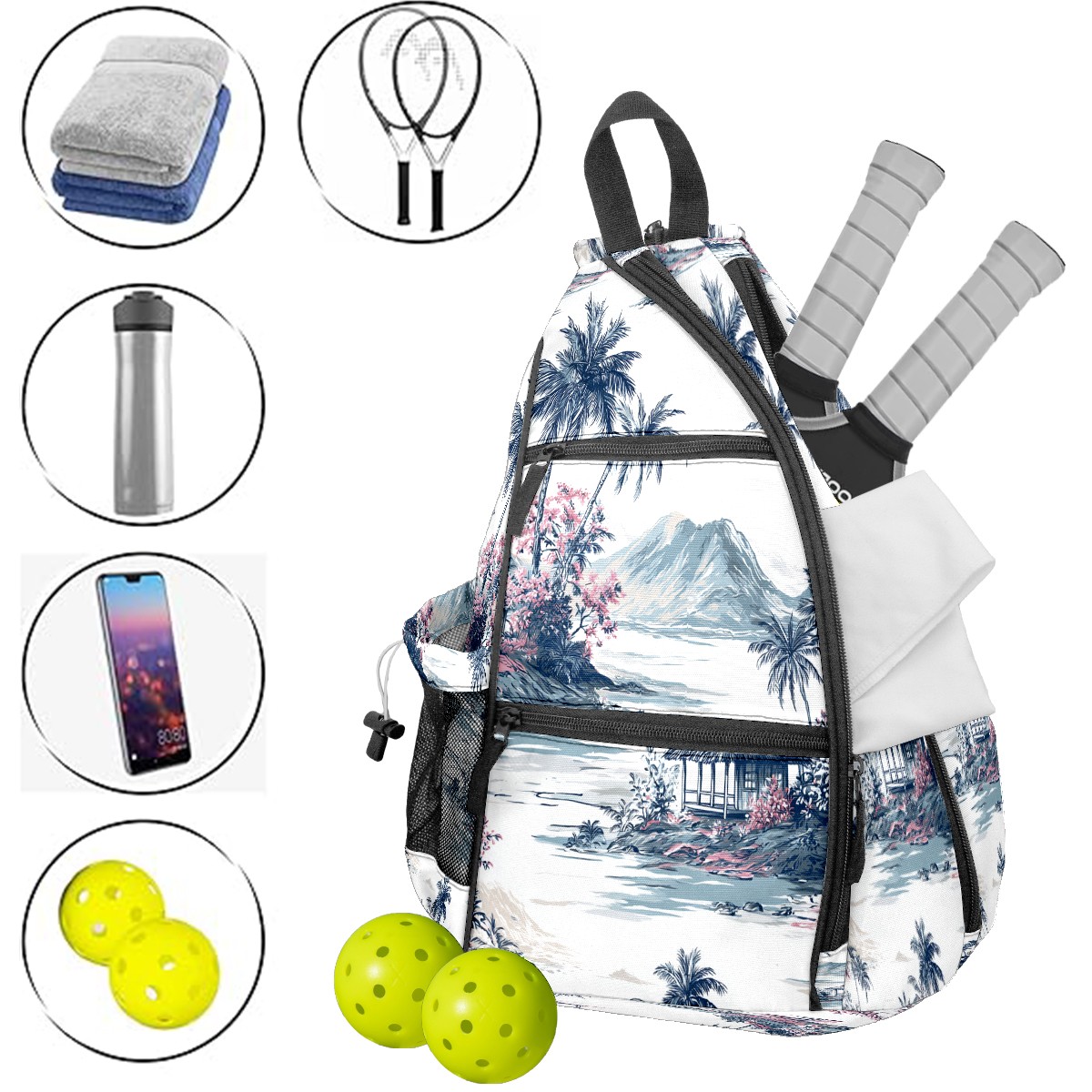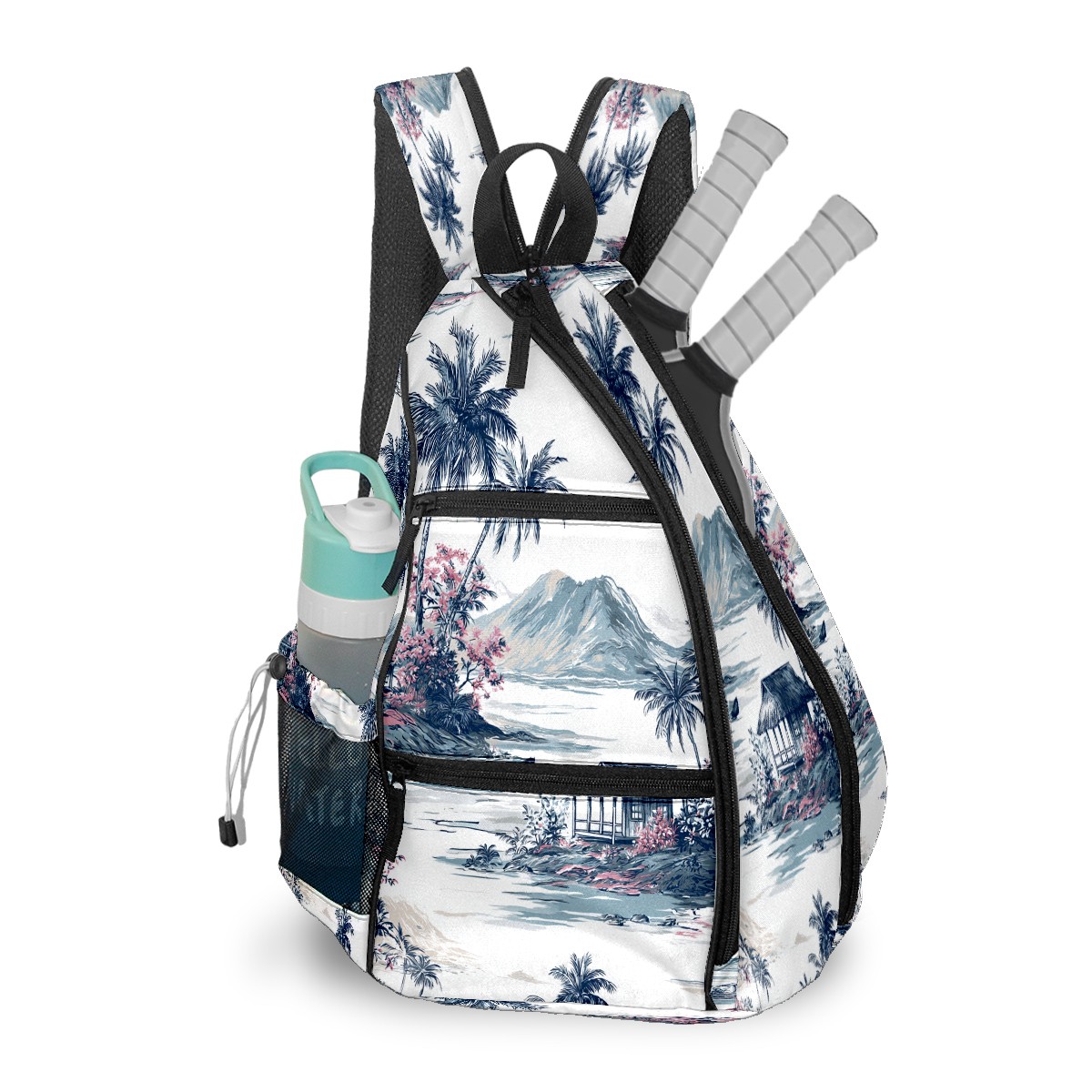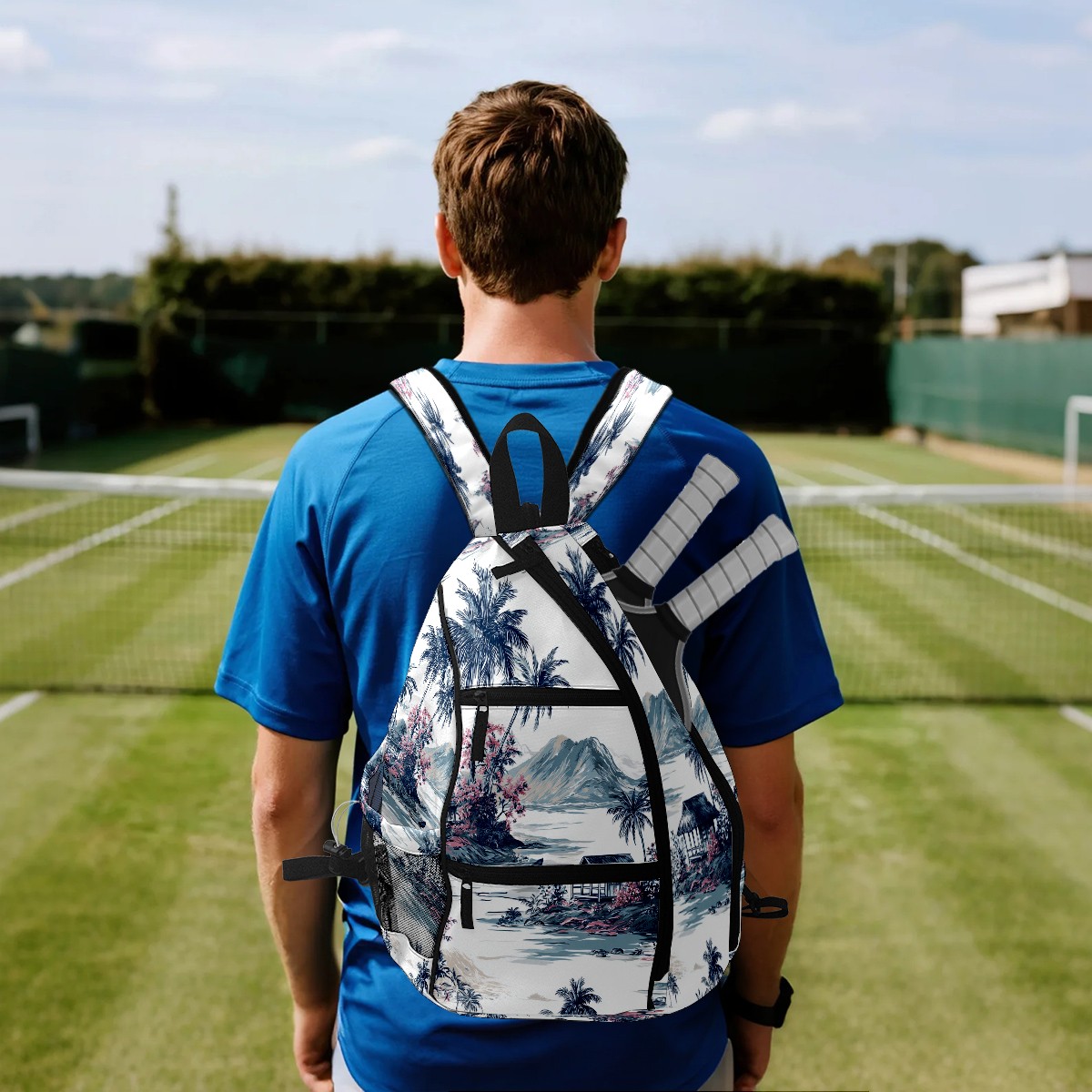 Pickleball Backpack - Convertible Shoulder Straps, Lightweight Breathable Palm Scenery Blue Bag, Fits 2 Paddles, Balls & Gear (45x35x15cm)