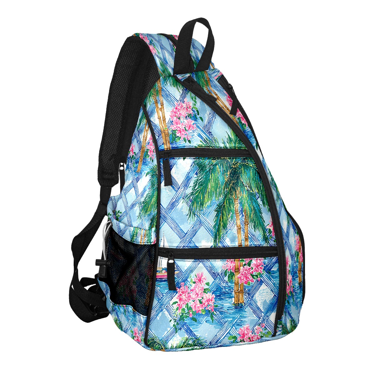 Pickleball Backpack - Convertible Shoulder Straps, Lightweight Breathable Palm Scenery Pink Bag, Fits 2 Paddles, Balls & Gear (45x35x15cm)