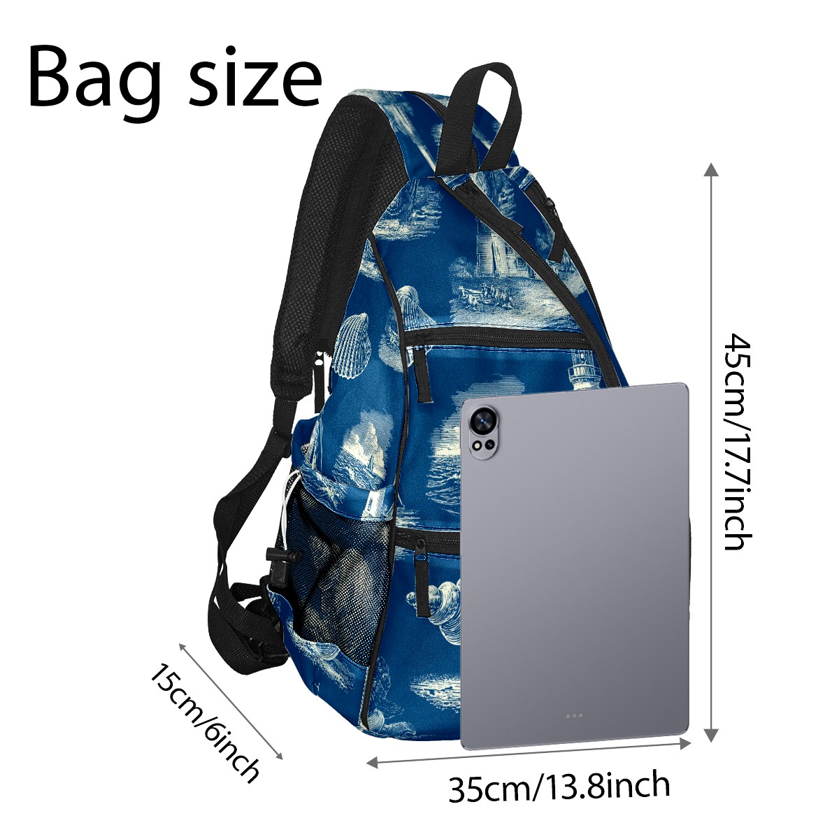 Pickleball Backpack - Convertible Shoulder Straps, Lightweight Breathable Fresh Marine Blue Bag, Fits 2 Paddles, Balls & Gear (45x35x15cm)