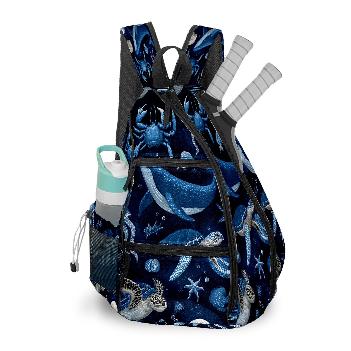 Pickleball Backpack - Convertible Shoulder Straps, Lightweight Breathable Deep Marine Blue Bag, Fits 2 Paddles, Balls & Gear (45x35x15cm)