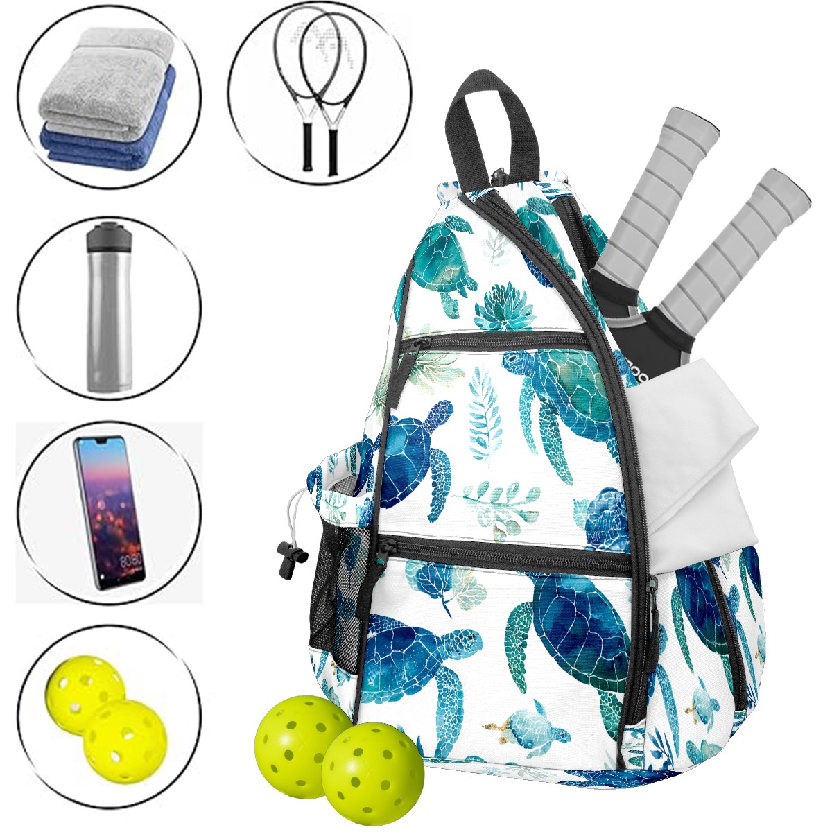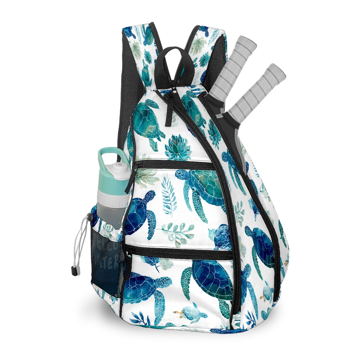 Pickleball Backpack - Convertible Shoulder Straps, Lightweight Breathable Fresh Turtle Blue Bag, Fits 2 Paddles, Balls & Gear (45x35x15cm)