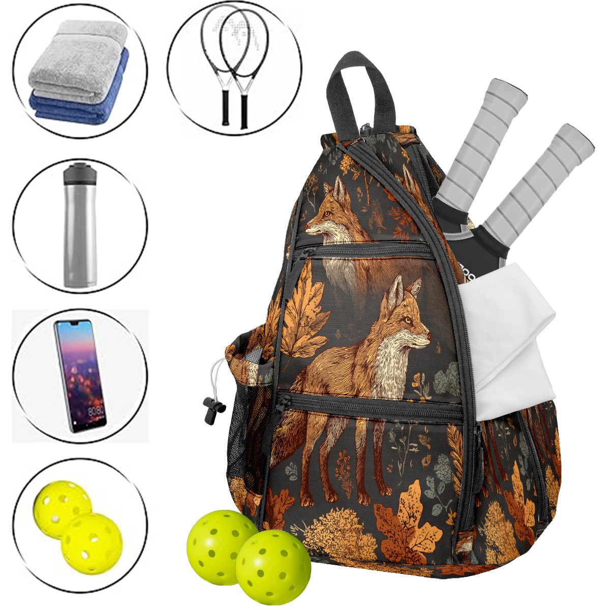 Pickleball Backpack - Convertible Shoulder Straps, Lightweight Breathable Autumnal Fox Brown Bag, Fits 2 Paddles, Balls & Gear (45x35x15cm)