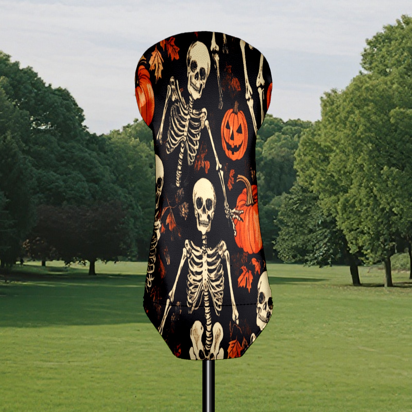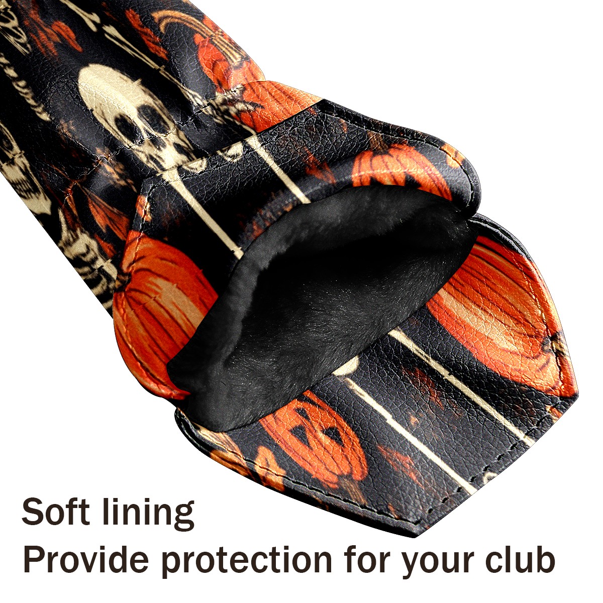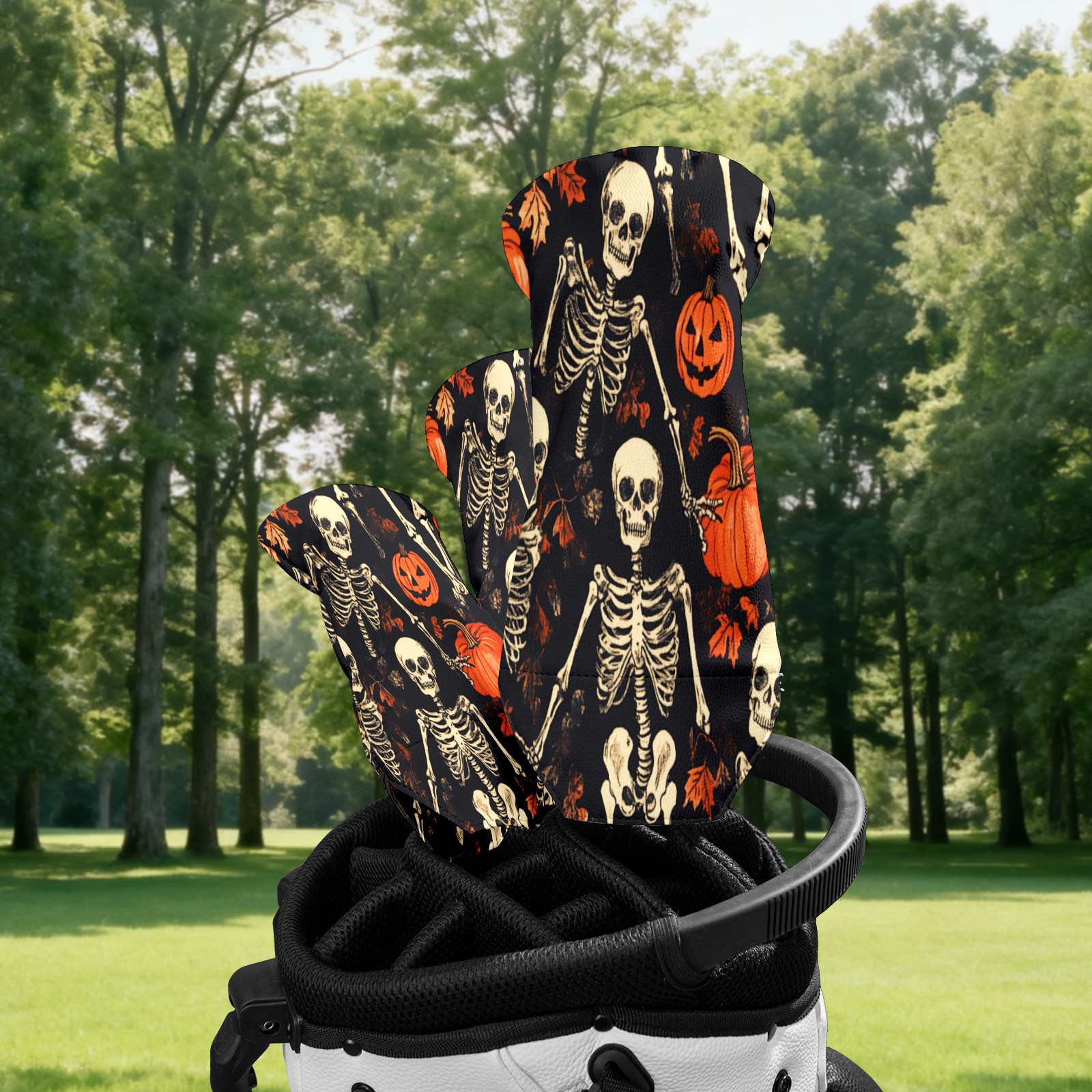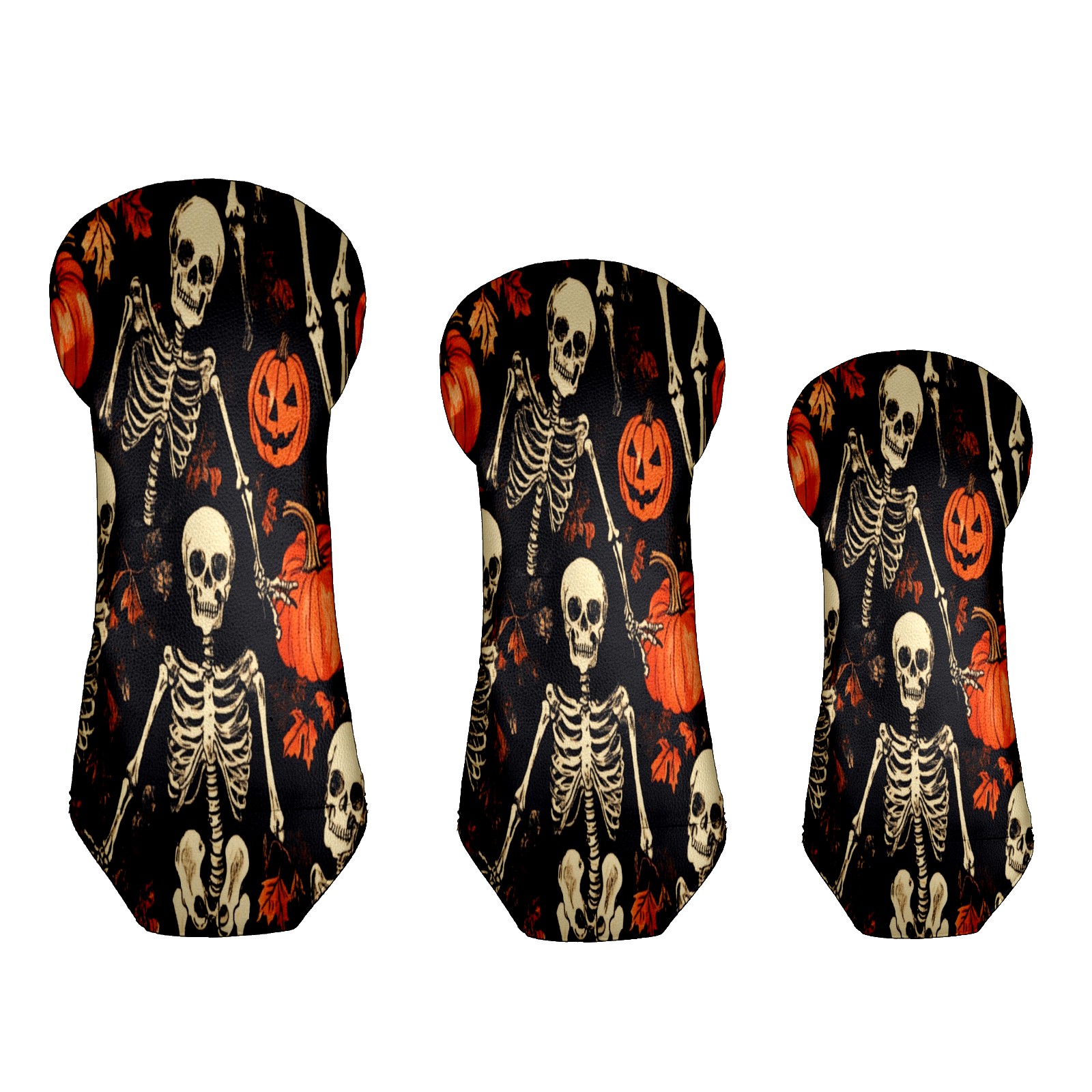 Golf Club Covers for Woods and Driver Hybrid Velvet Cover Leather Golf Headcover for Most Brand Club Men Women Pumpkin Skull