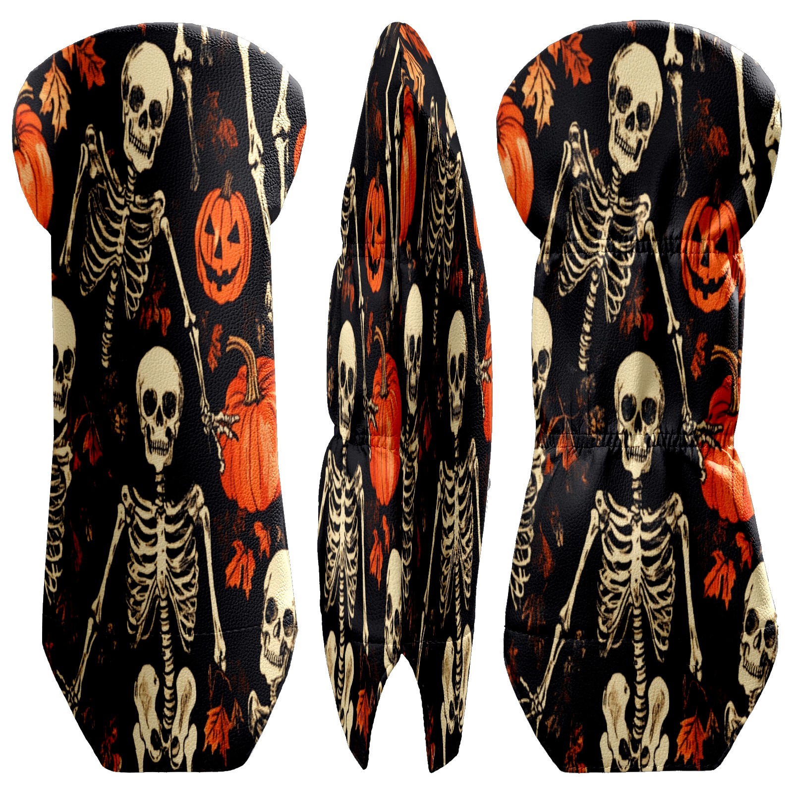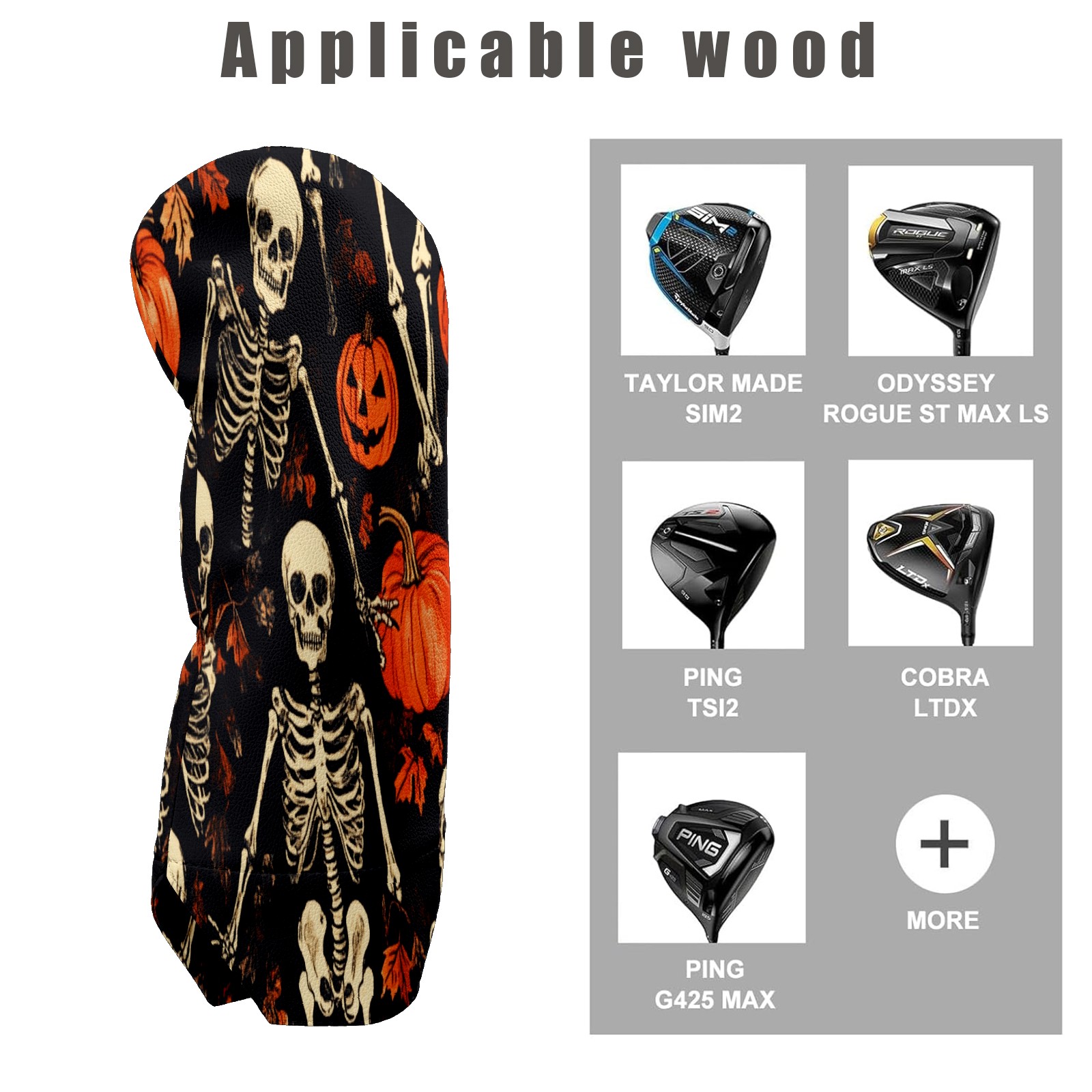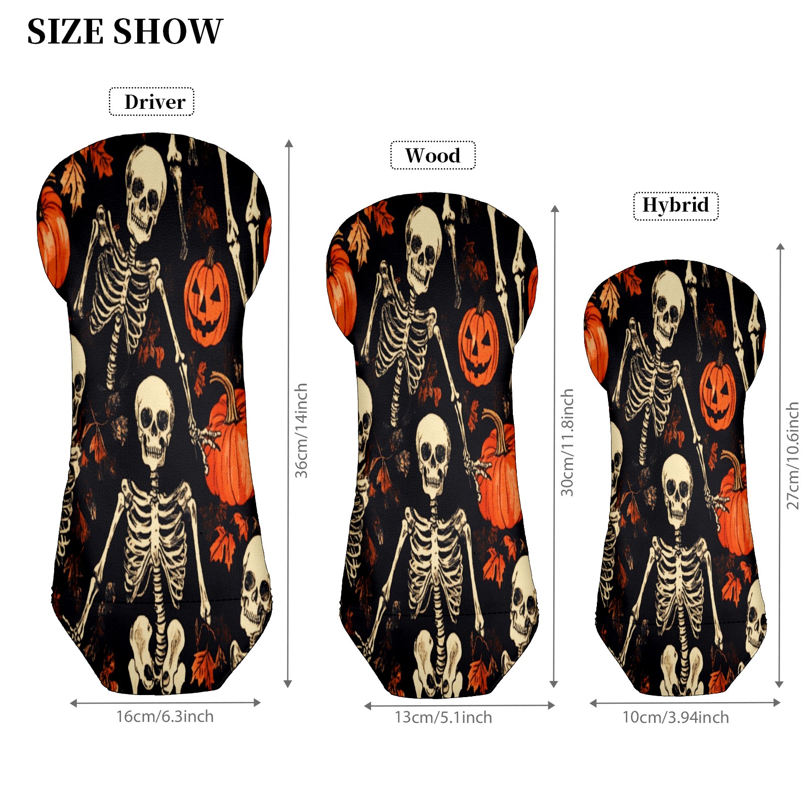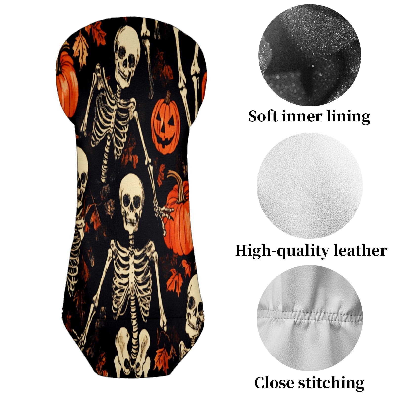 Golf Club Covers for Woods and Driver Hybrid Velvet Cover Leather Golf Headcover for Most Brand Club Men Women Pumpkin Skull