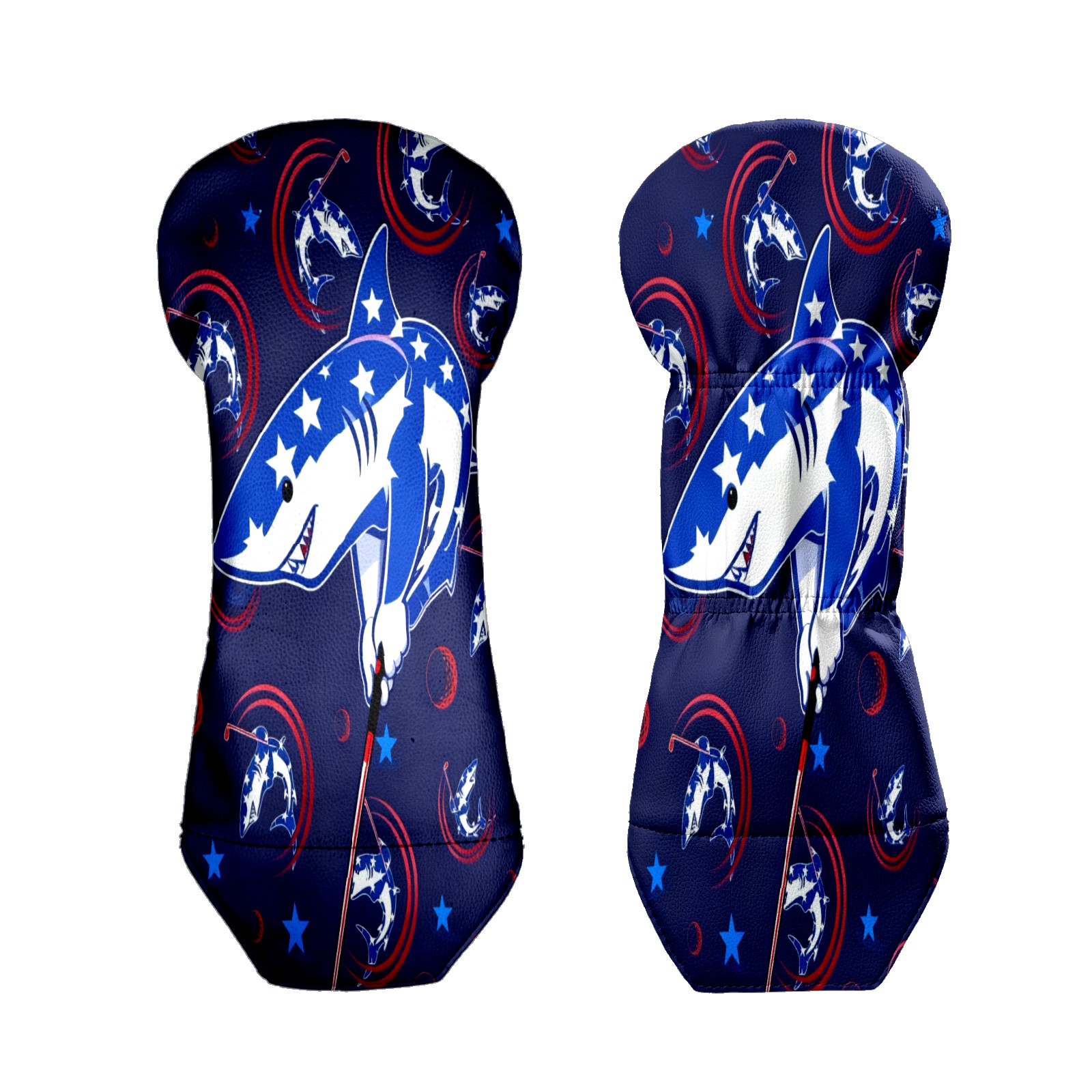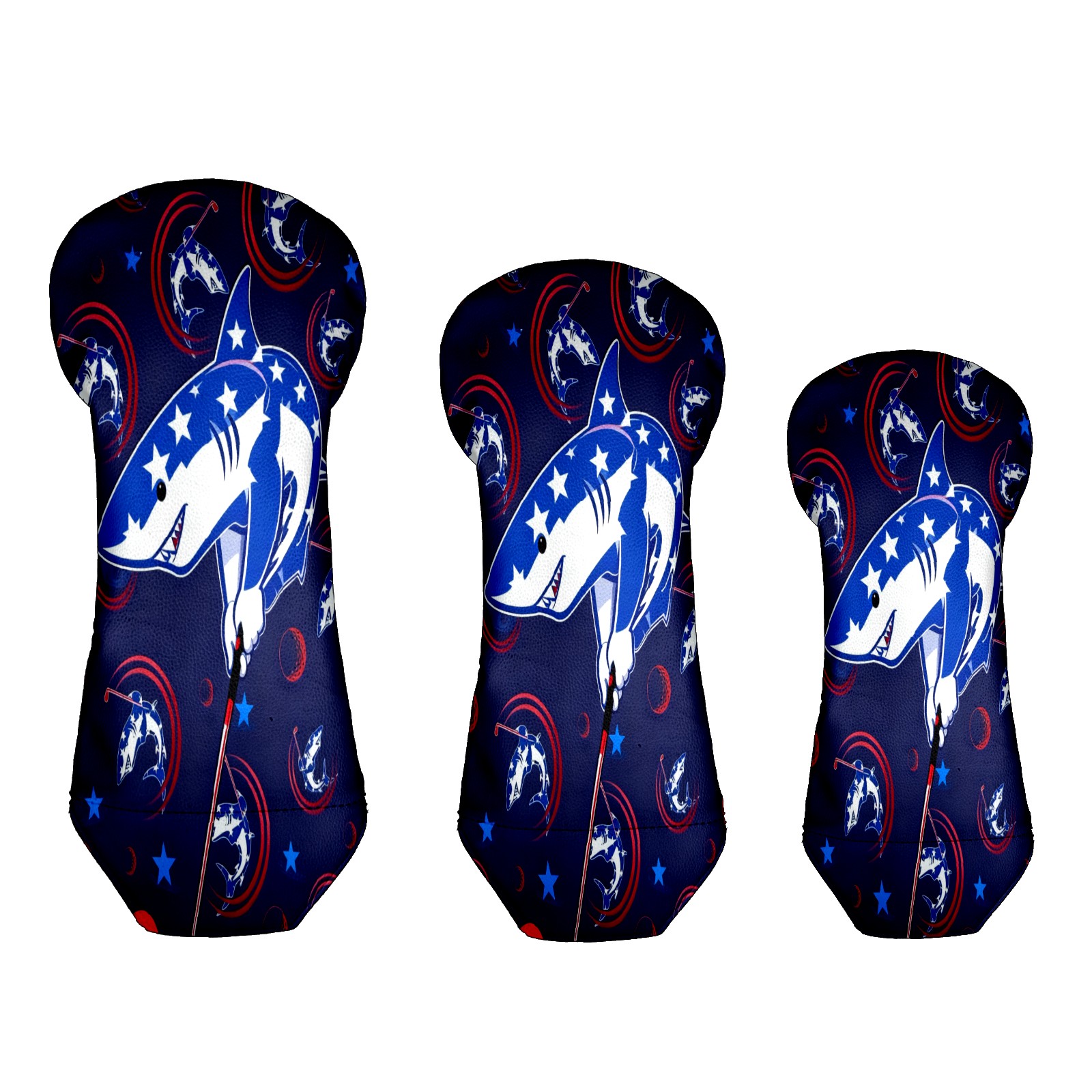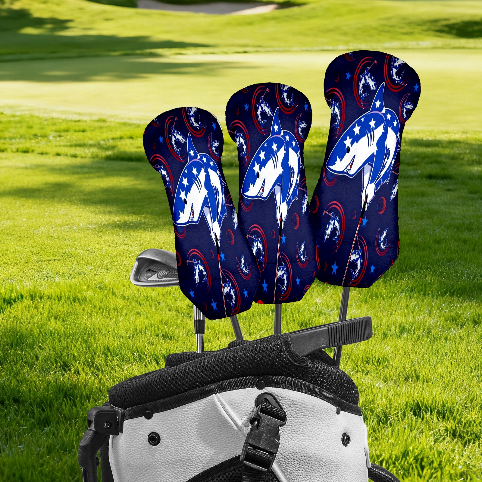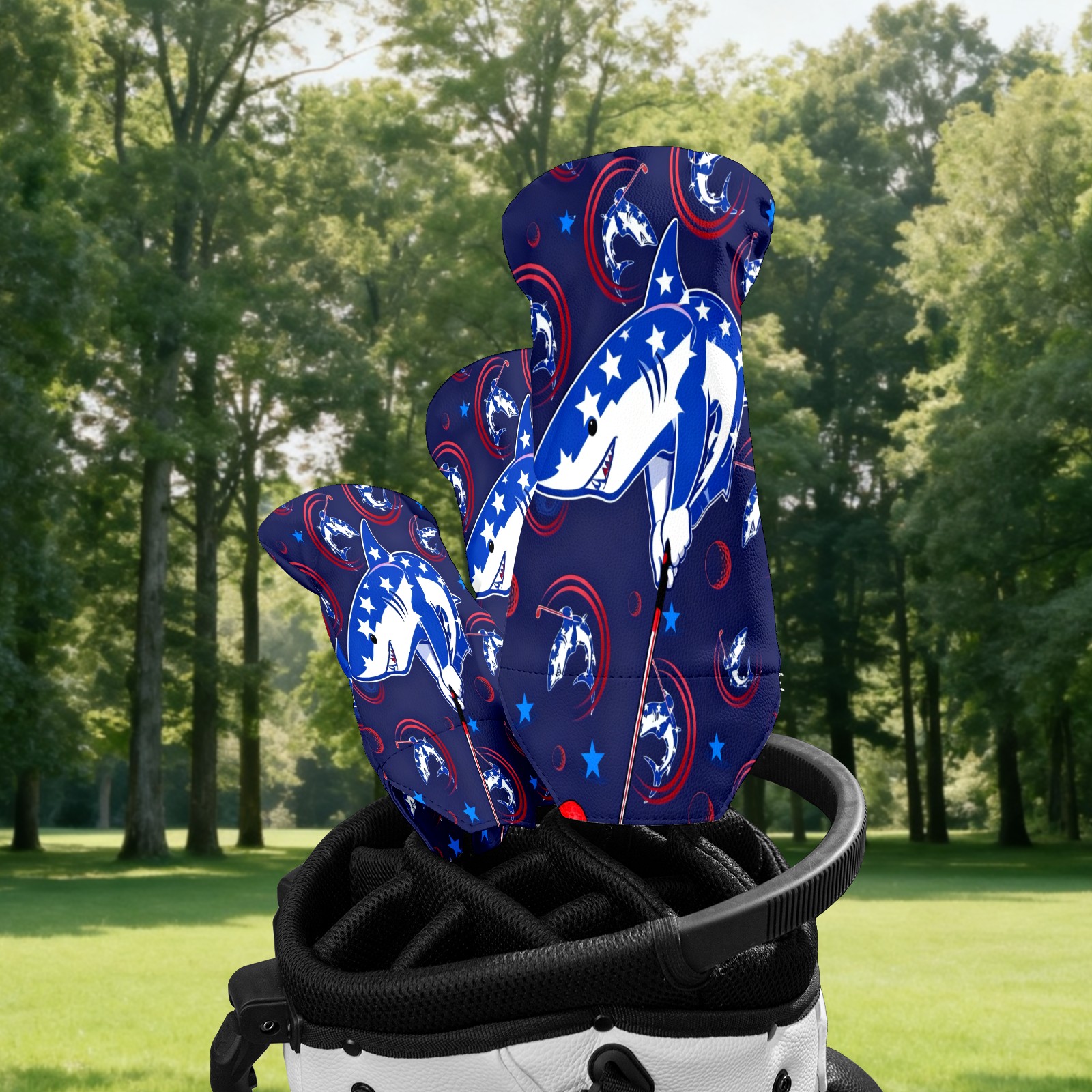 Golf Club Covers for Woods and Driver Hybrid Velvet Cover Leather Golf Headcover for Most Brand Club Men Women Cartoon Shark