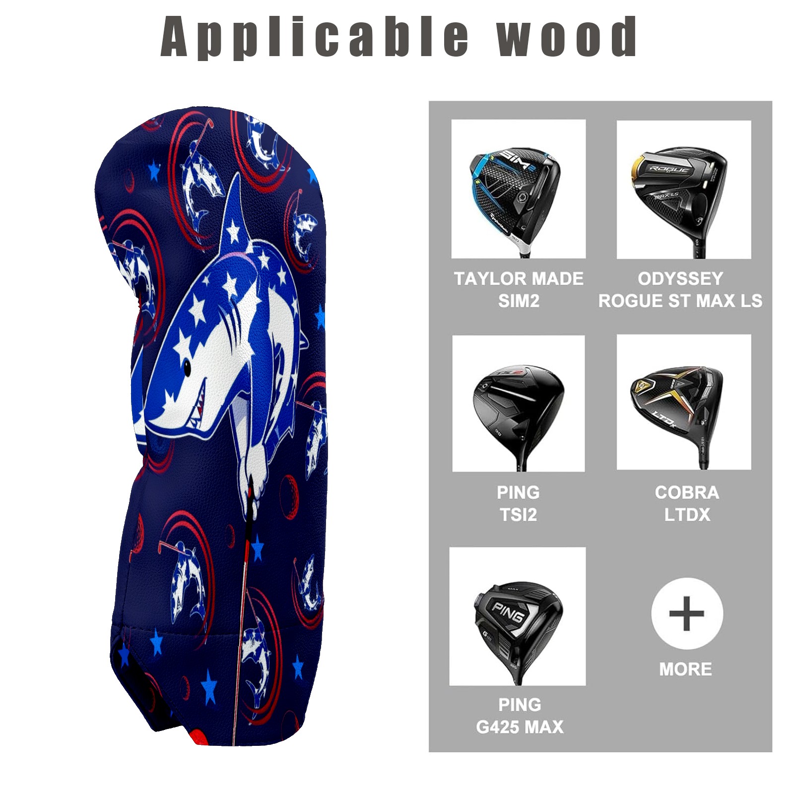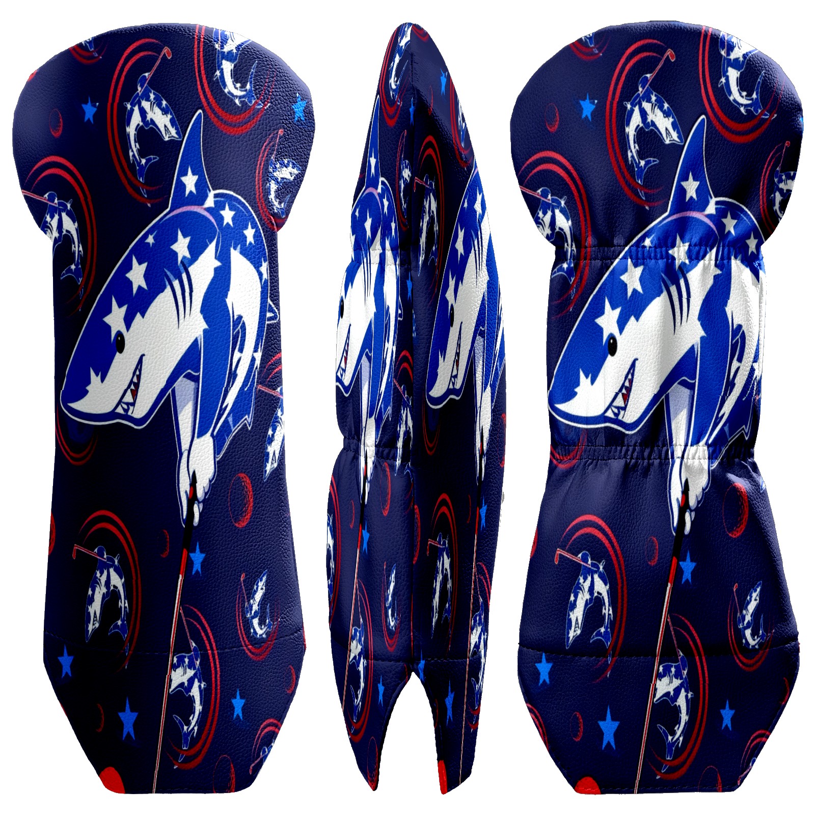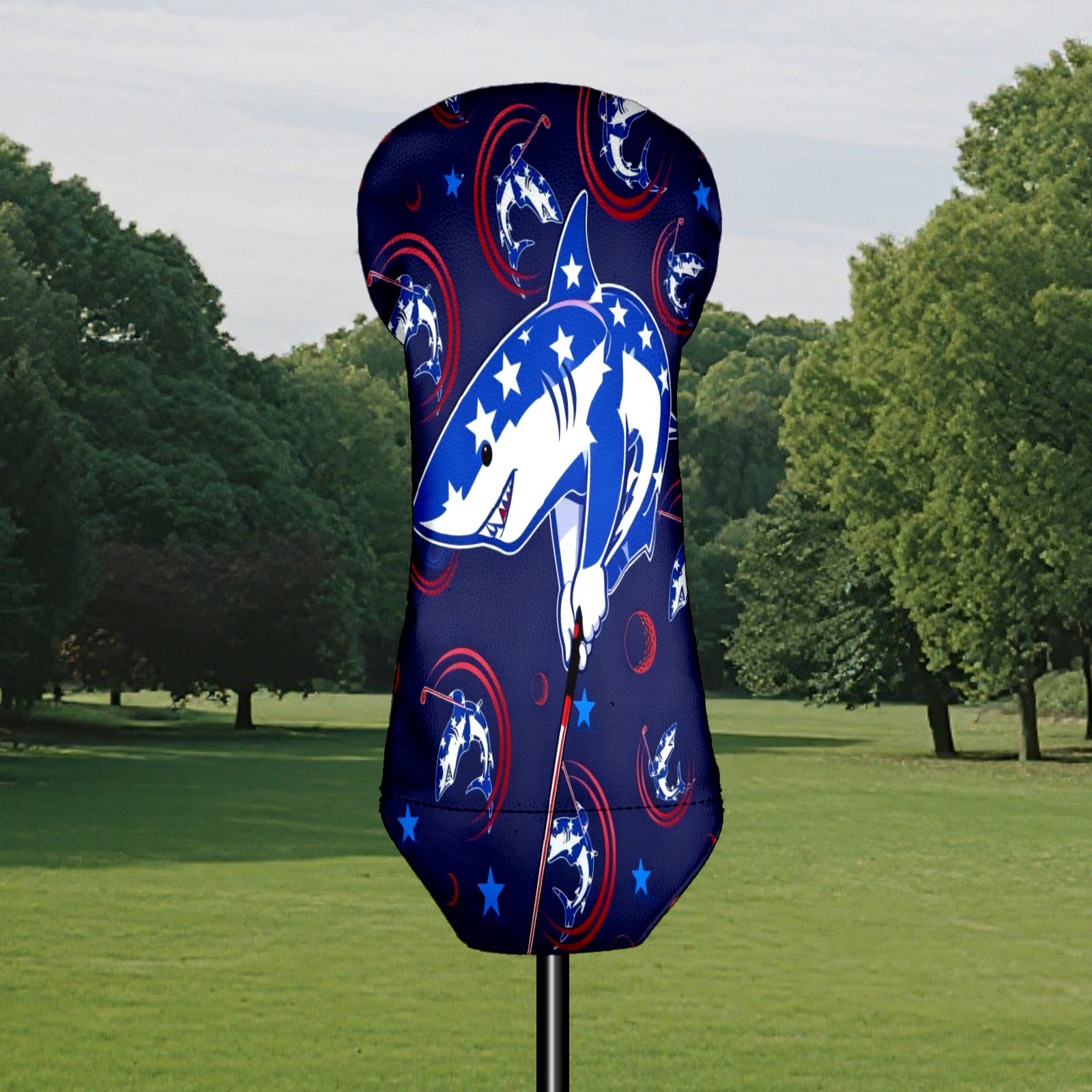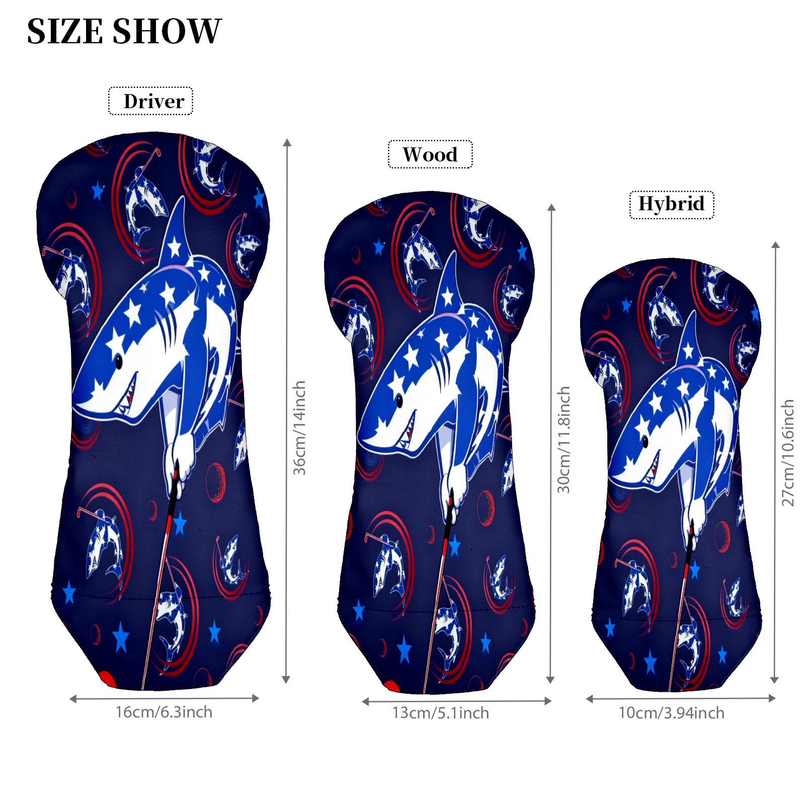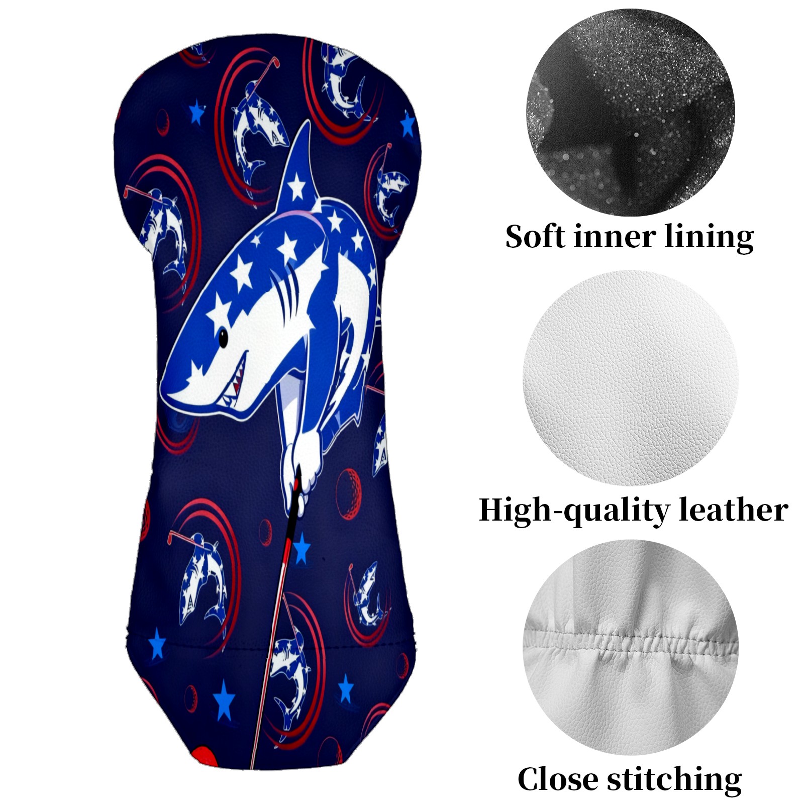 Golf Club Covers for Woods and Driver Hybrid Velvet Cover Leather Golf Headcover for Most Brand Club Men Women Cartoon Shark