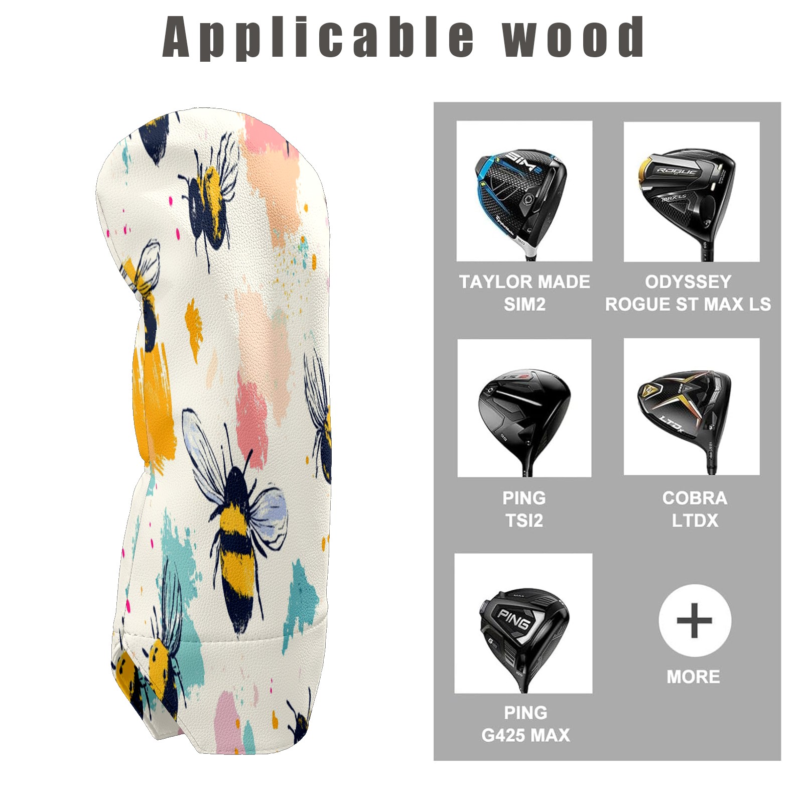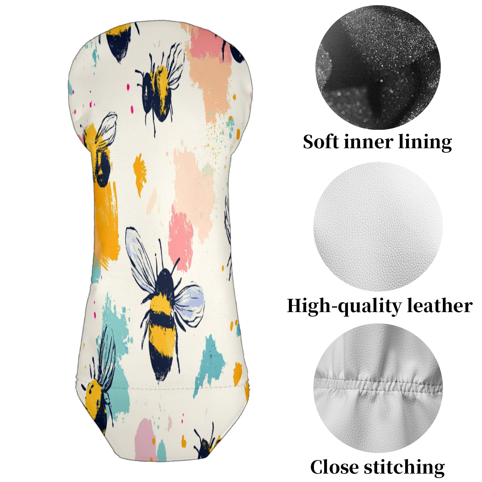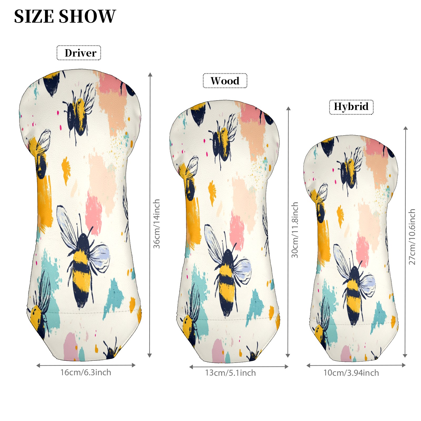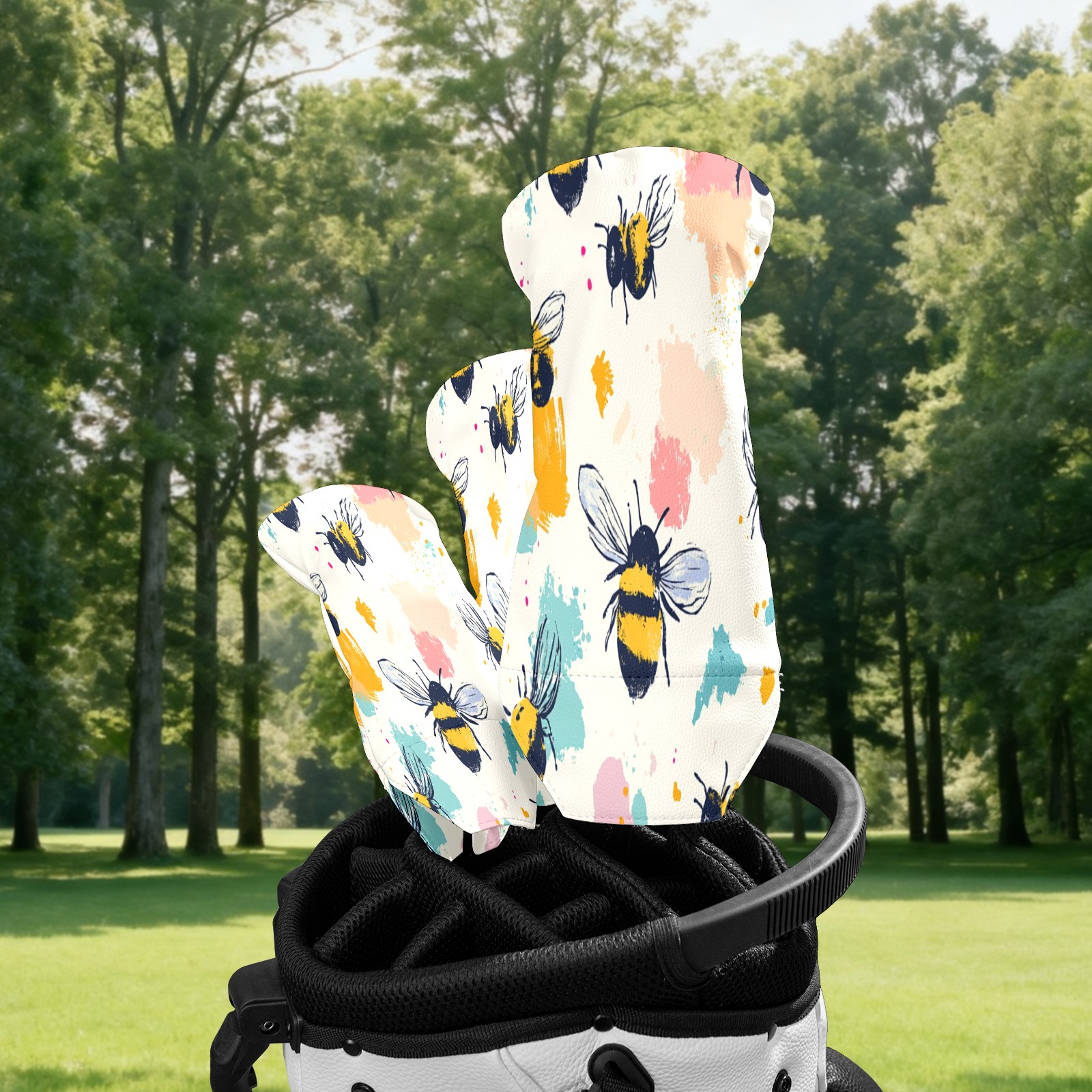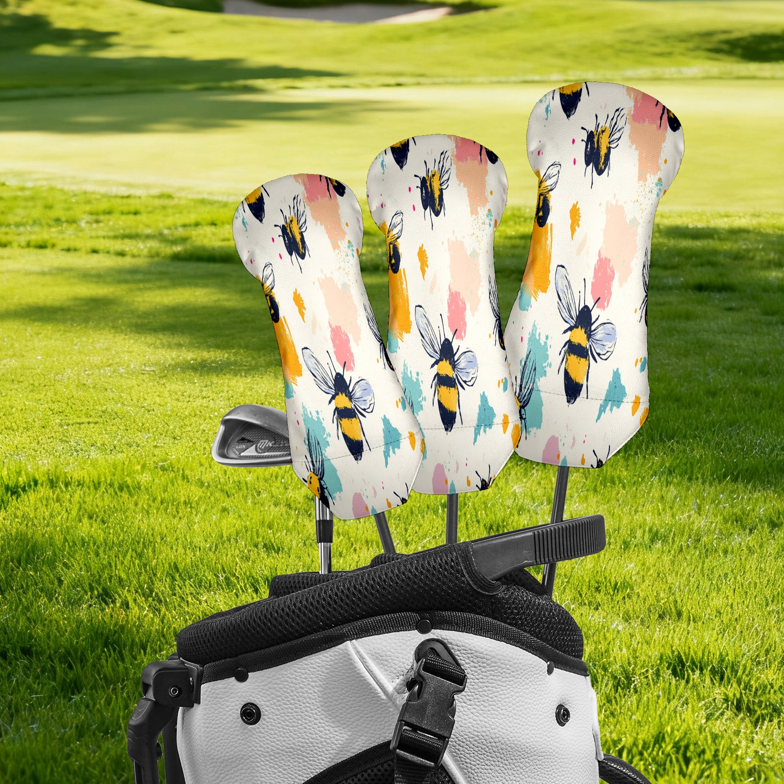 Golf Club Covers for Woods and Driver Hybrid Velvet Cover Leather Golf Headcover for Most Brand Club Men Women Cartoon Bee