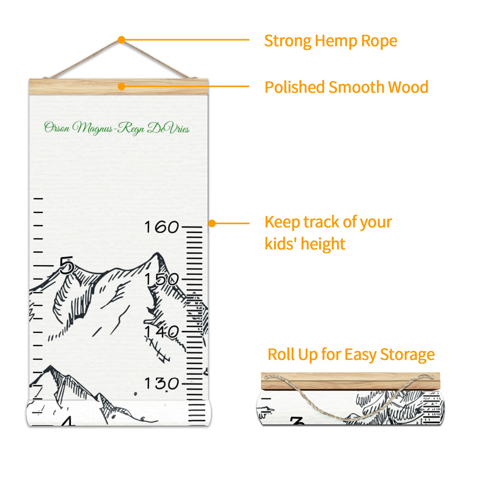 • <p><b>Features:</b></p> <p>Rope for Hanging</p> <p>Material: Linen + Wood</p> <p>Dimensions: 13.4x56 inches</p> <p>Package Included: 1 * Baby Growth Chart</p> <p><b>Baby height growth chart can be used anywhere</b></p> <p>Ideal for kids nursery decoration, kids bedroom, interior walls or windows, playroom, living room, homedecoration.Add name and make the growth chart special!</p> <p><b>Easy to fold and carry</b></p> <p>With rope at the top of the growth chart, it is easy to install and remove.You can fold it and unfold any time any where.</p> <p><b>Perfect Gift Idea for Kids</b></p> <p>Environmental and non-toxic for kids use, it must be a perfect gift for baby, kids, girls, and boys.This is a best choice for your friend who have kids or baby as a popular gift.</p> <p><b>Easy to read</b></p> <p>Measurement accrate with 2 scales, Centimeters and feet. The letters are big enough, very easy to read.</p> <p><b>60cm(23.6inch) Over Ground Design</b></p> <p>Not only can protect from dust and other damage, but also will not interfere in floor cleaning.</p>