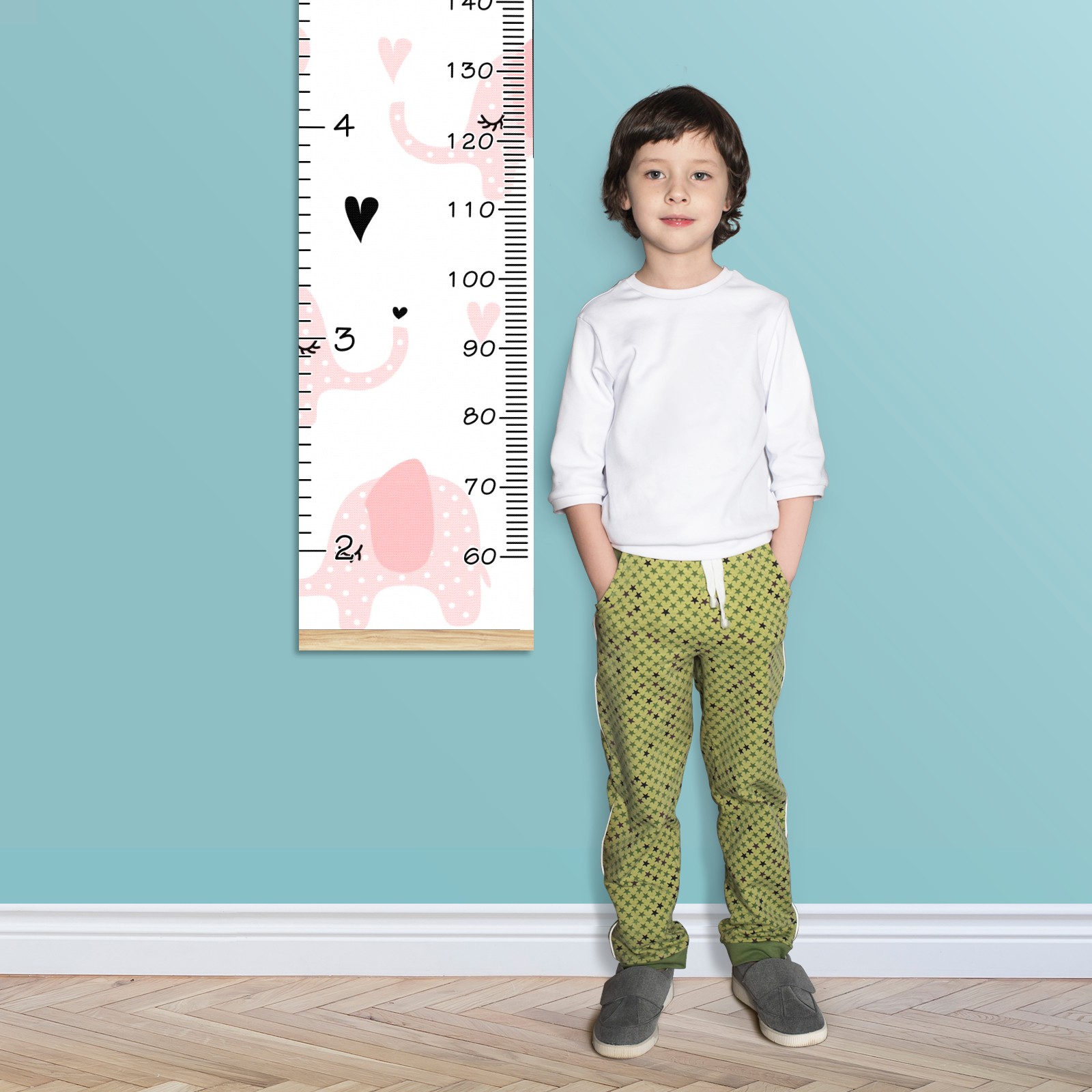 Personalized Kids Name Growth Chart Ruler for Wall Wood Frame Canvas Height Measure Chart 13.4x56 in Hanging Growth Chart Pink Elephant12.25 Boys Girls Room Decor