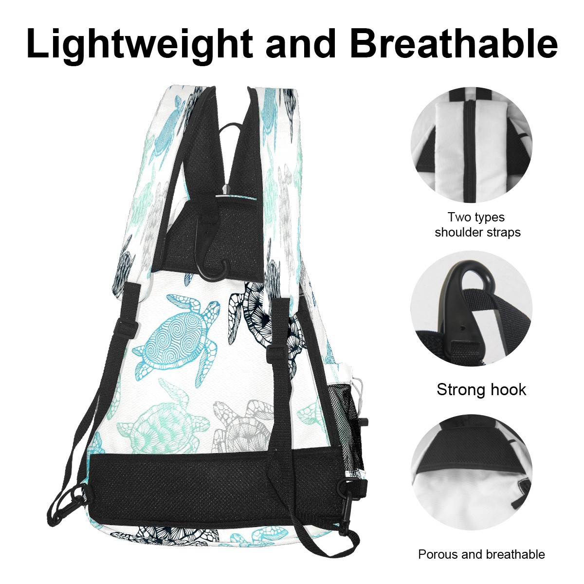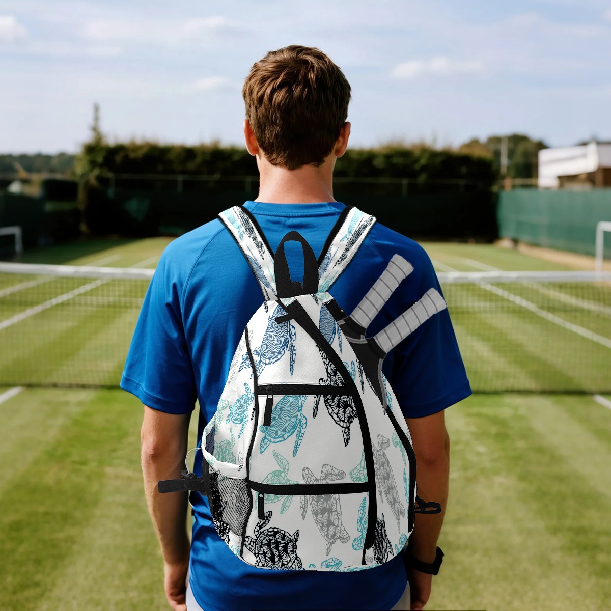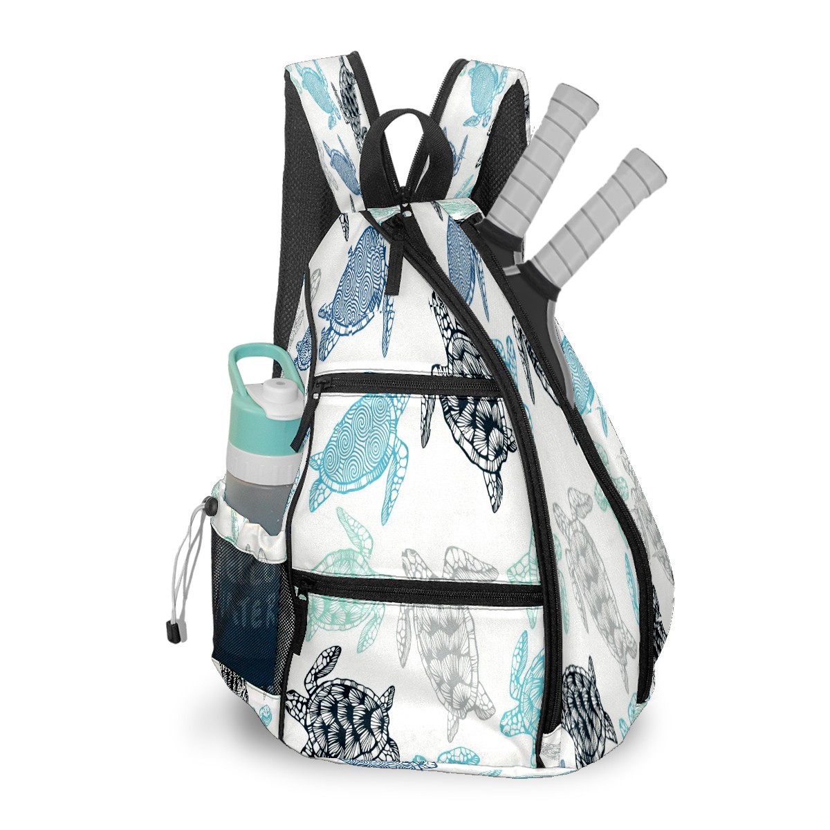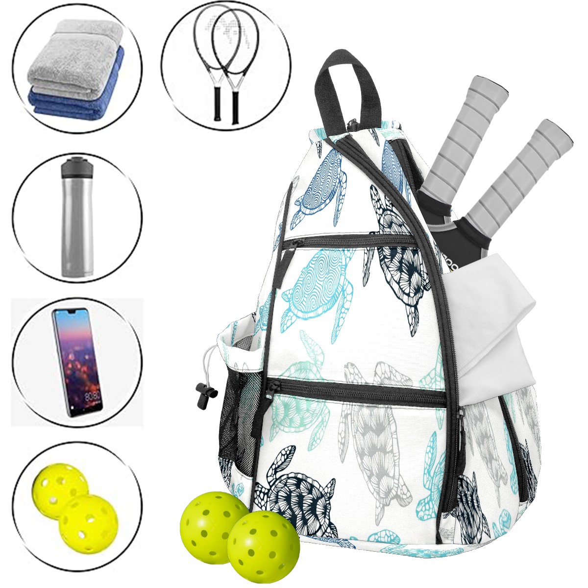 Pickleball Bags for Men Women Backpack with Large Capacity Lightweight Adjustable Pickle ball Sling Bag Hold Paddles, Balls, Accessories Monochrome Turtle