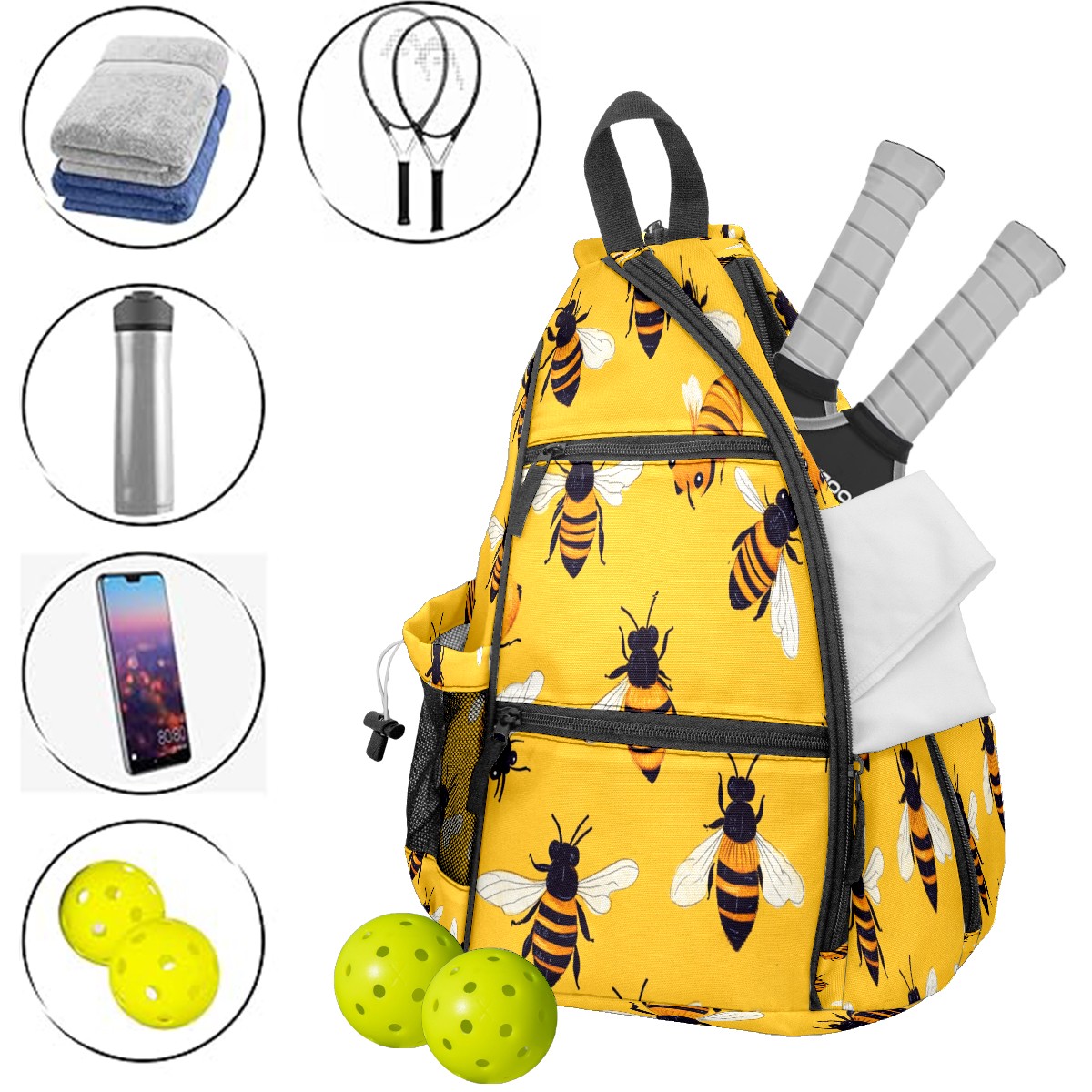 Pickleball Bag - Bee Colony Unisex Pickleball Backpack with Fence Hook, Adjustable Shoulder Straps, Security Pocket, Gift for Pickle Ball Enthusiasts