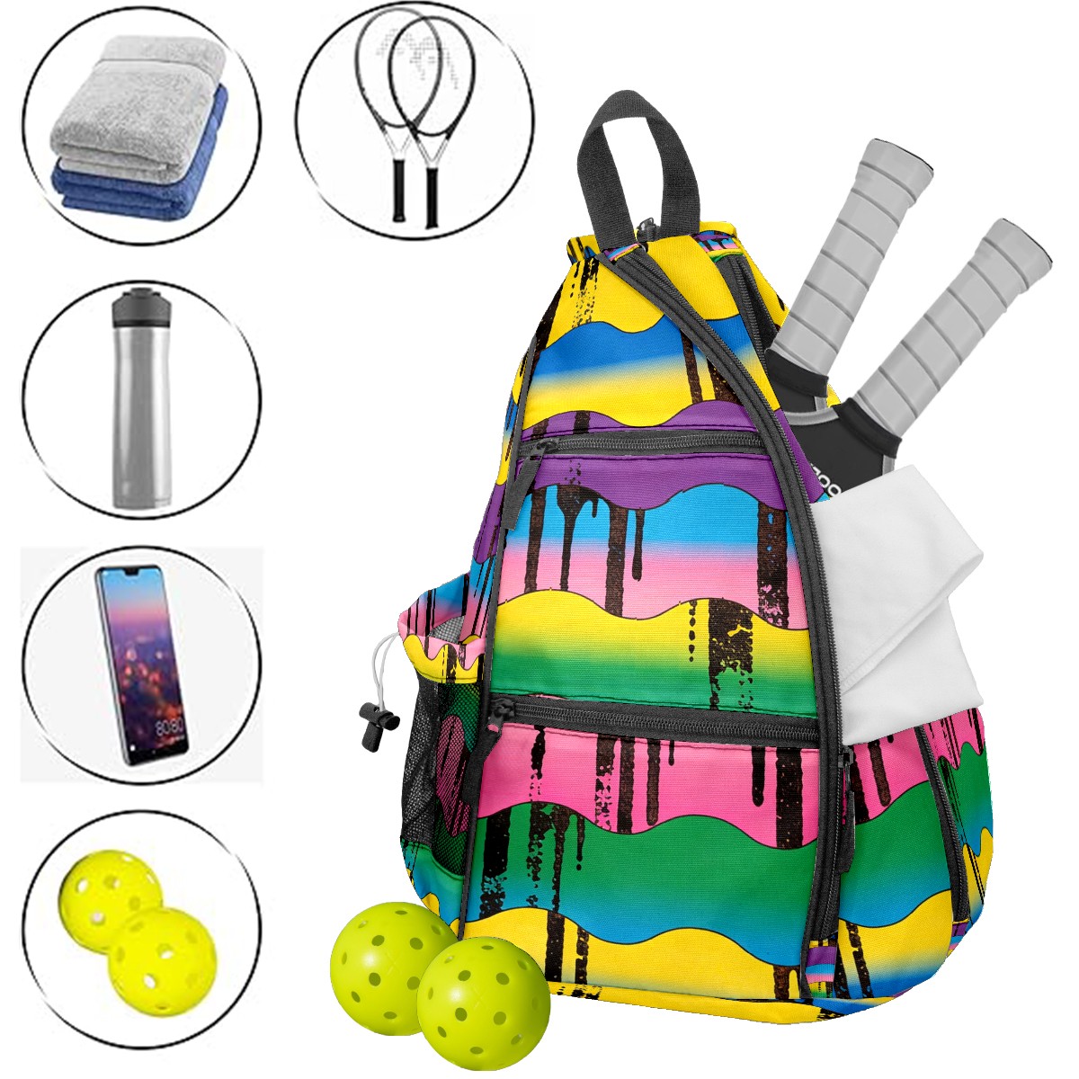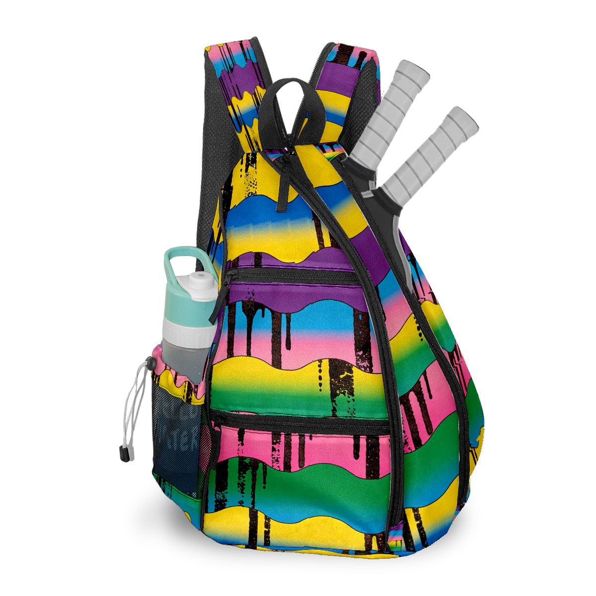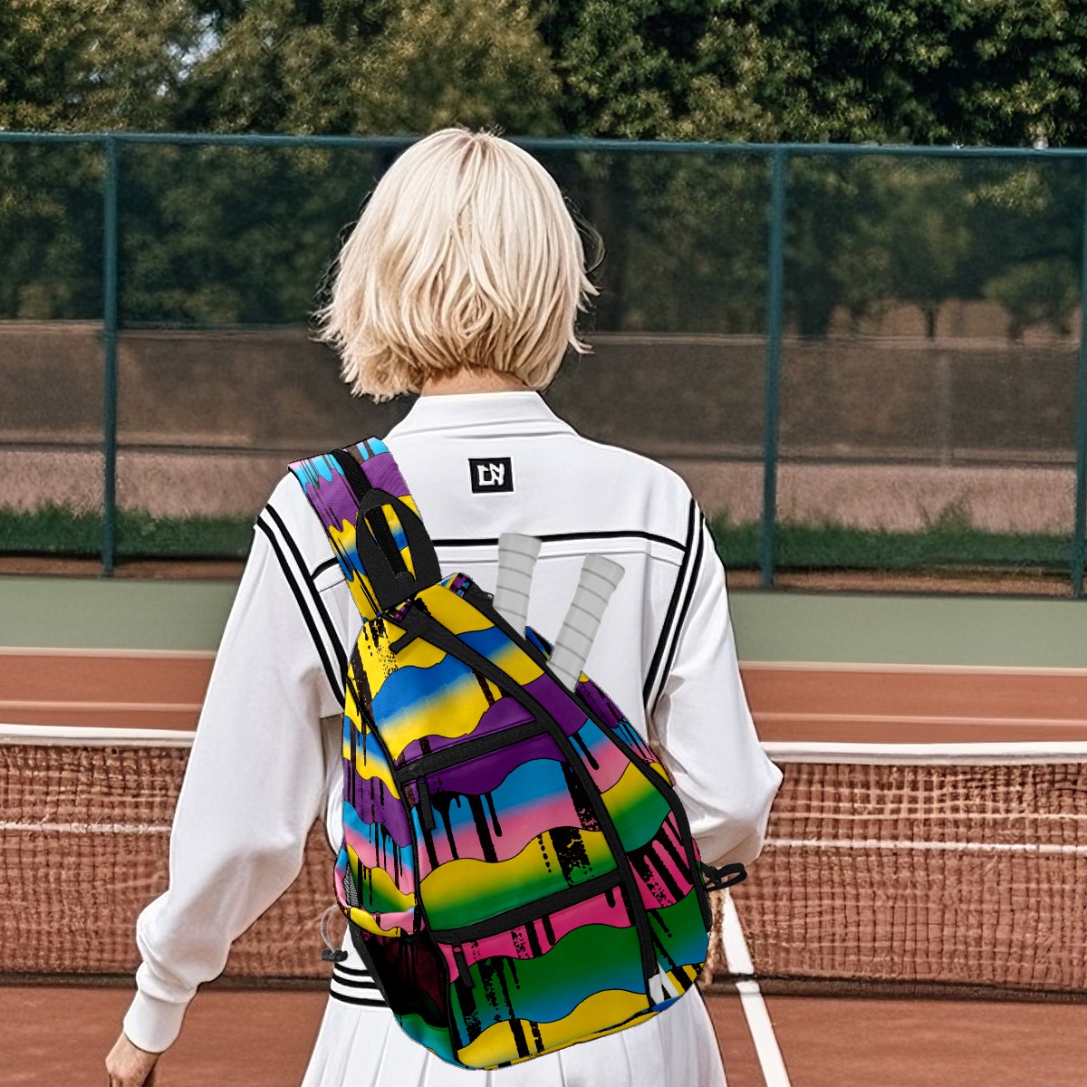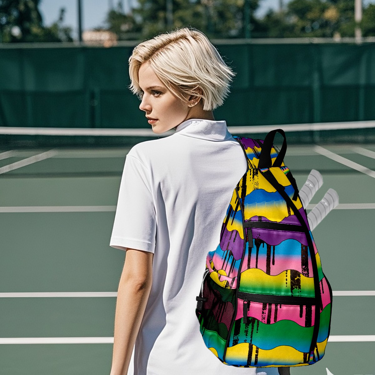 Pickleball Bag - Wave Graffiti Pattern Unisex Pickleball Backpack with Fence Hook, Adjustable Shoulder Straps, Security Pocket, Gift for Pickle Ball Enthusiasts