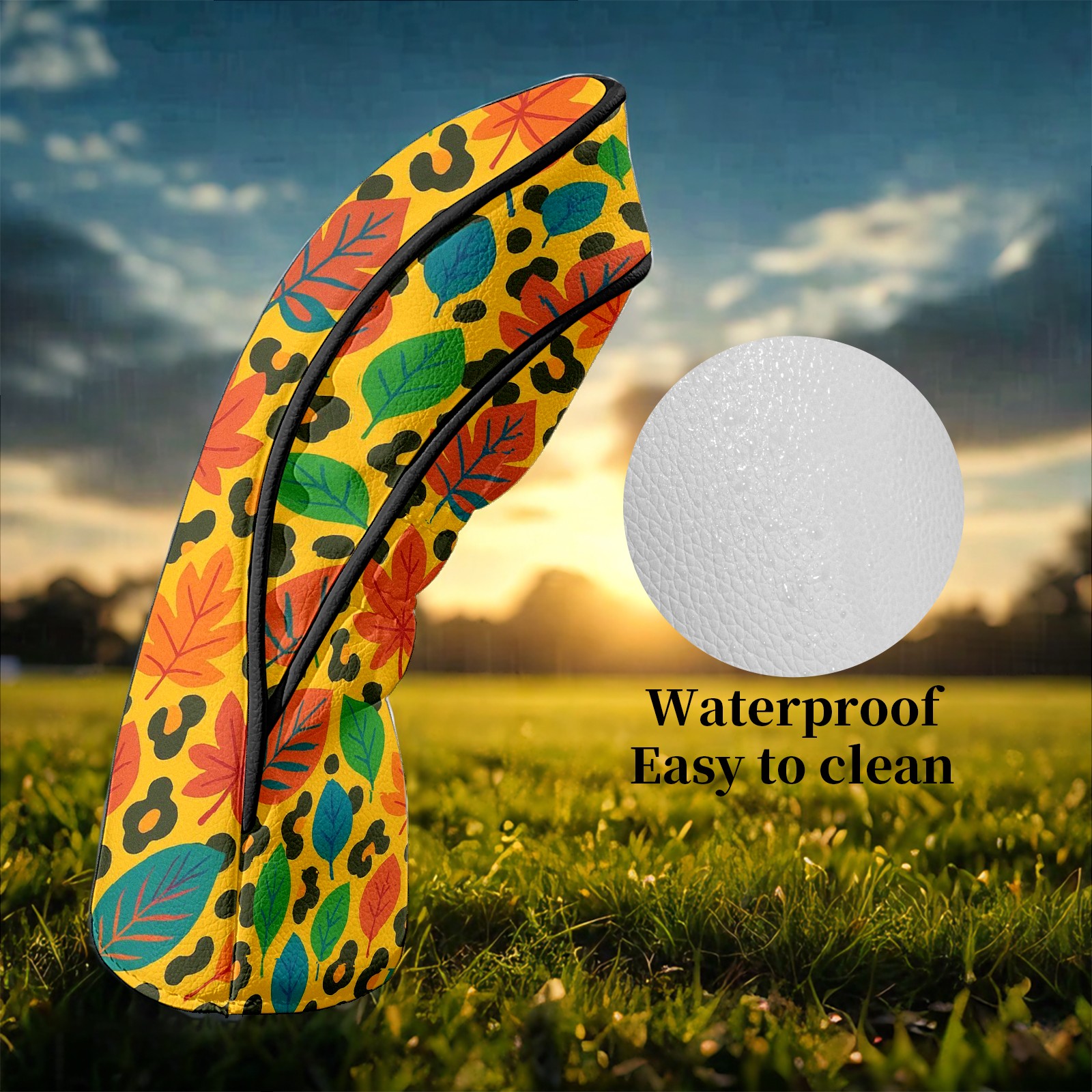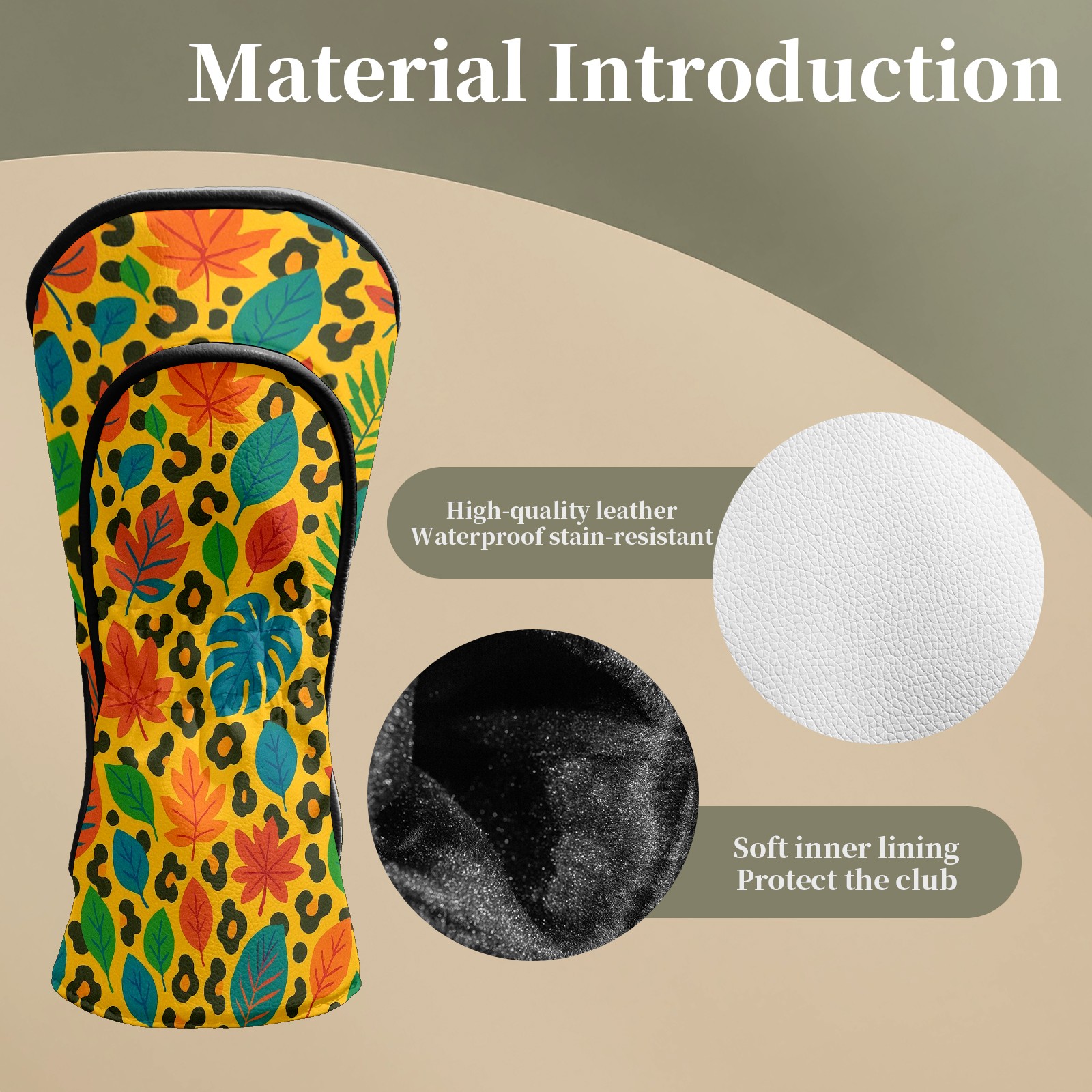 Golf Club Head Covers Vintage Leaf Green Premium Plush Velvet Lining, Waterproof Golf Headcovers Driver & Fairway Woods for Scratch Protection Novelty Gift for Men & Women