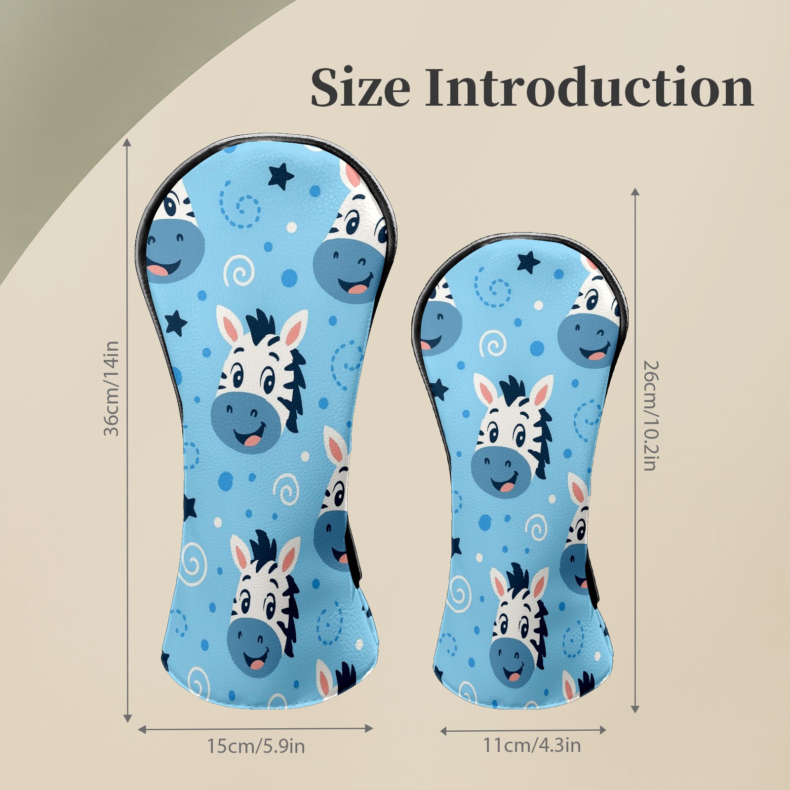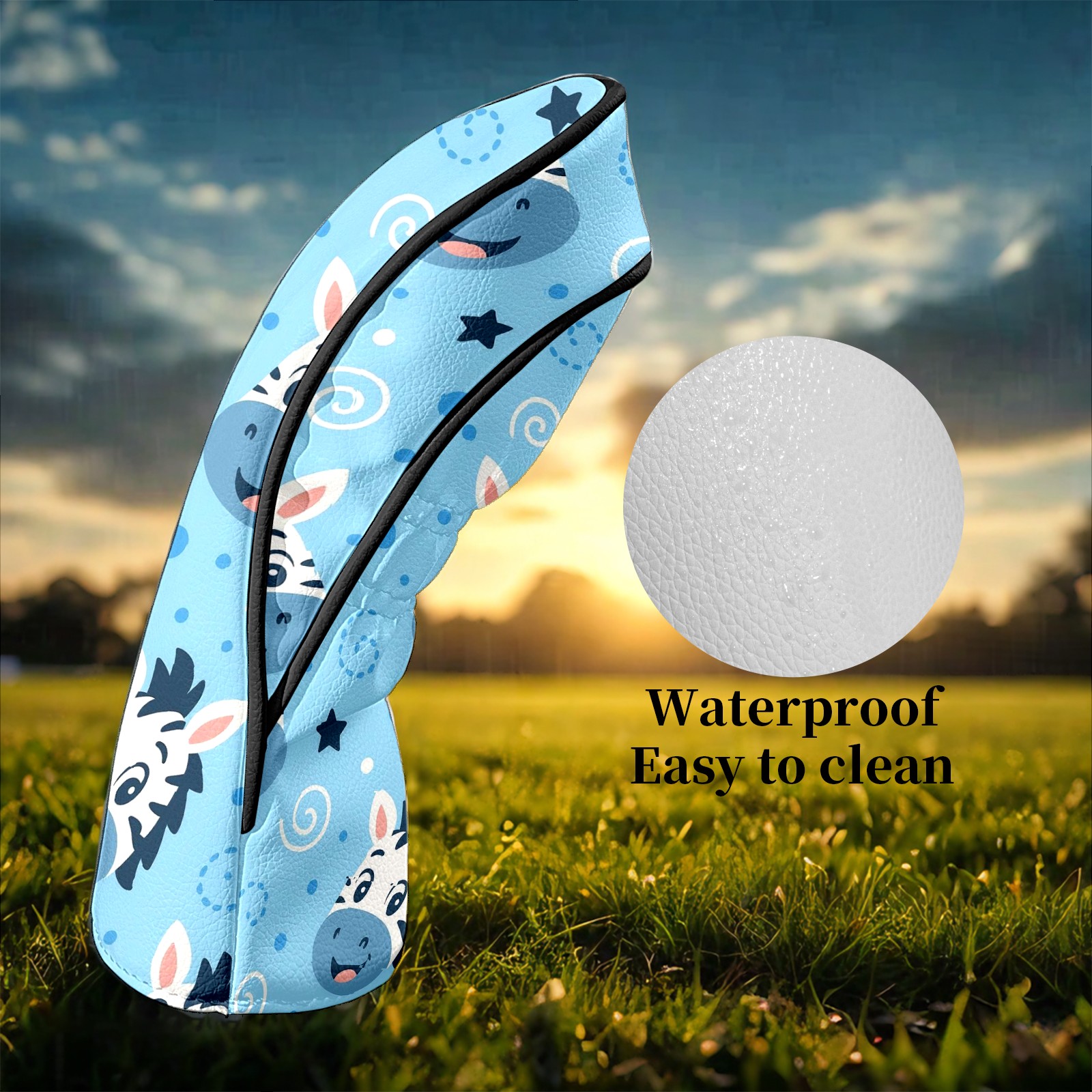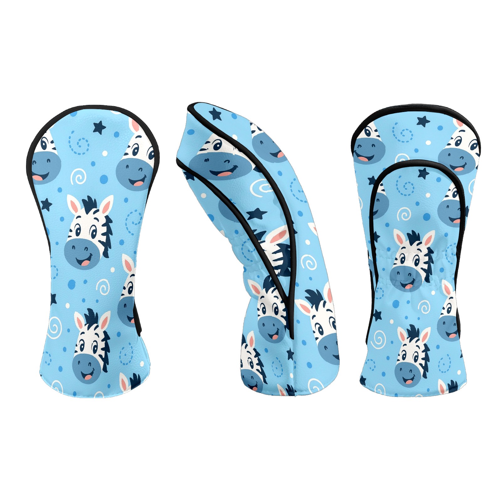 Golf Club Head Covers Cute Zebra Blue Premium Plush Velvet Lining, Waterproof Golf Headcovers Driver & Fairway Woods for Scratch Protection Novelty Gift for Men & Women