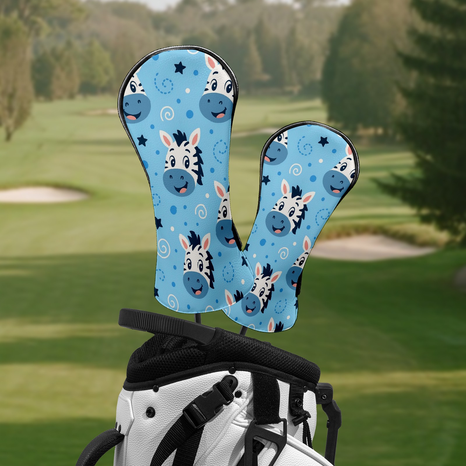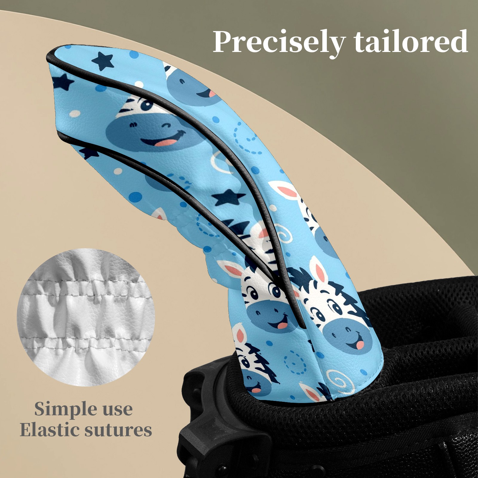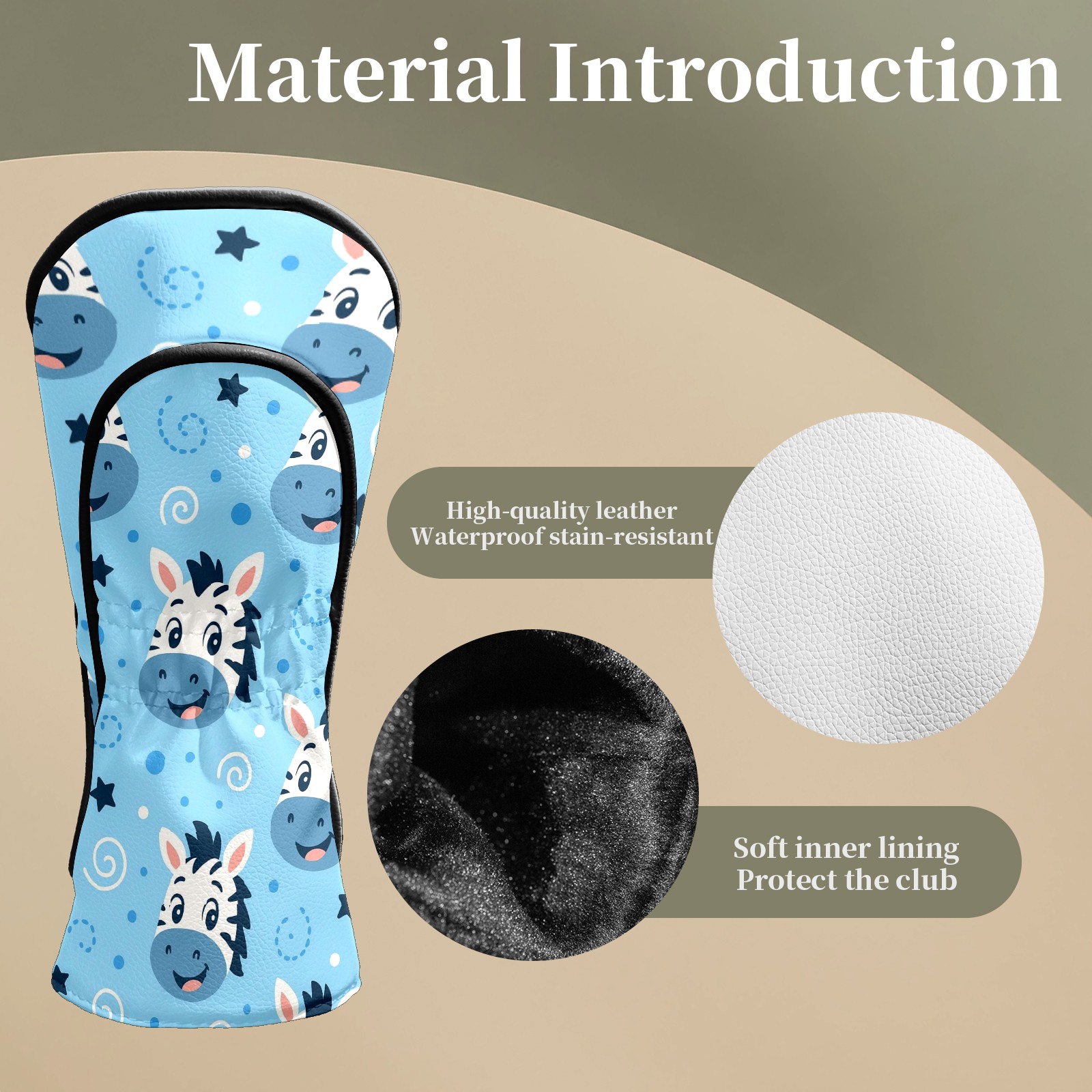 Golf Club Head Covers Cute Zebra Blue Premium Plush Velvet Lining, Waterproof Golf Headcovers Driver & Fairway Woods for Scratch Protection Novelty Gift for Men & Women