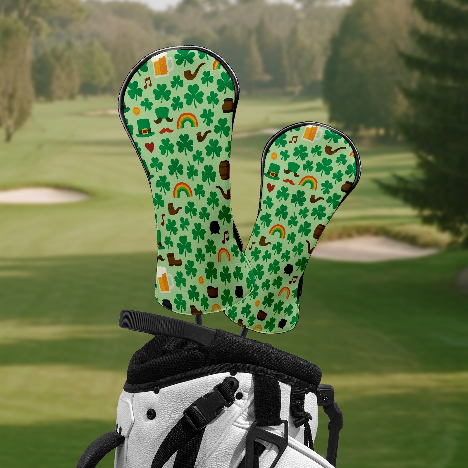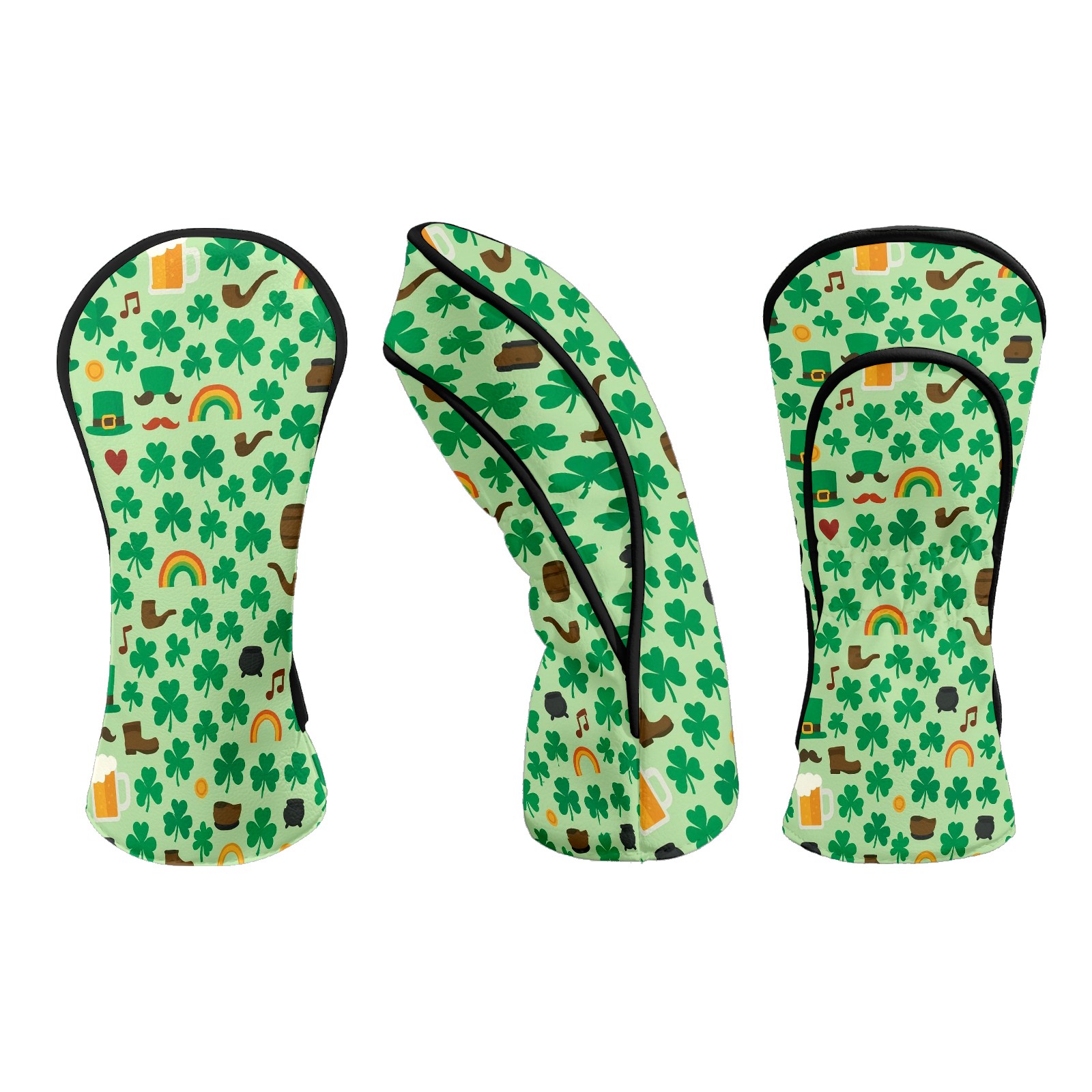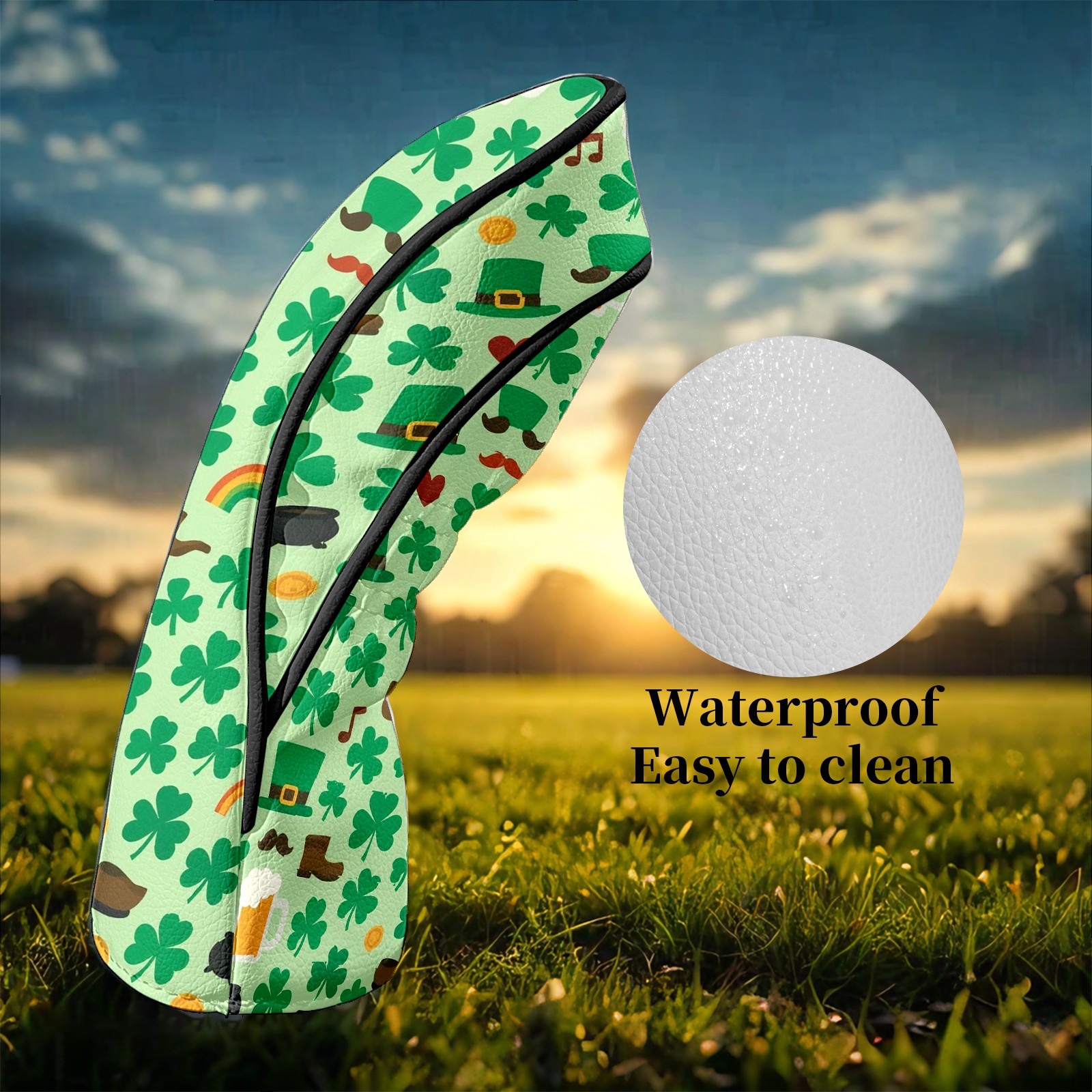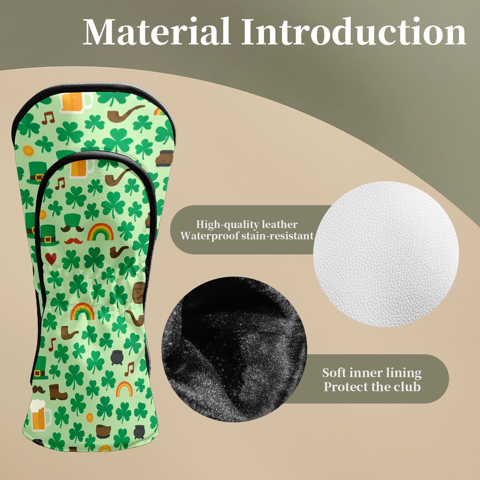 Golf Club Head Covers Lucky Clover Green Premium Plush Velvet Lining, Waterproof Golf Headcovers Driver & Fairway Woods for Scratch Protection Novelty Gift for Men & Women
