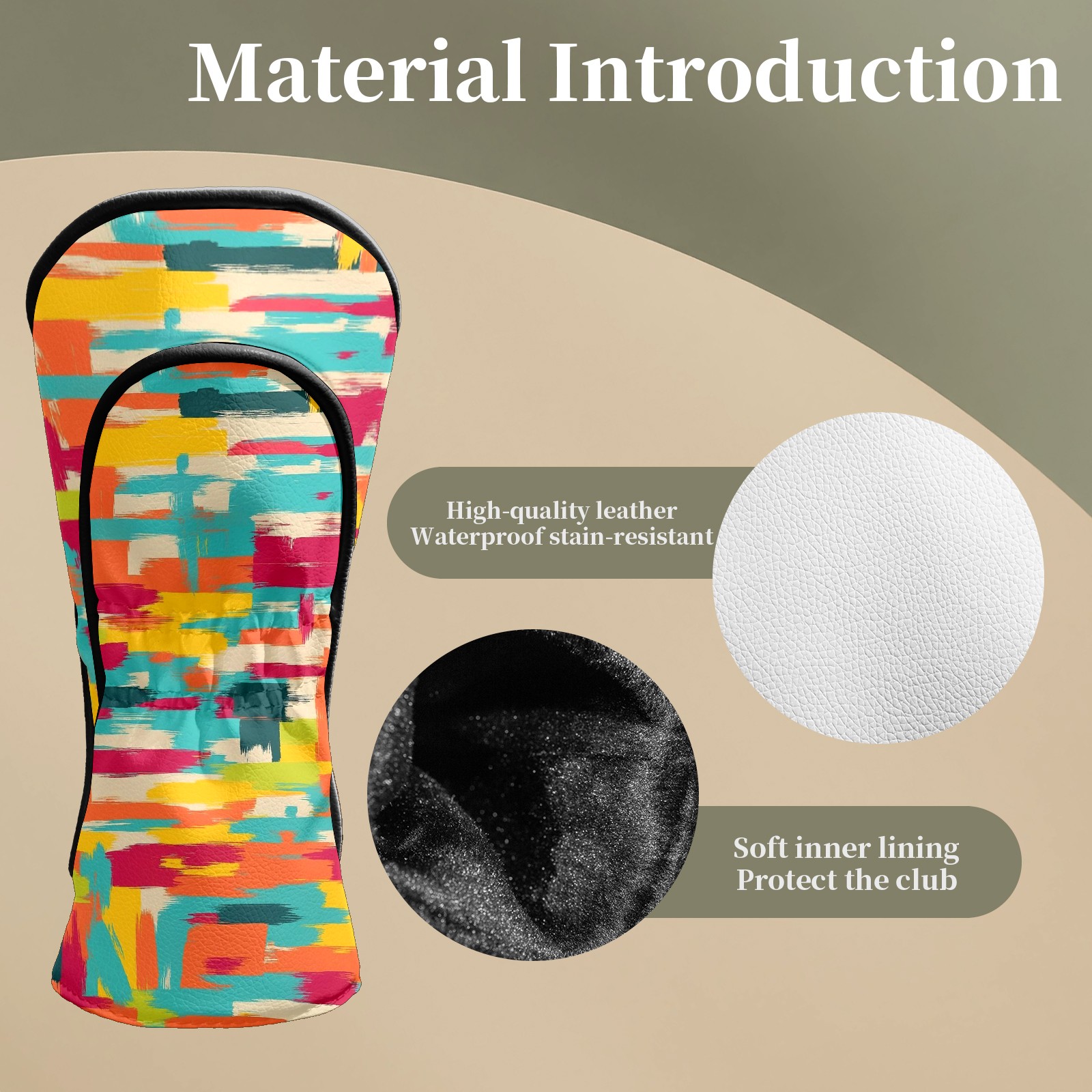Golf Club Head Covers Vibrant Brushstroke Multi Premium Plush Velvet Lining, Waterproof Golf Headcovers Driver & Fairway Woods for Scratch Protection Novelty Gift for Men & Women