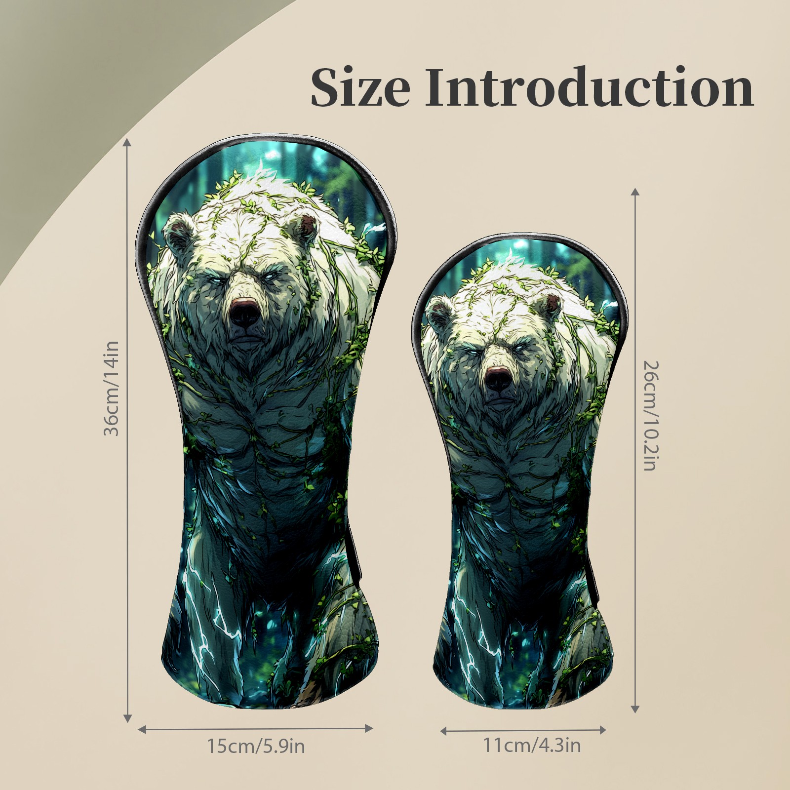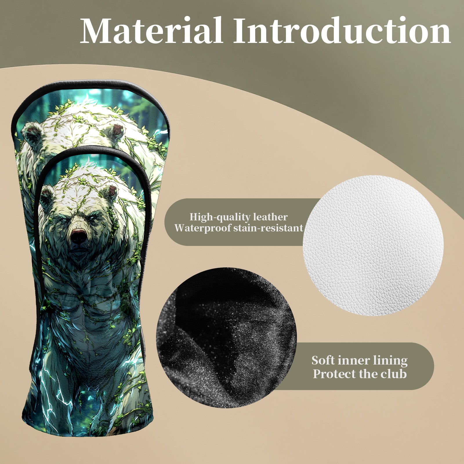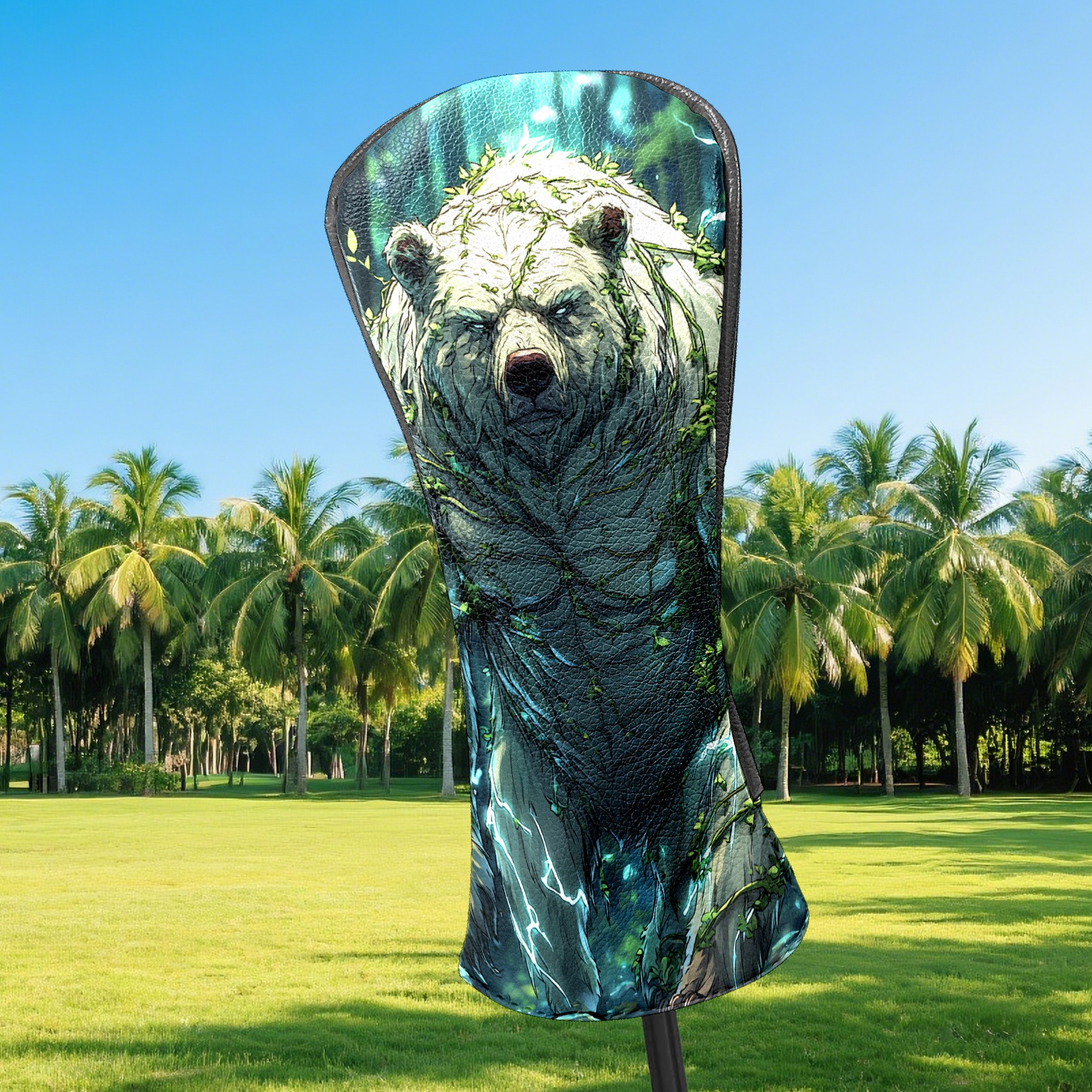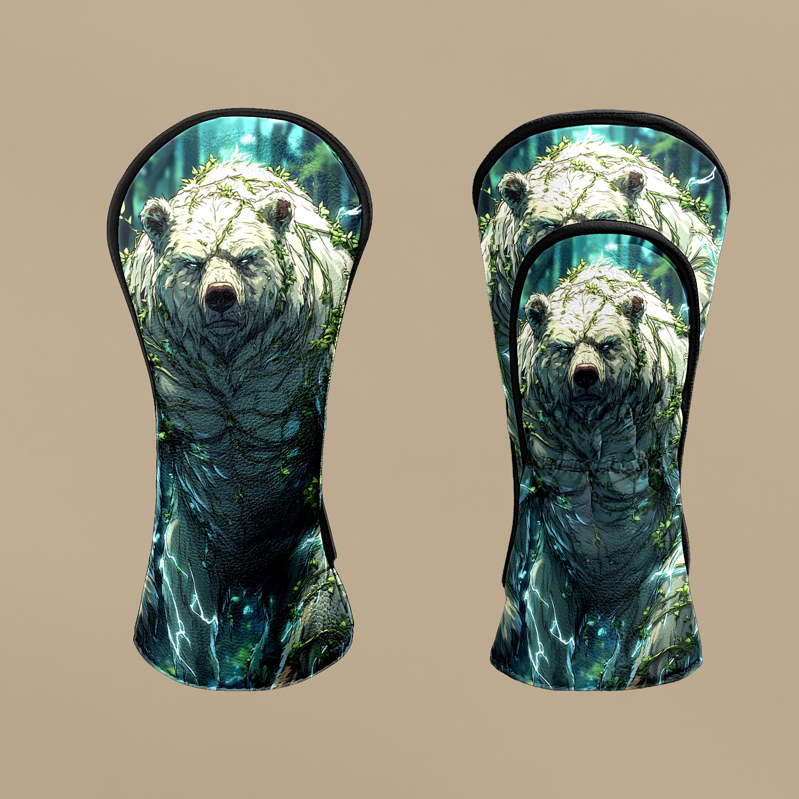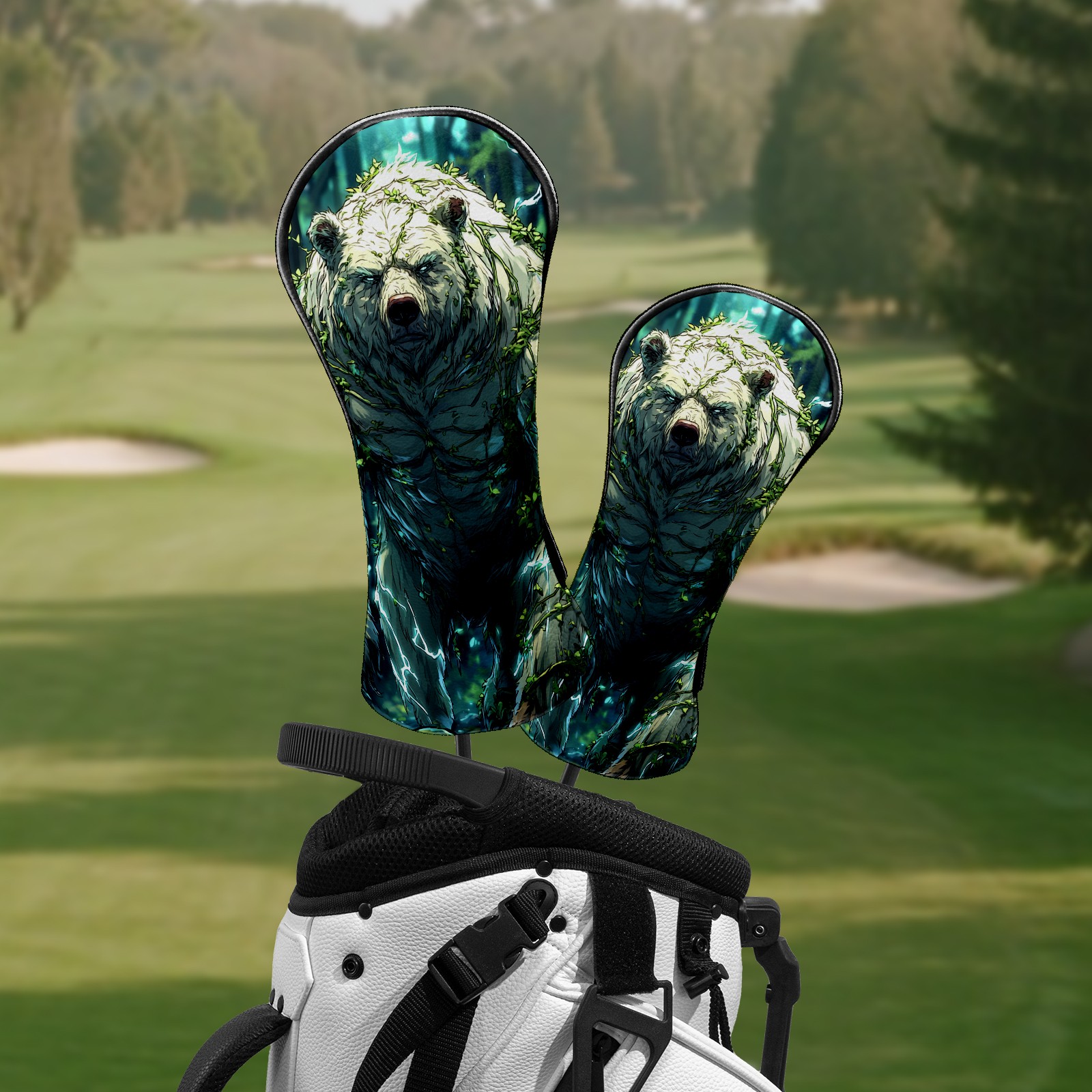 Golf Club Head Covers Ancient Bear Green Premium Plush Velvet Lining, Waterproof Golf Headcovers Driver & Fairway Woods for Scratch Protection Novelty Gift for Men & Women