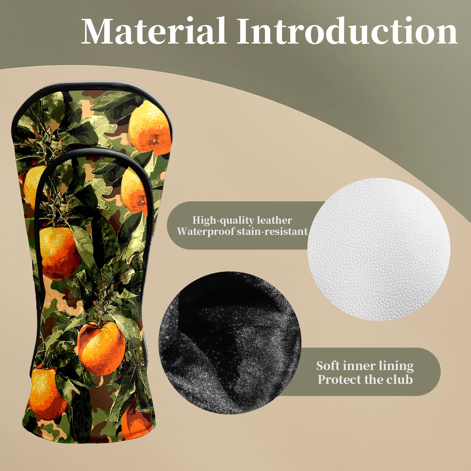 Golf Club Head Covers Fresh Orange Orange Premium Plush Velvet Lining, Waterproof Golf Headcovers Driver & Fairway Woods for Scratch Protection Novelty Gift for Men & Women