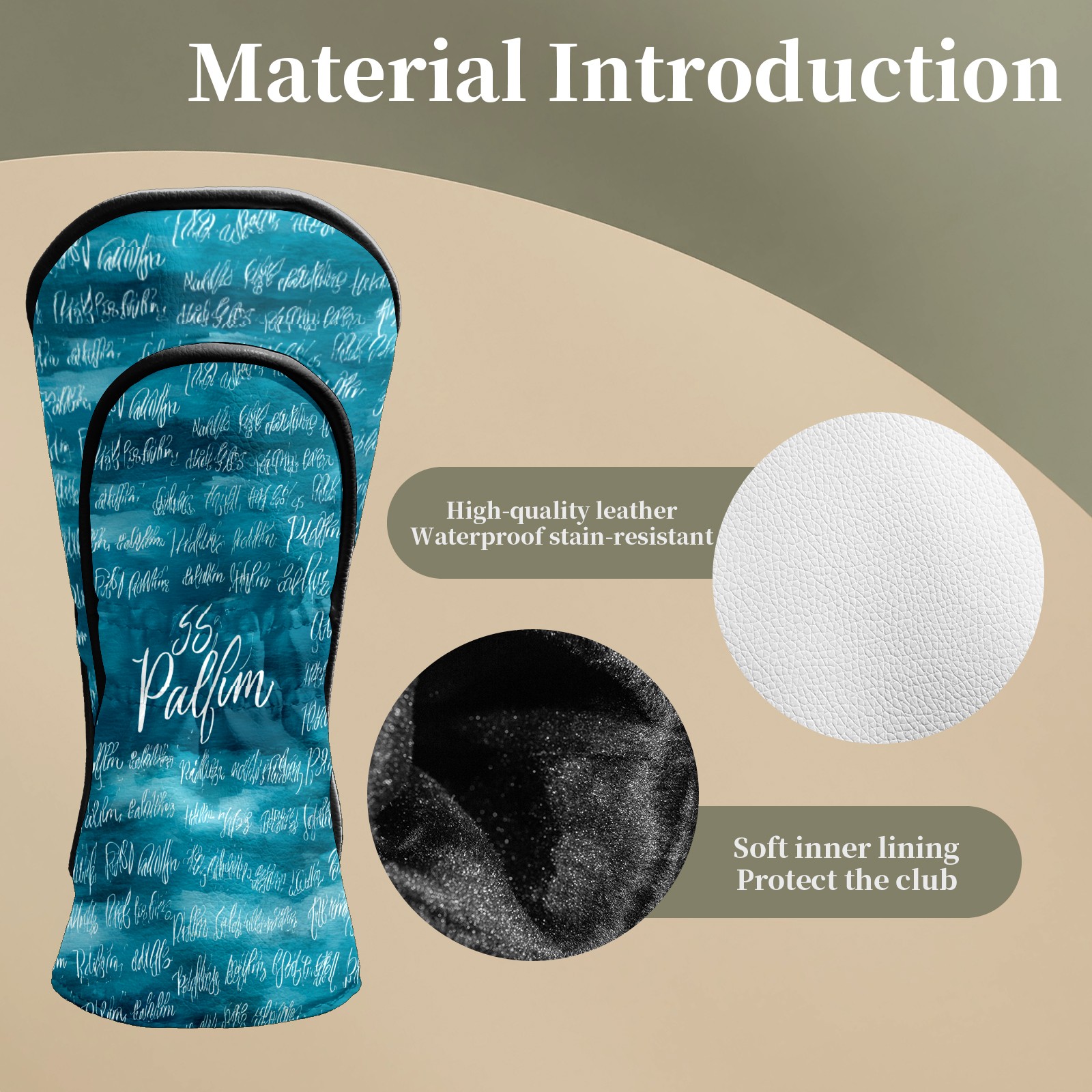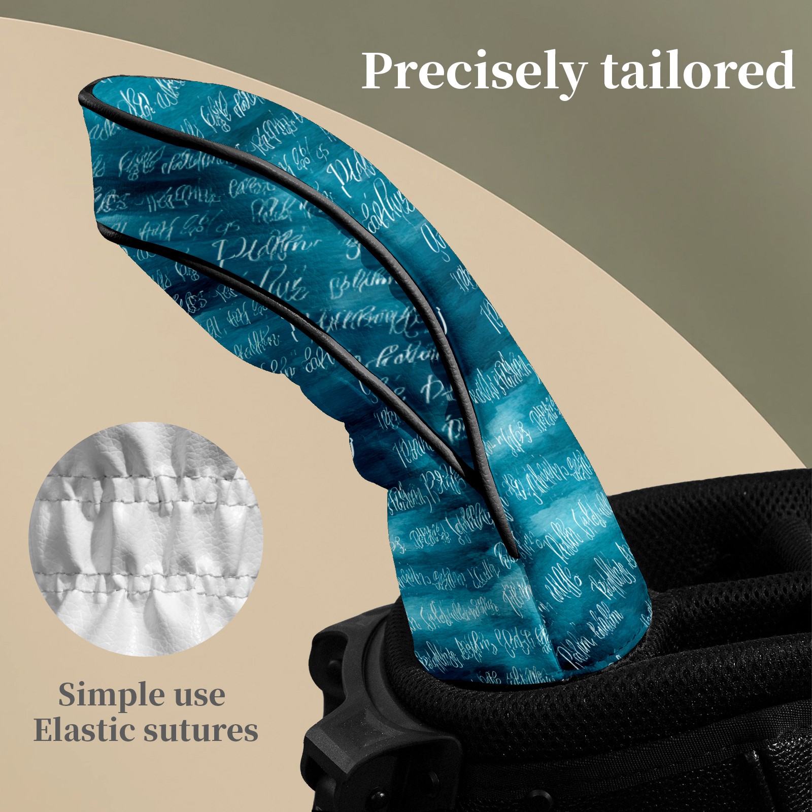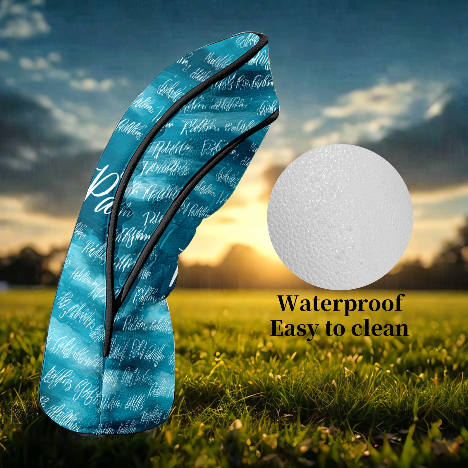 Golf Club Head Covers Artistic Text Blue Premium Plush Velvet Lining, Waterproof Golf Headcovers Driver & Fairway Woods for Scratch Protection Novelty Gift for Men & Women