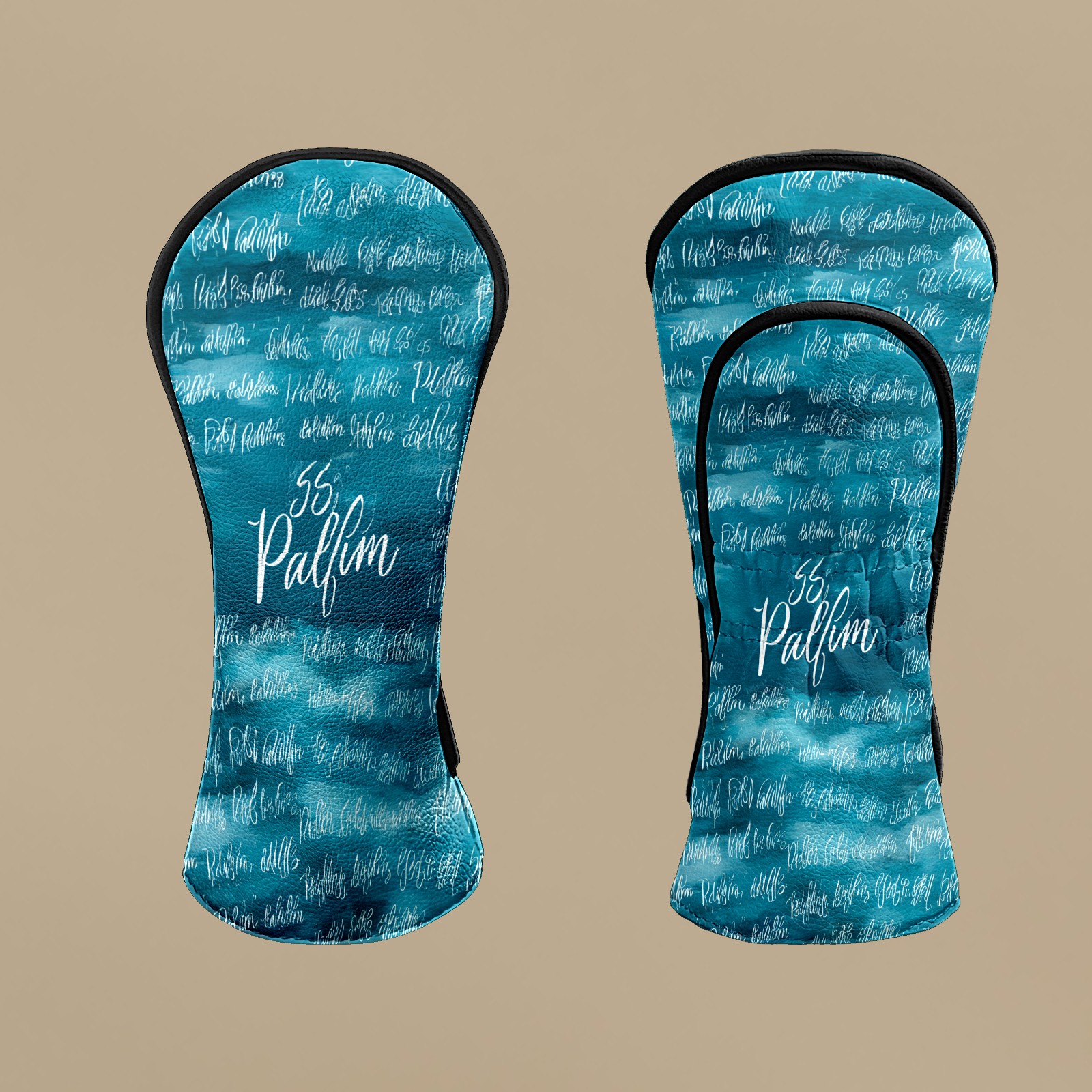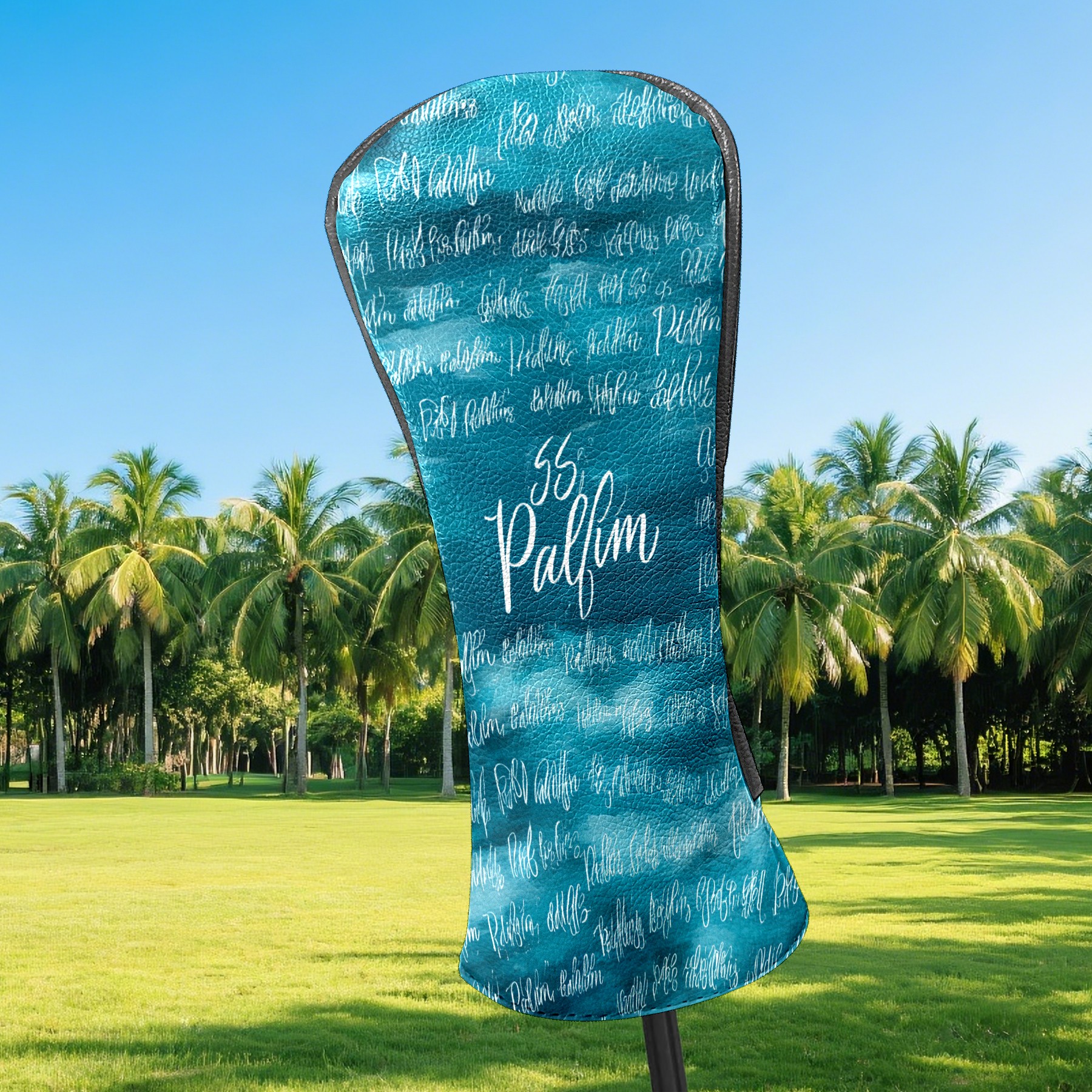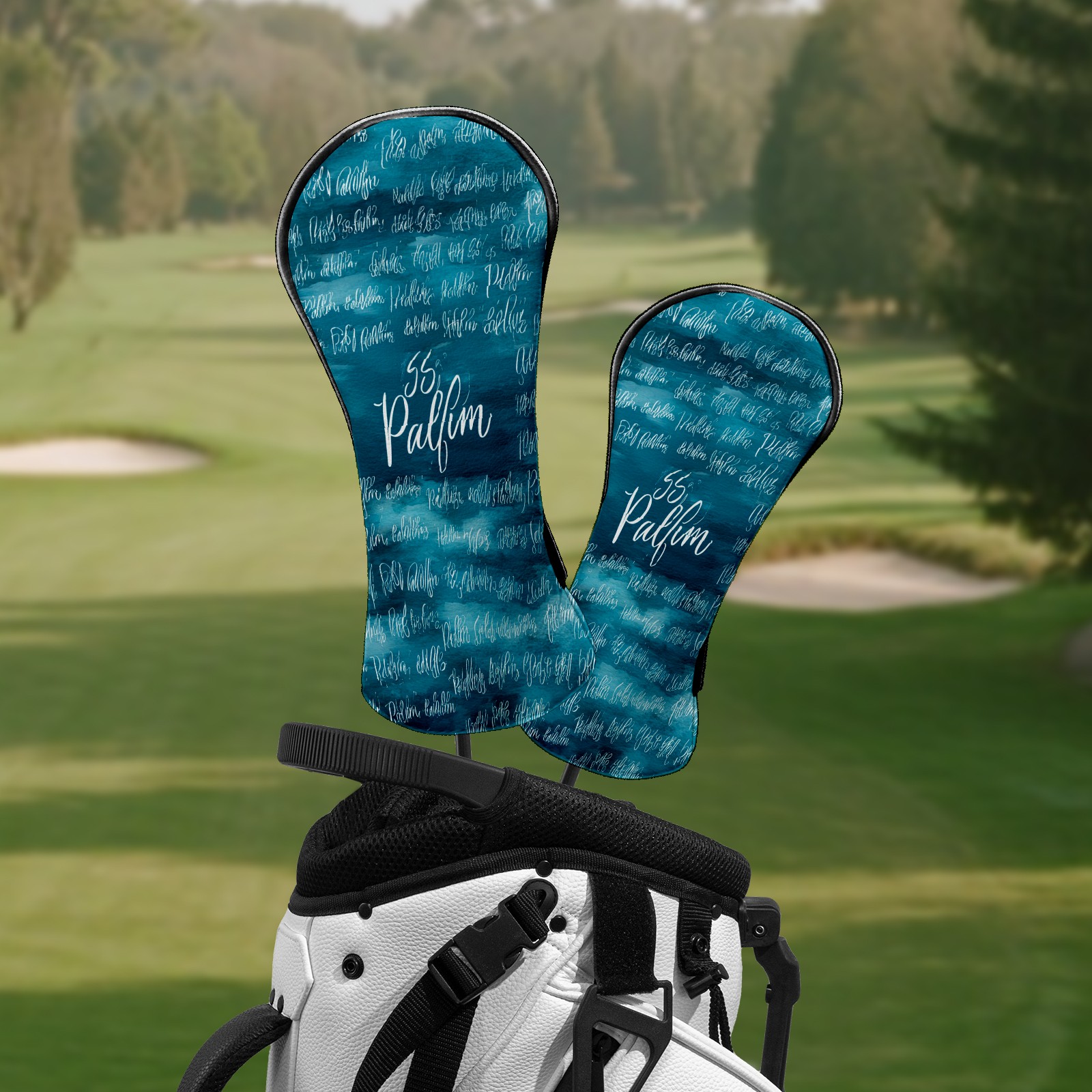 Golf Club Head Covers Artistic Text Blue Premium Plush Velvet Lining, Waterproof Golf Headcovers Driver & Fairway Woods for Scratch Protection Novelty Gift for Men & Women