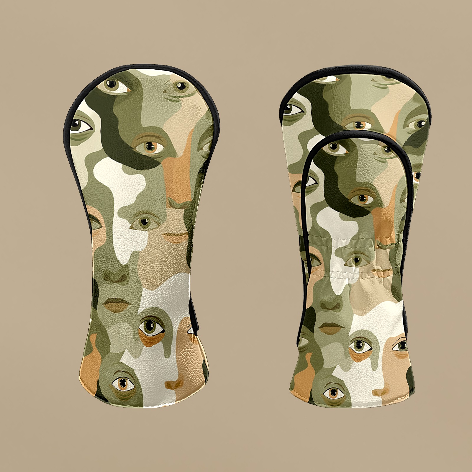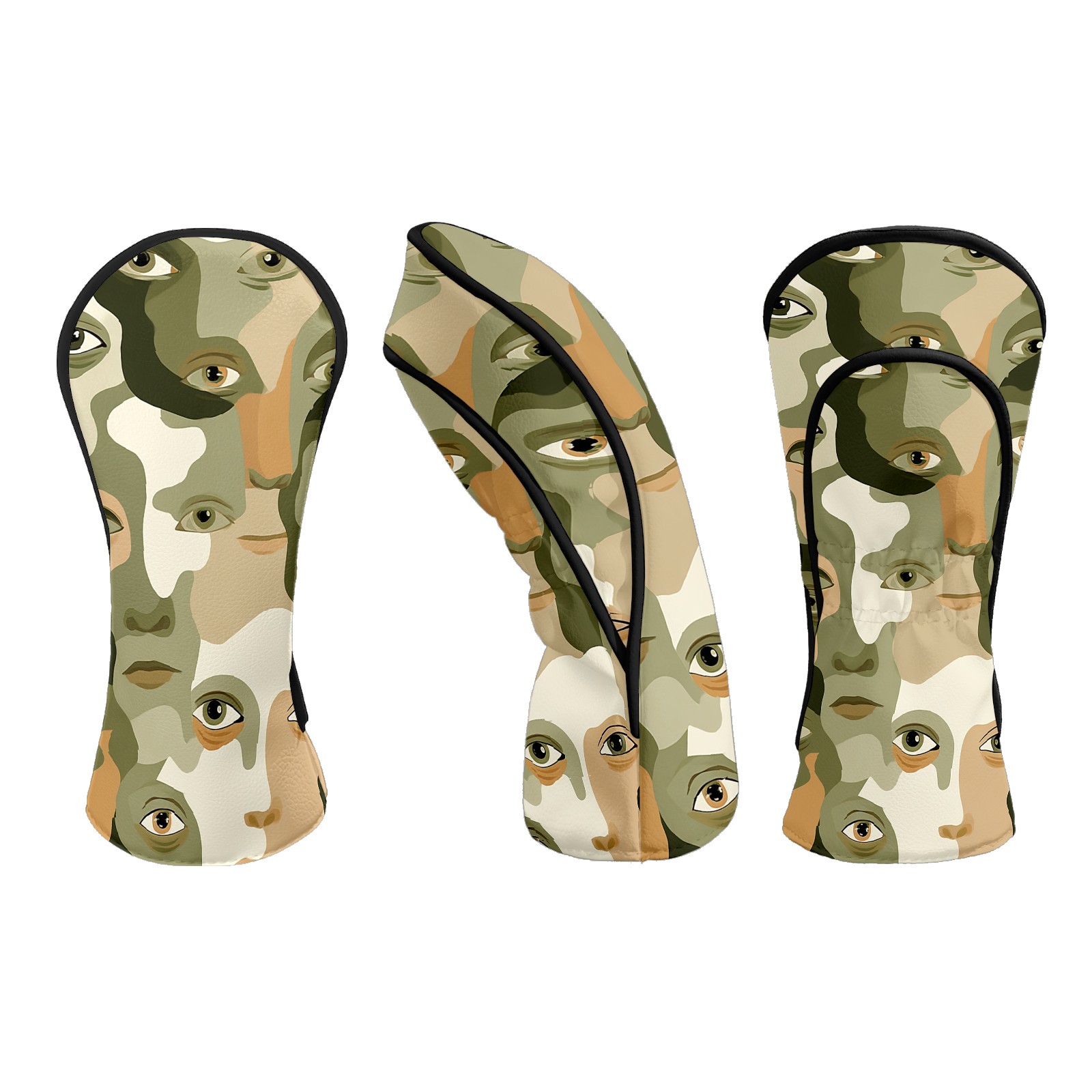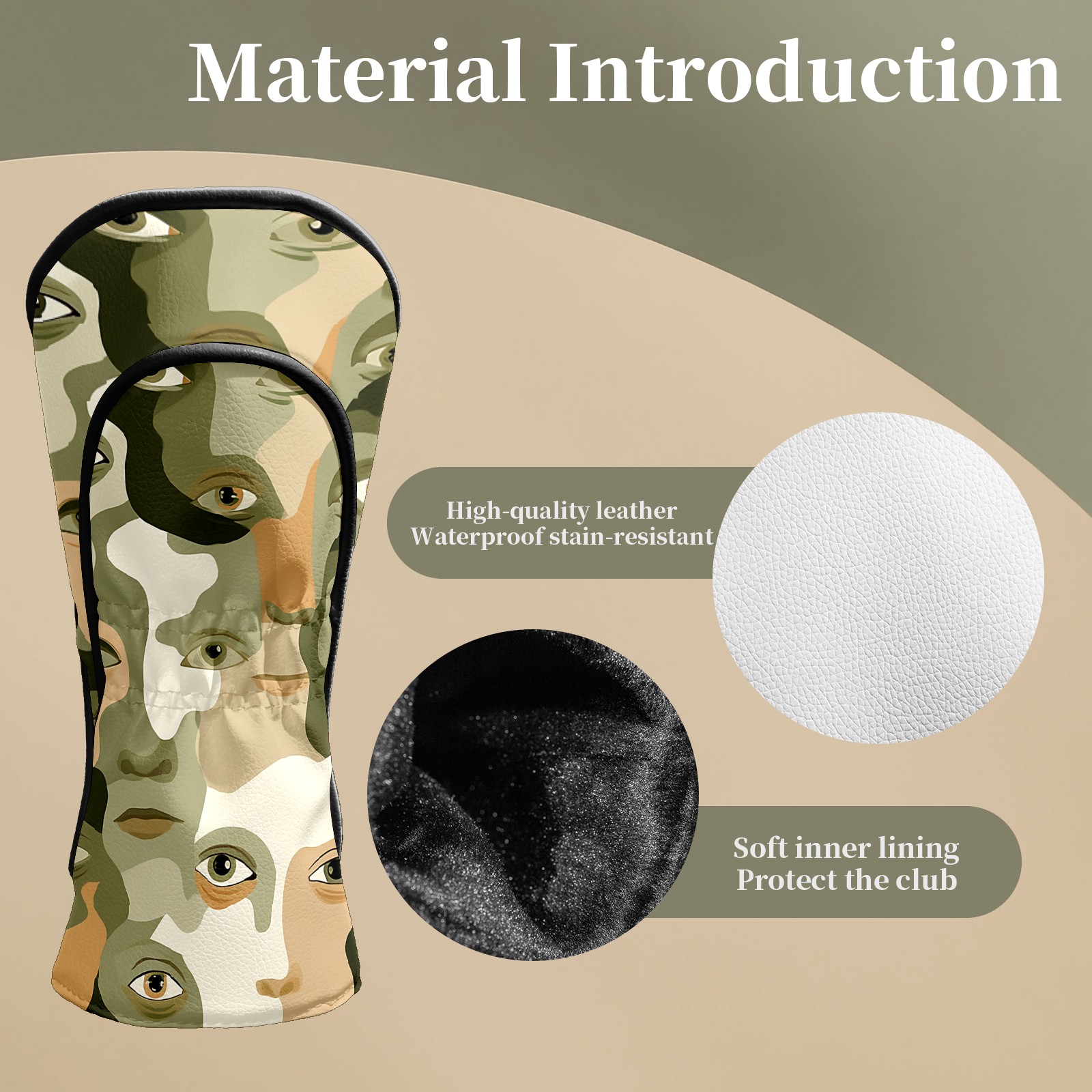 Golf Club Head Covers Mysterious Camouflage Premium Plush Velvet Lining, Waterproof Golf Headcovers Driver & Fairway Woods for Scratch Protection Novelty Gift for Men & Women