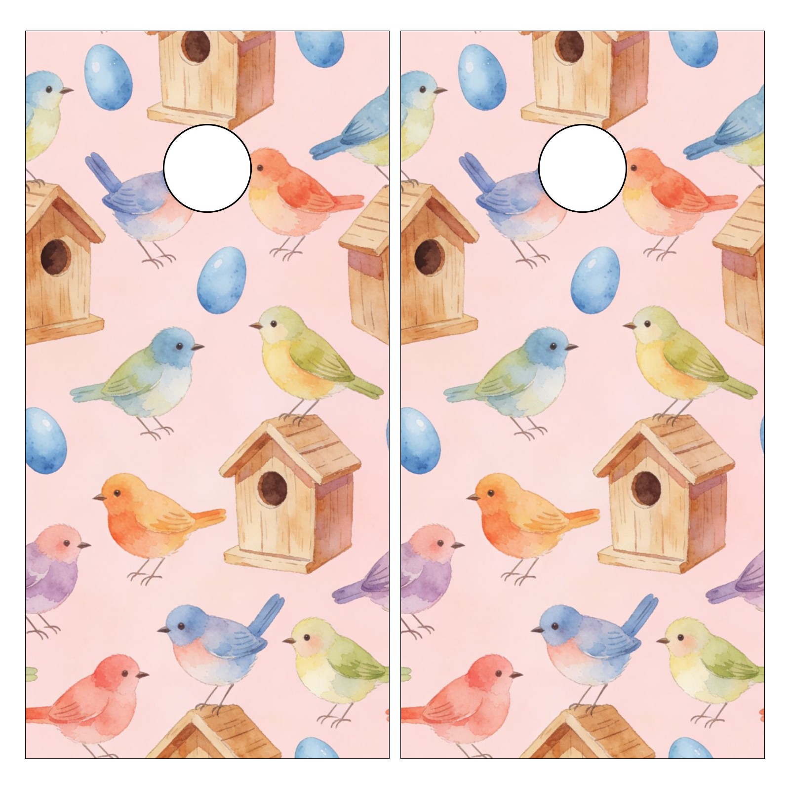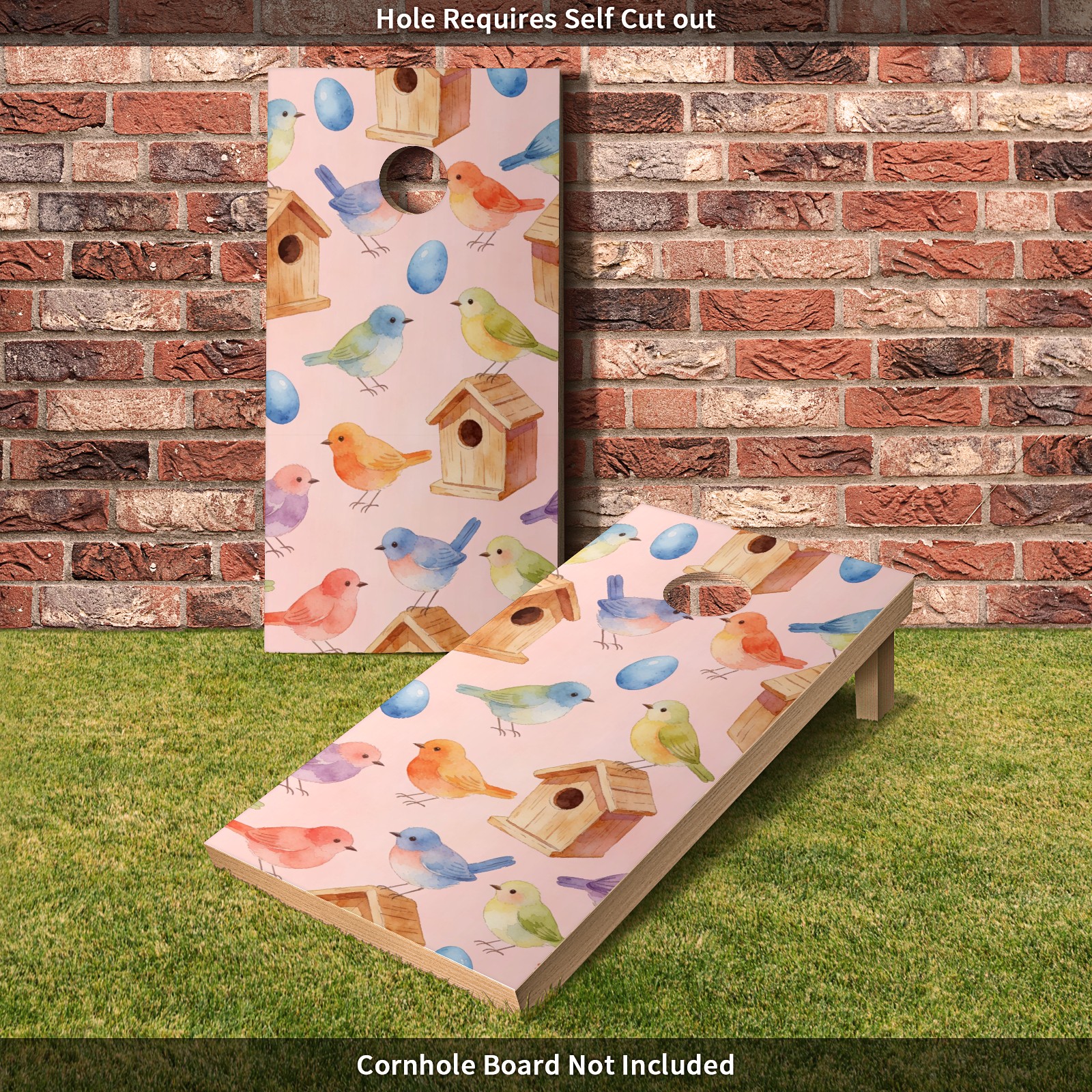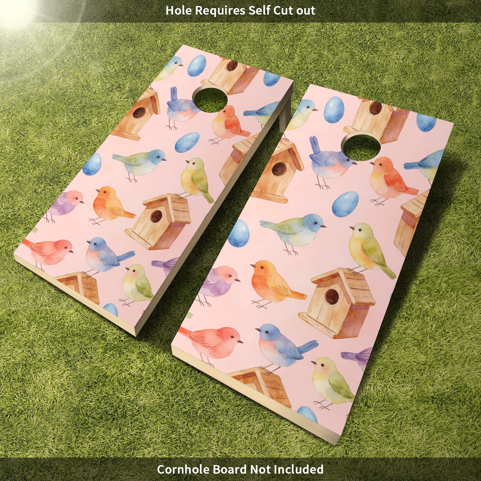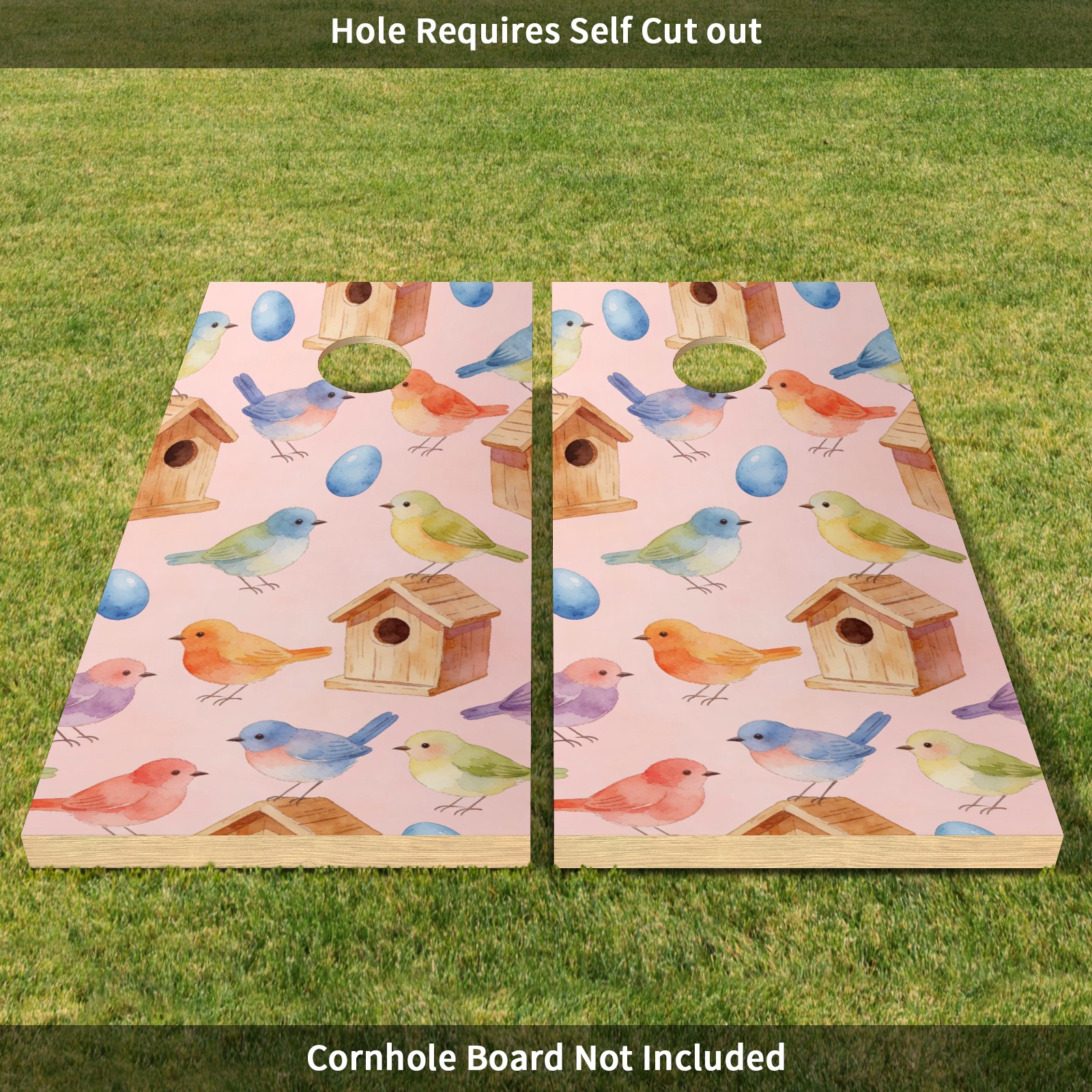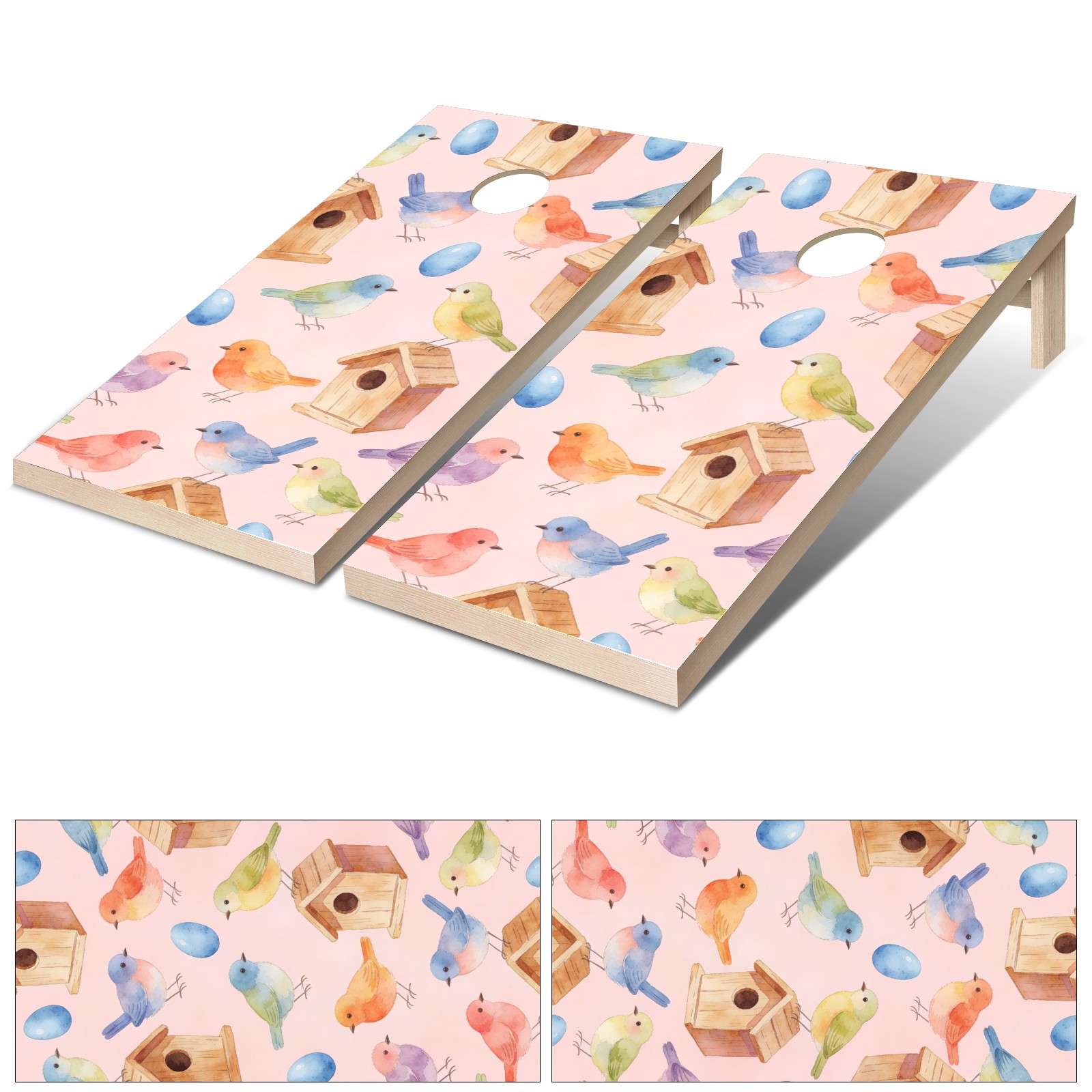 Portable 4x2 Ft Cornhole Boards Set with Two-piece Game Sticker(Decals ONLY), Easy to Apply - Corn Hole Games for Adults Outdoor Bean Bag Toss Game Colorful Bird Pattern