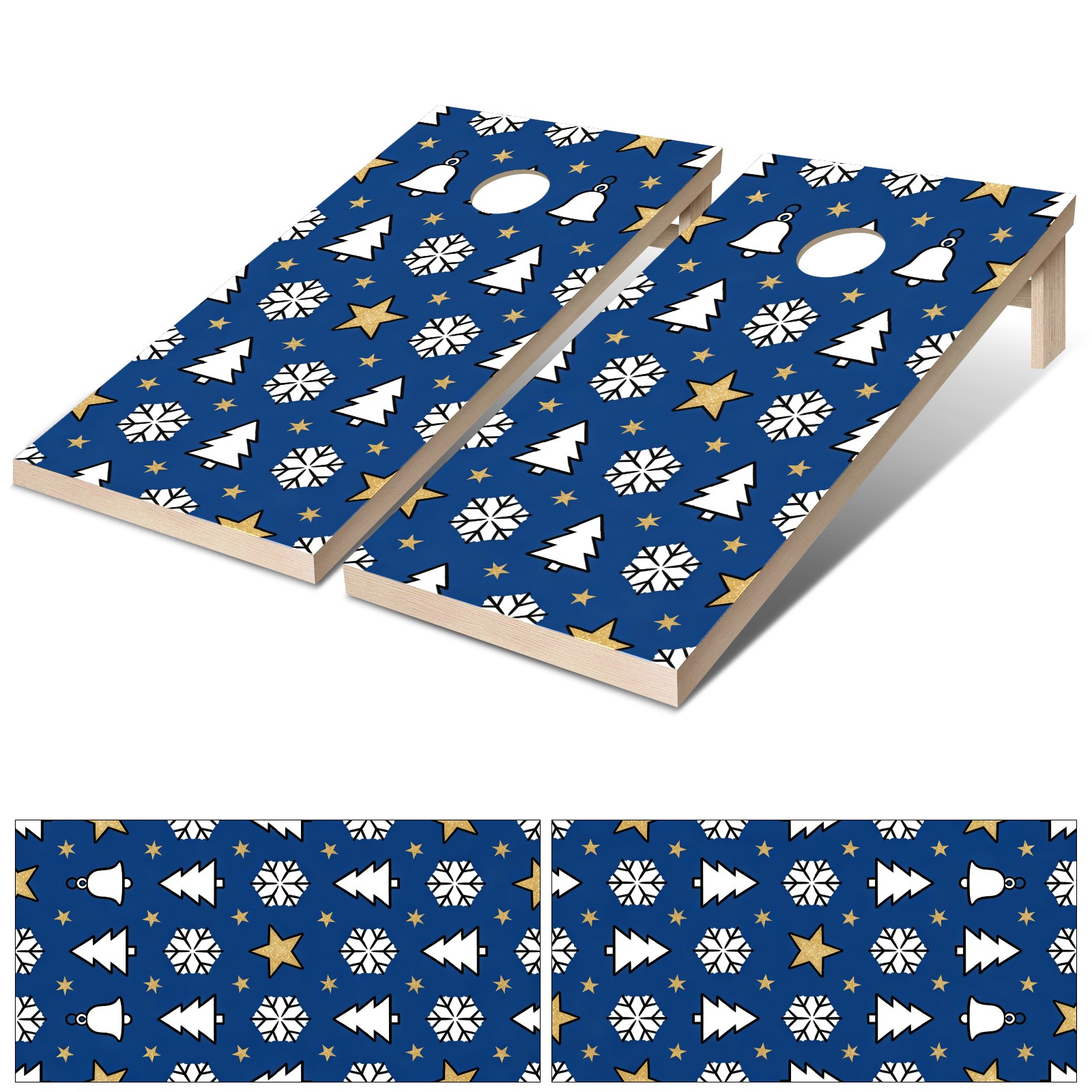 Portable 4x2 Ft Cornhole Boards Set with Two-piece Game Sticker(Decals ONLY), Easy to Apply - Corn Hole Games for Adults Outdoor Bean Bag Toss Game Christmas Snowflake Pattern