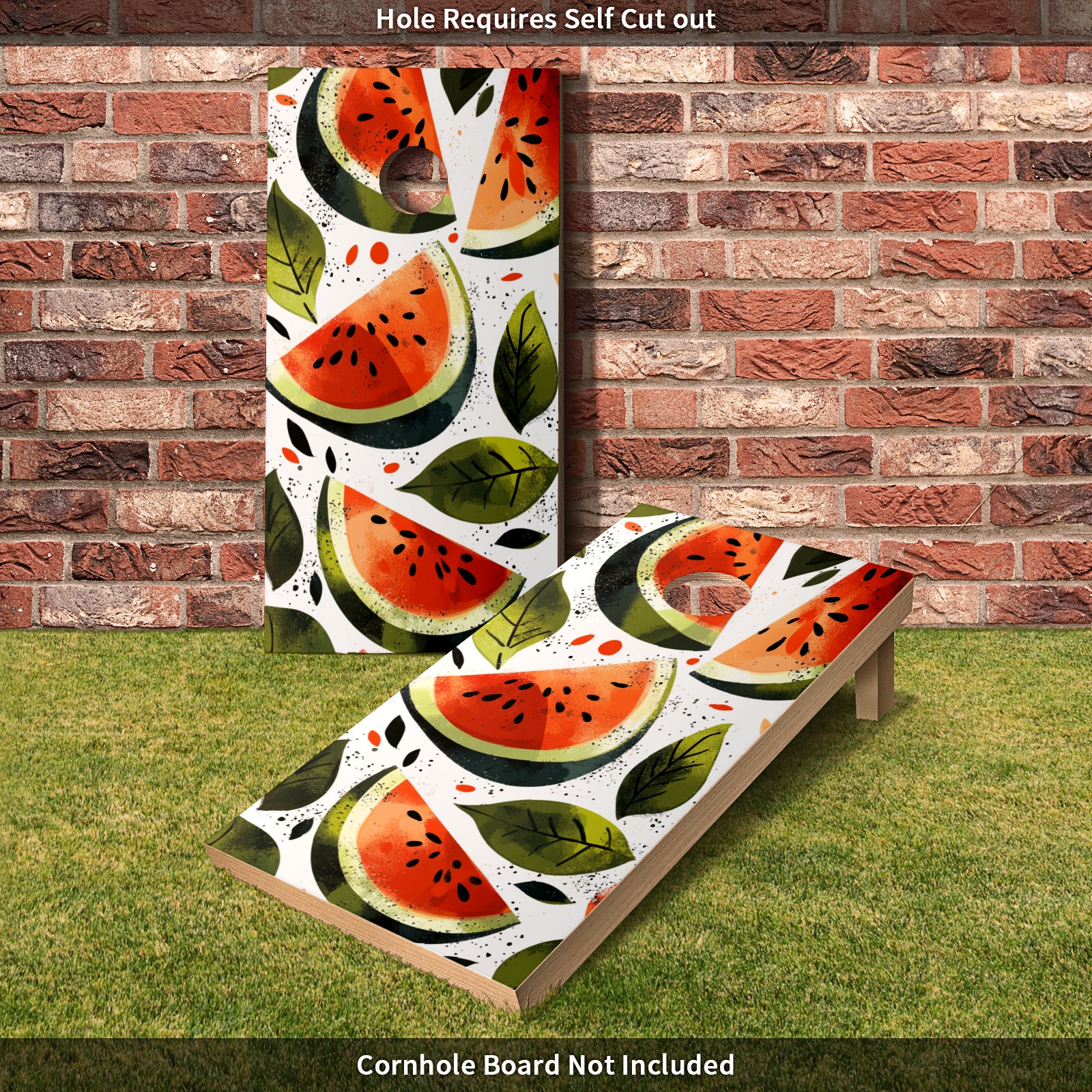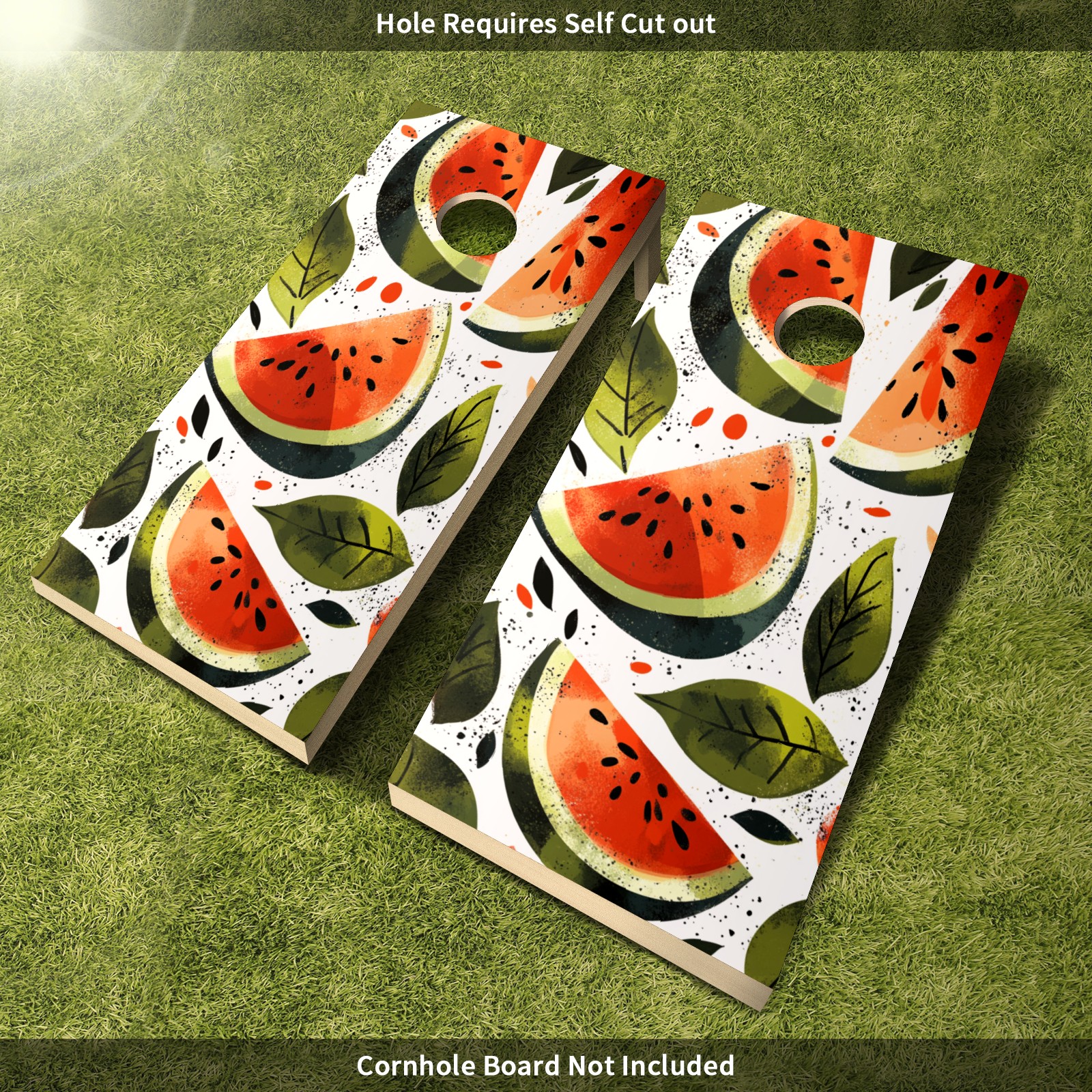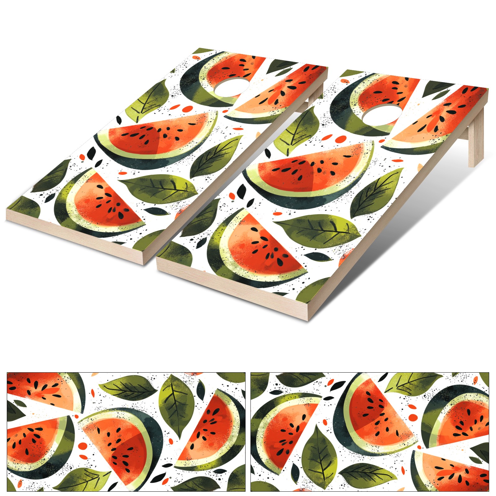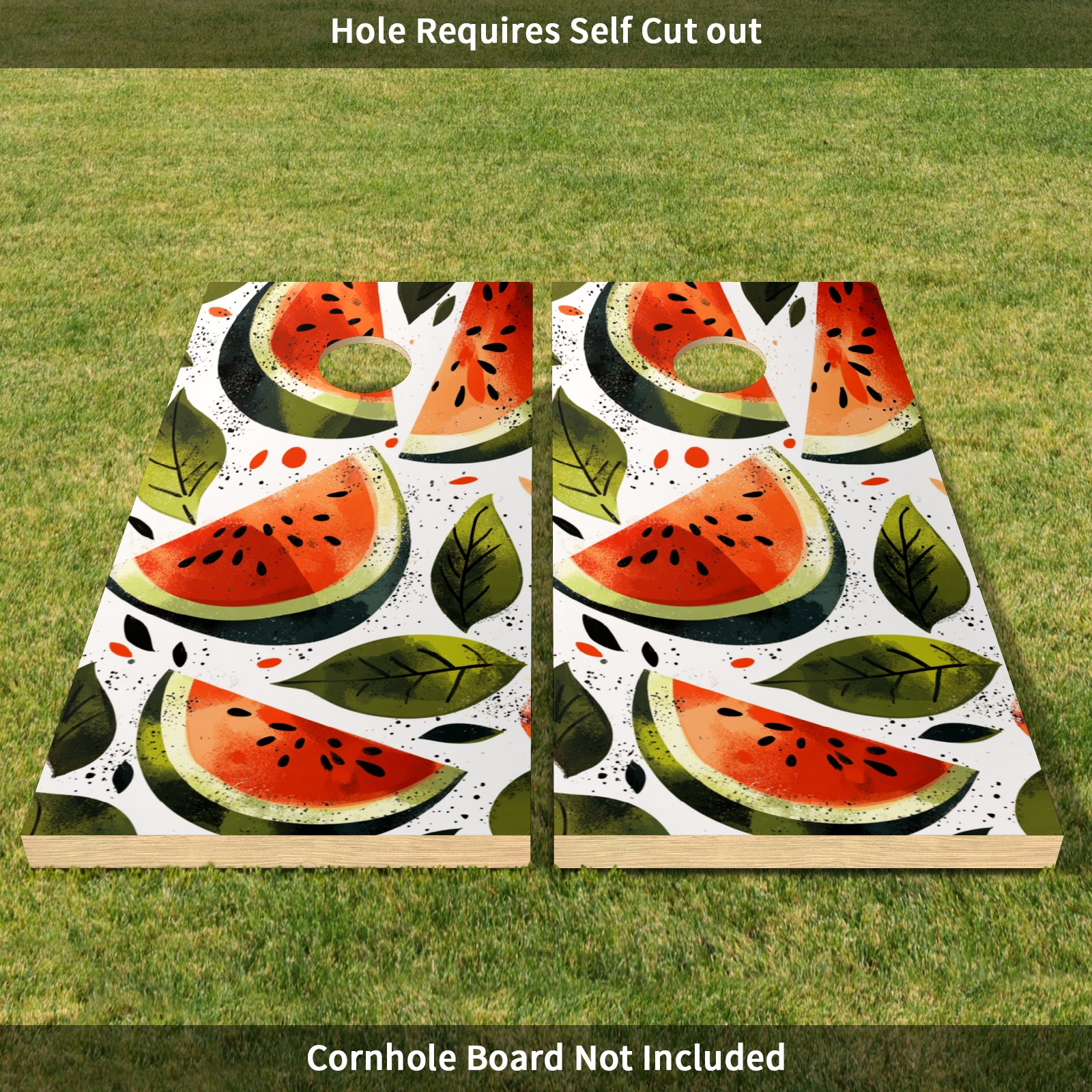 Portable 4x2 Ft Cornhole Boards Set with Two-piece Game Sticker(Decals ONLY), Easy to Apply - Corn Hole Games for Adults Outdoor Bean Bag Toss Game Watermelon Pattern