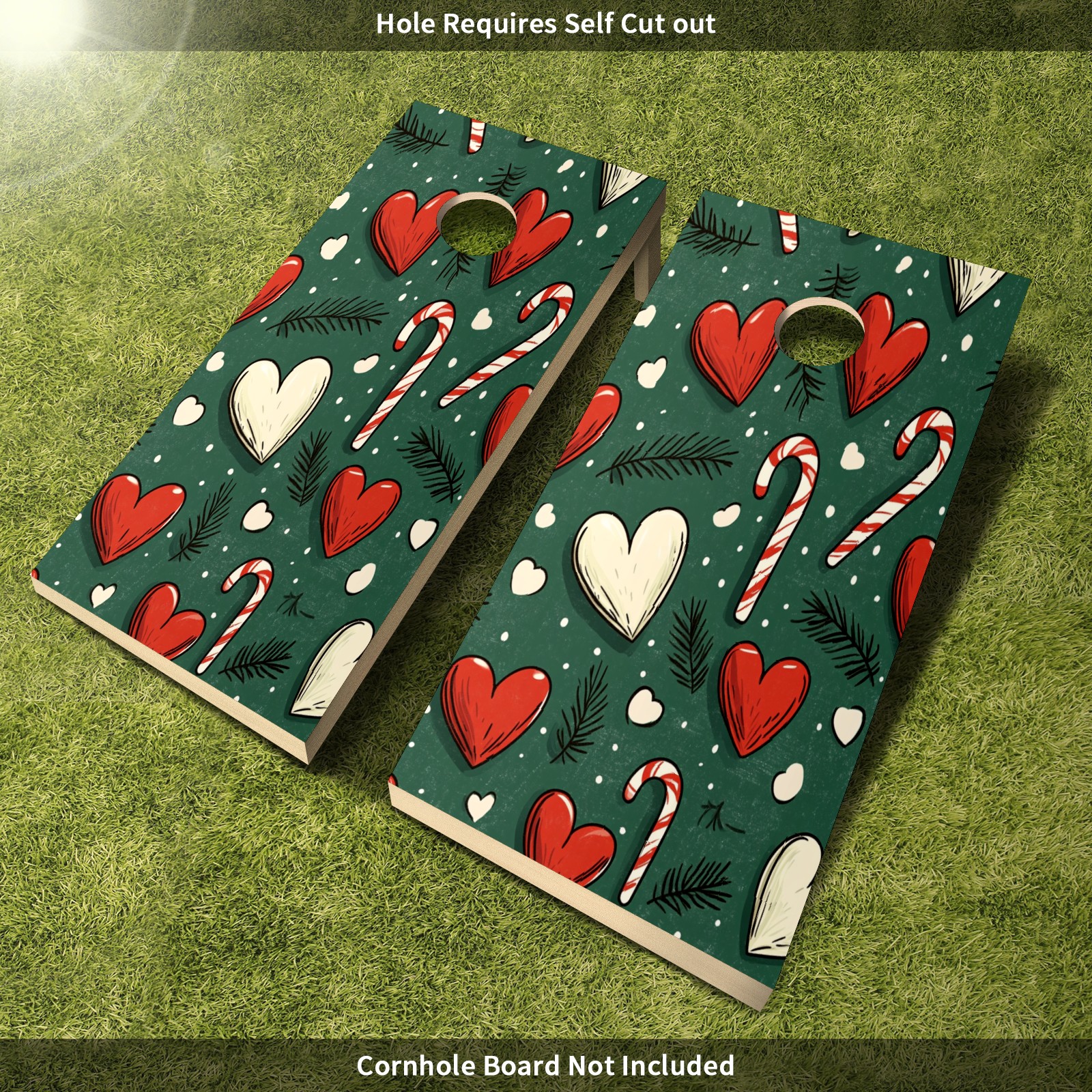Portable 4x2 Ft Cornhole Boards Set with Two-piece Game Sticker(Decals ONLY), Easy to Apply - Corn Hole Games for Adults Outdoor Bean Bag Toss Game Heart-shaped Candy Pattern