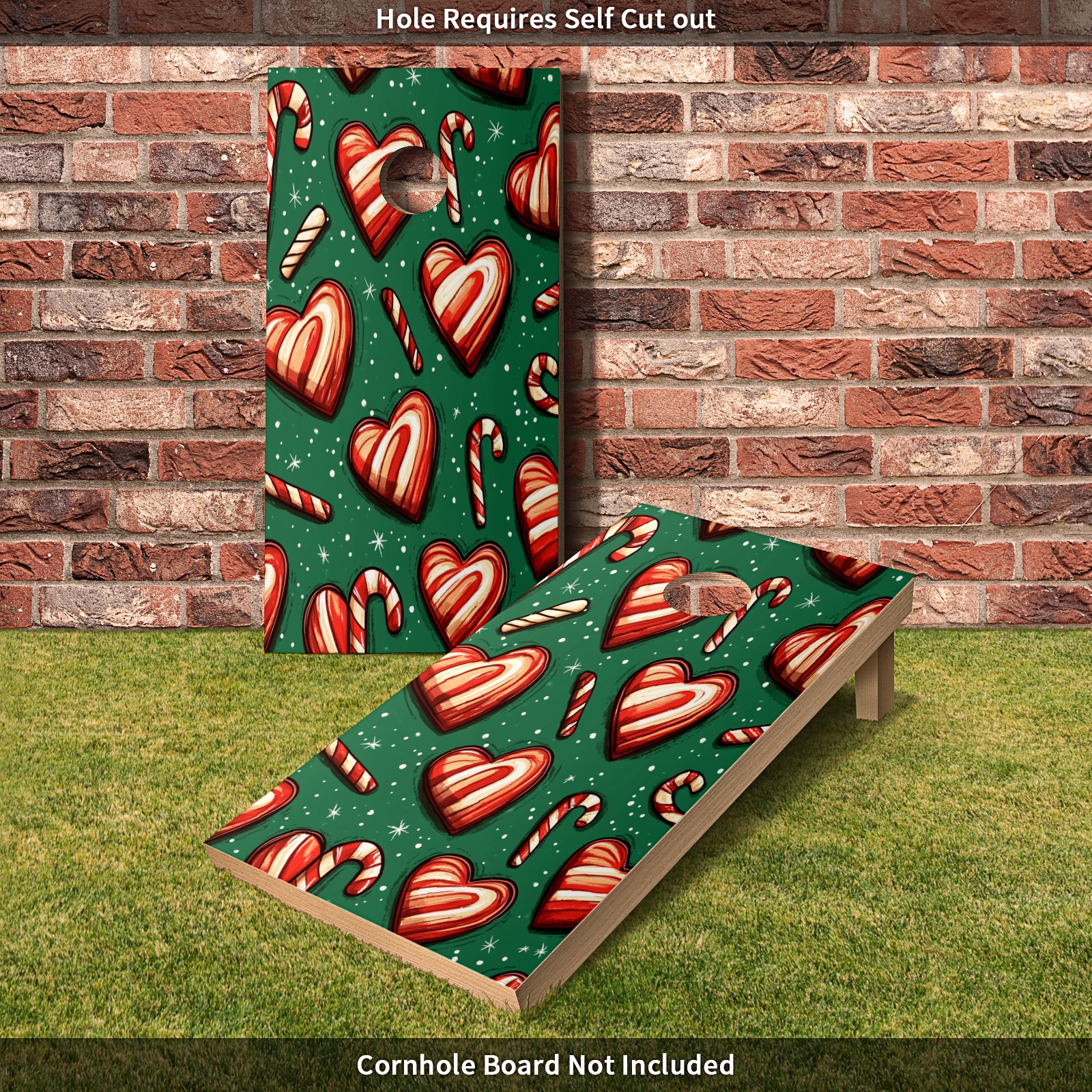 Portable 4x2 Ft Cornhole Boards Set with Two-piece Game Sticker(Decals ONLY), Easy to Apply - Corn Hole Games for Adults Outdoor Bean Bag Toss Game Heart-shaped Candy Pattern