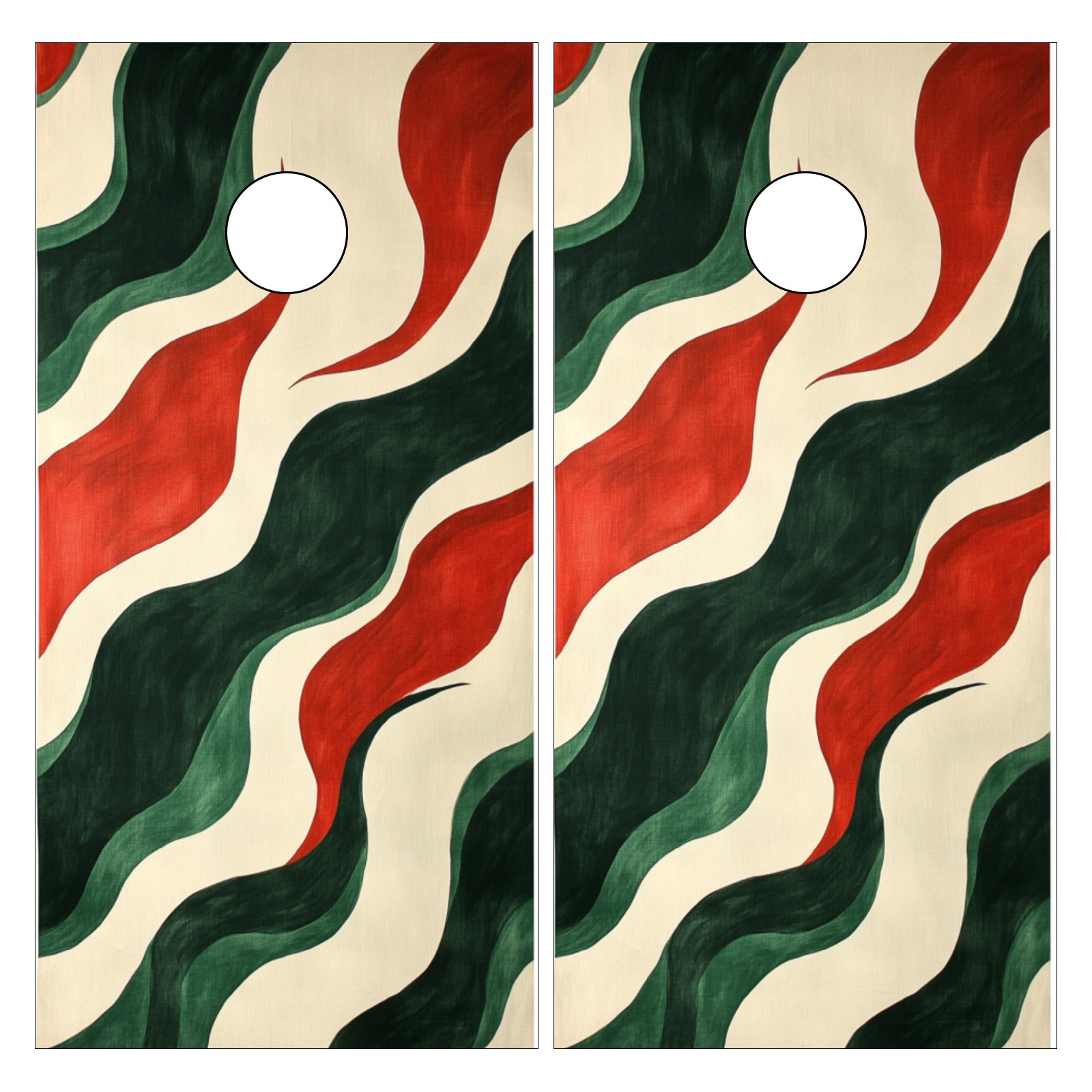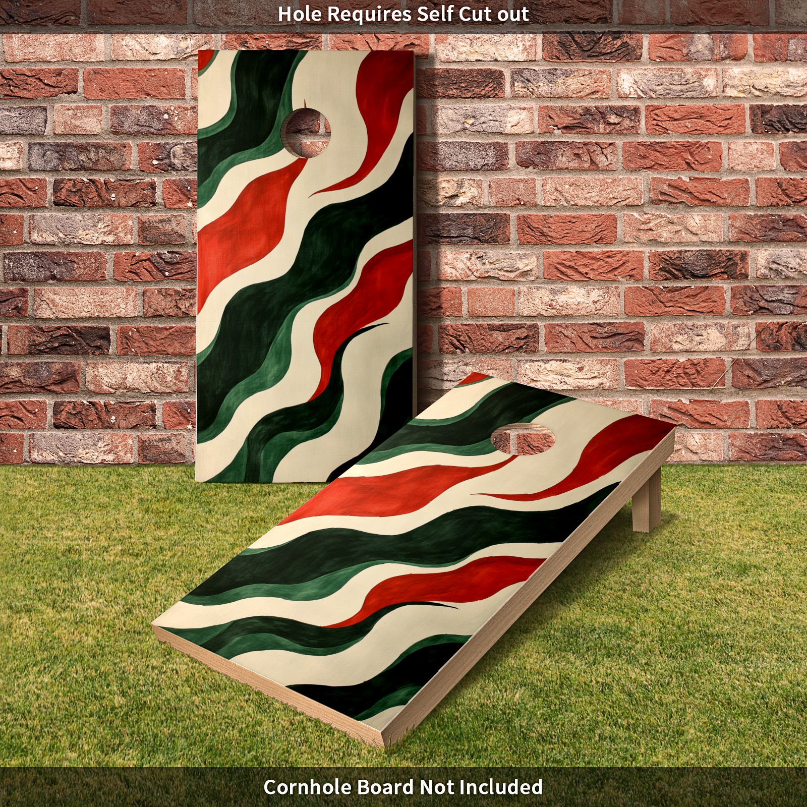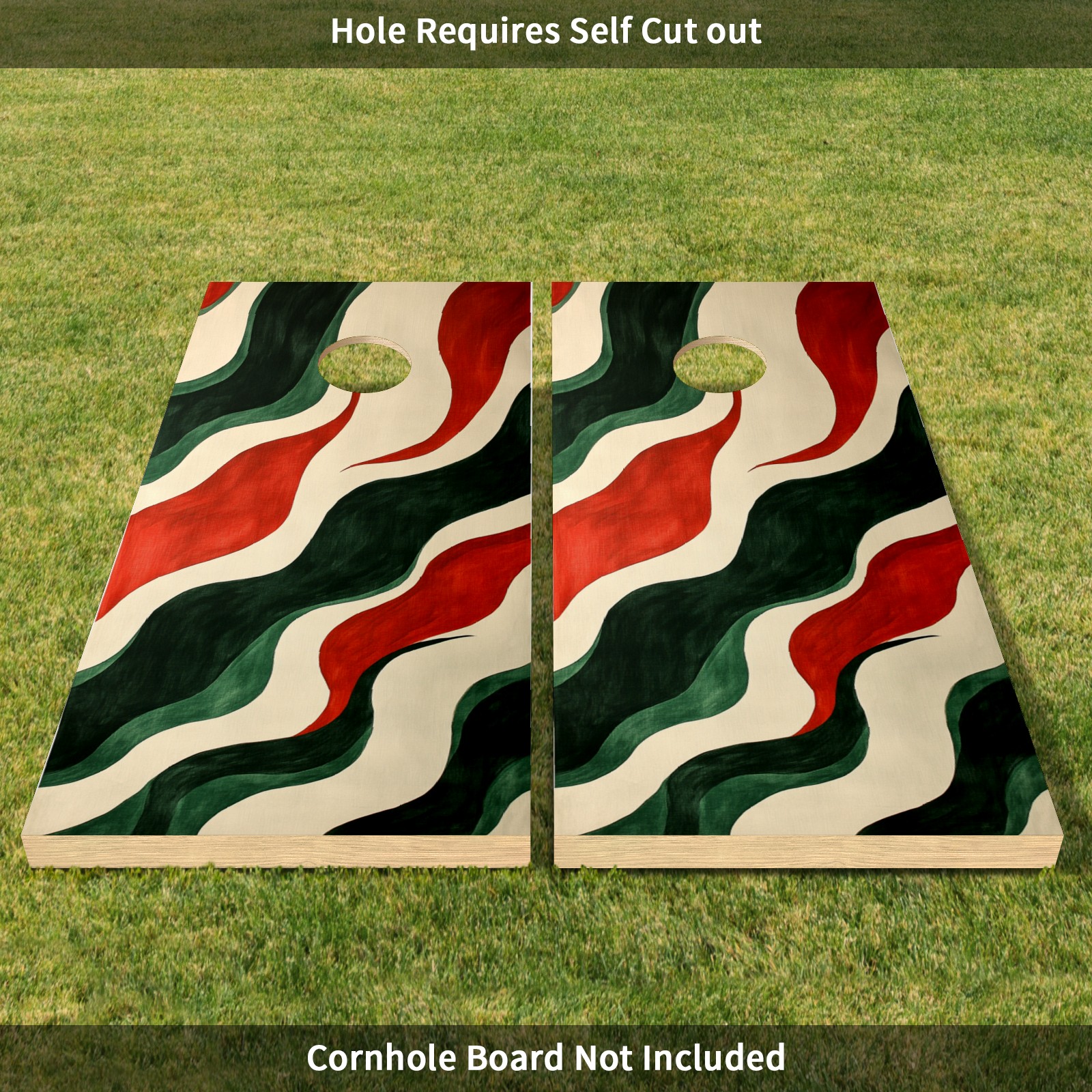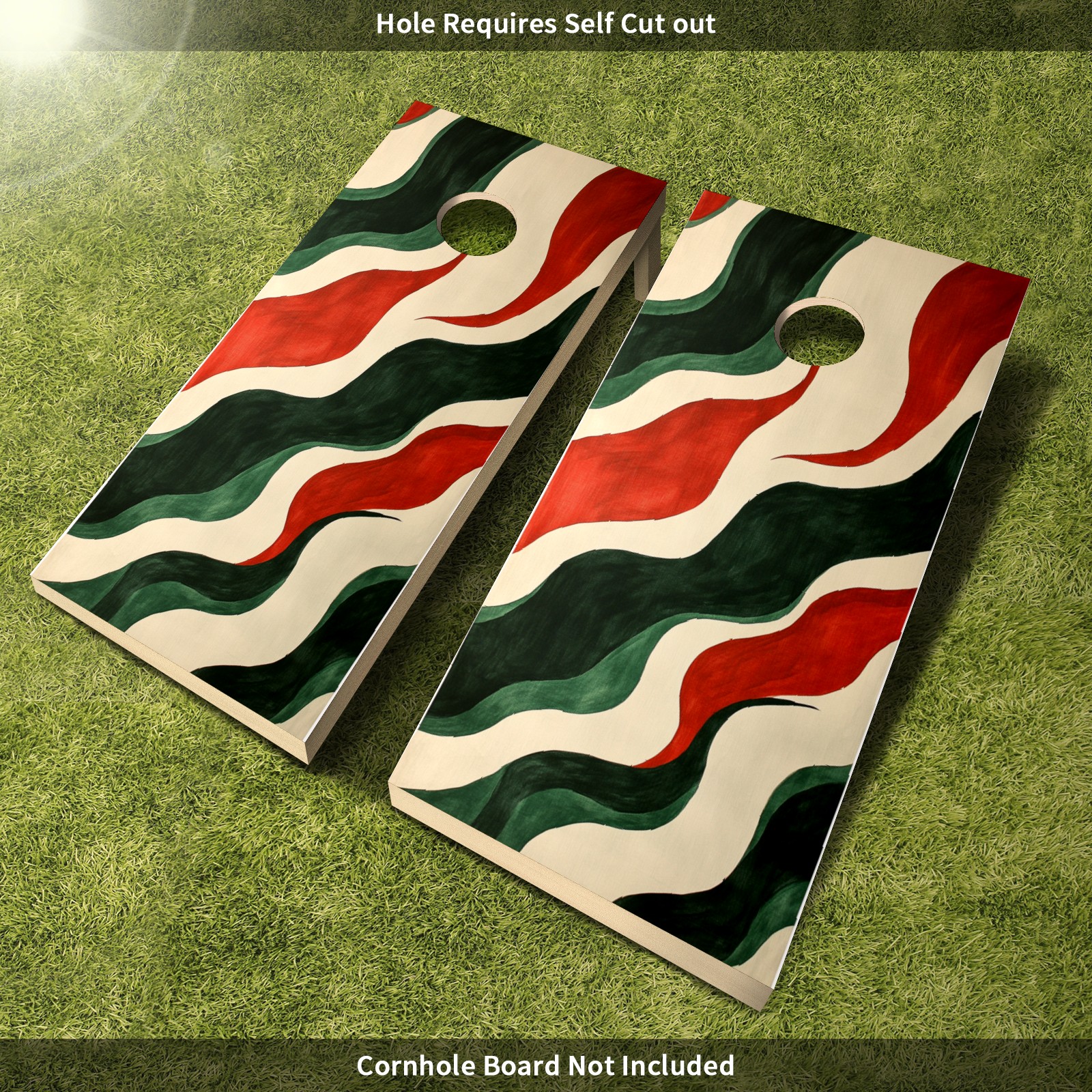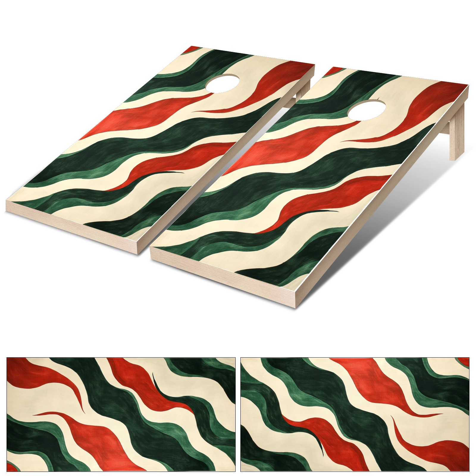 Portable 4x2 Ft Cornhole Boards Set with Two-piece Game Sticker(Decals ONLY), Easy to Apply - Corn Hole Games for Adults Outdoor Bean Bag Toss Game Red Green Striped Pattern