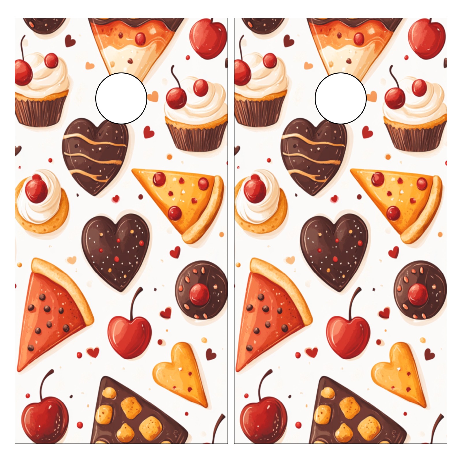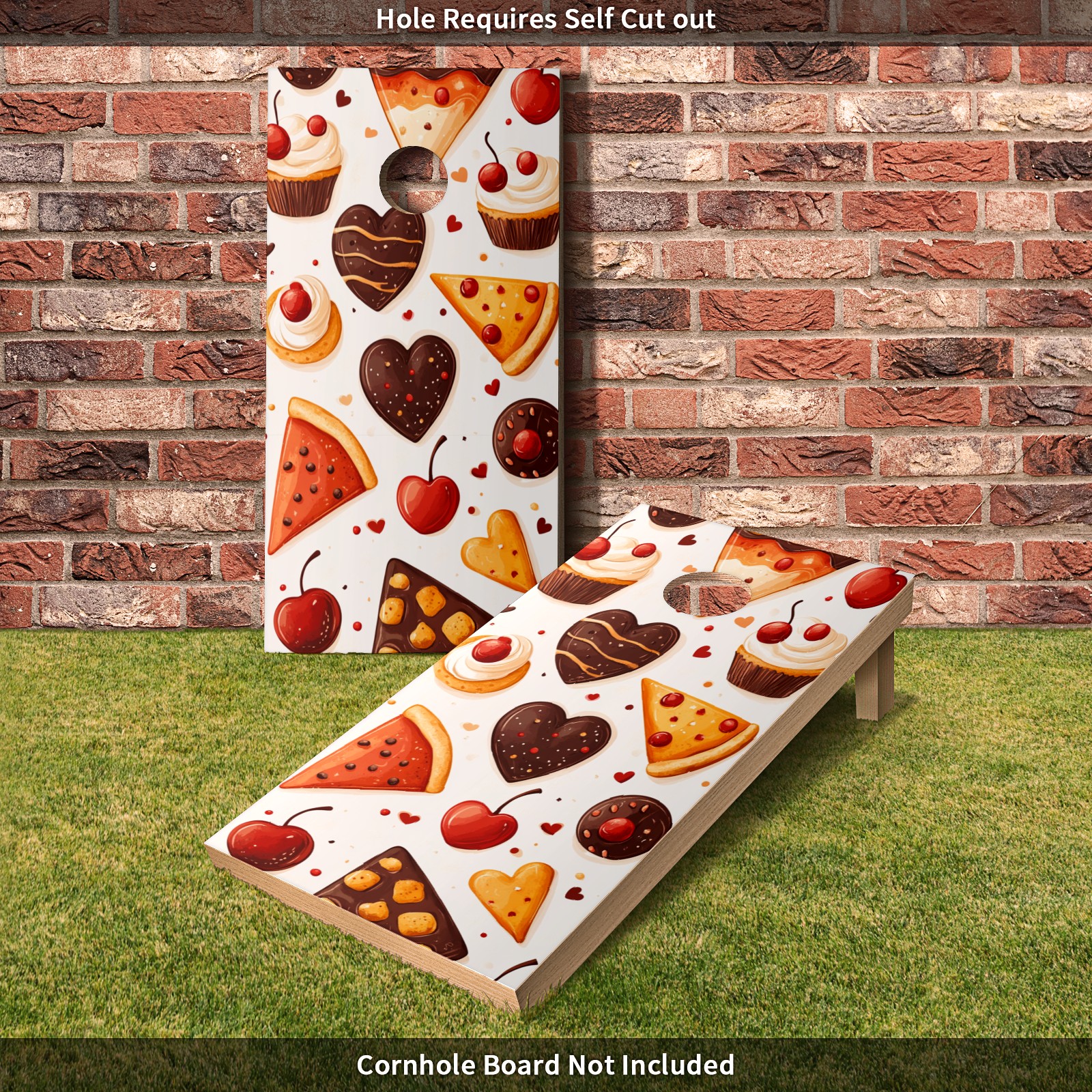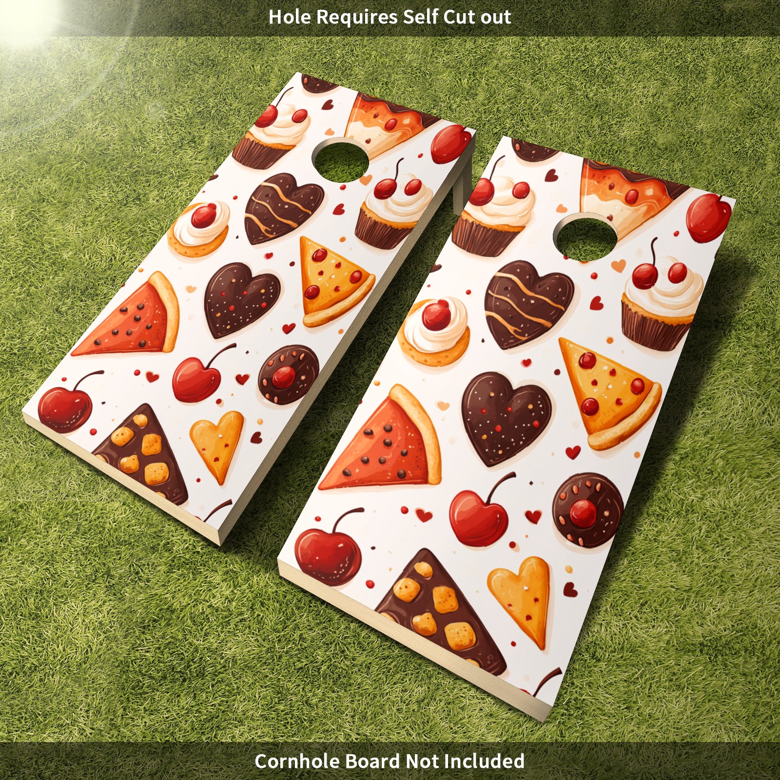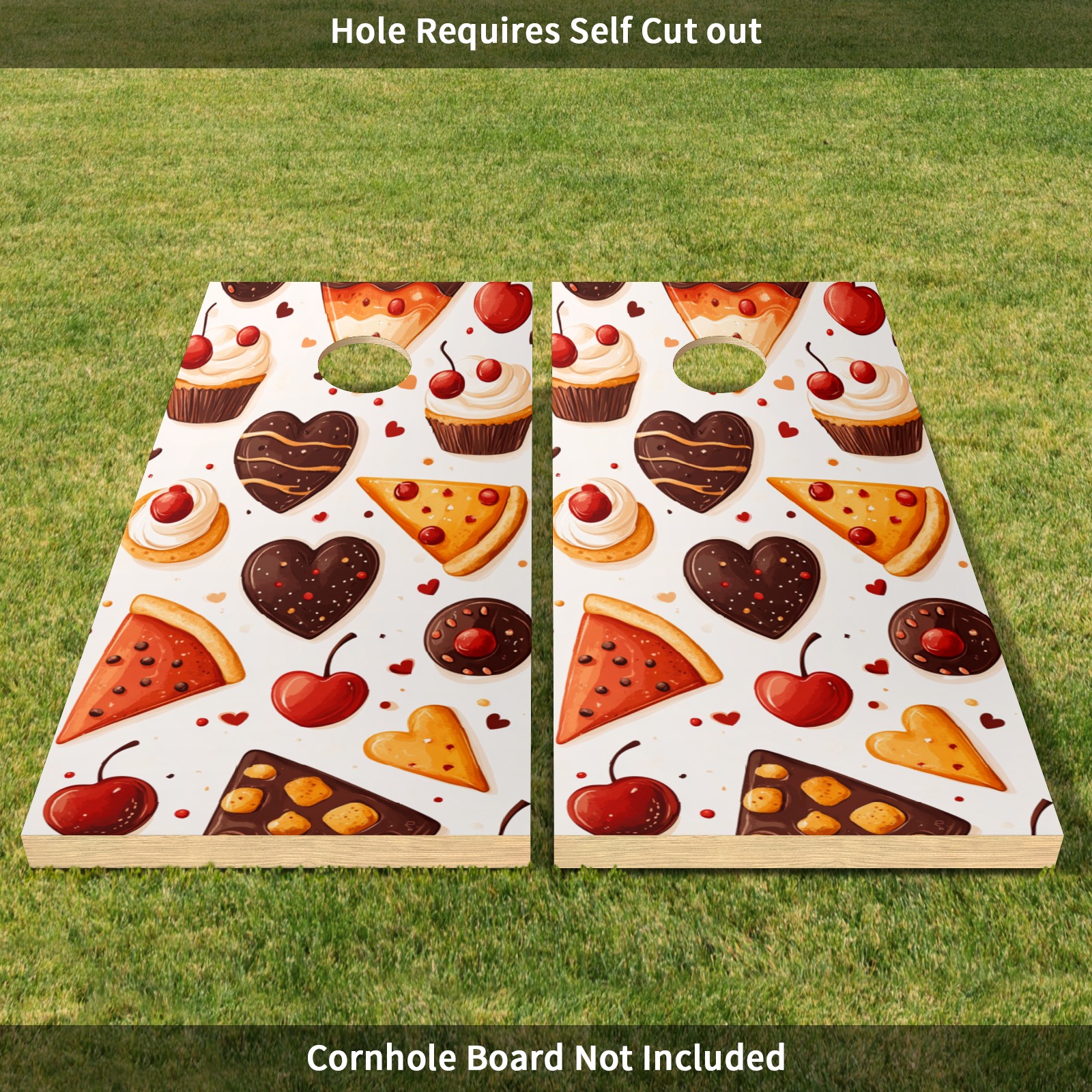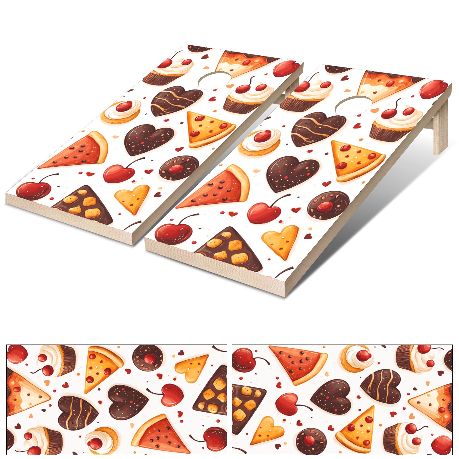Portable 4x2 Ft Cornhole Boards Set with Two-piece Game Sticker(Decals ONLY), Easy to Apply - Corn Hole Games for Adults Outdoor Bean Bag Toss Game Chocolate Dessert Patterns