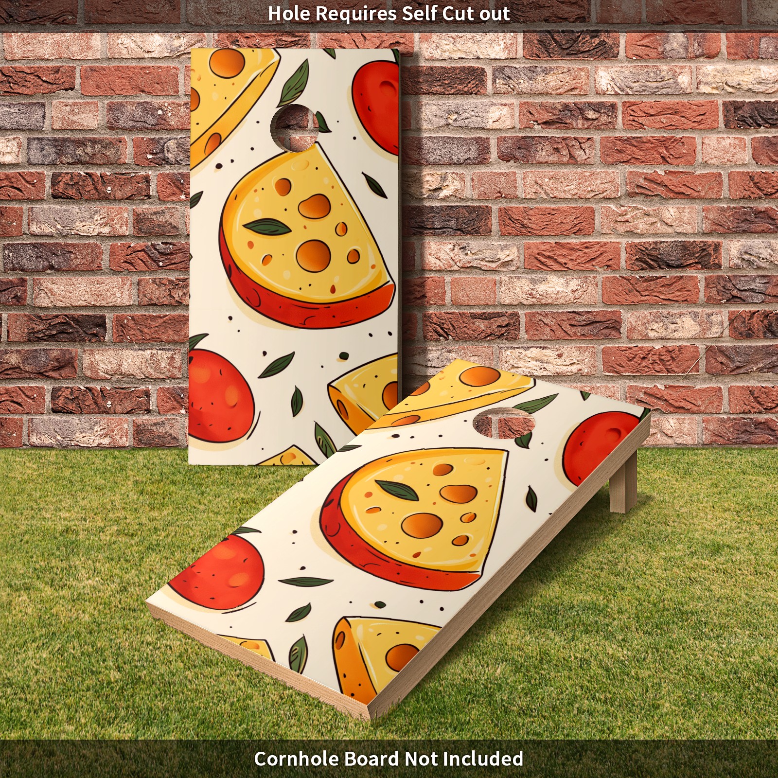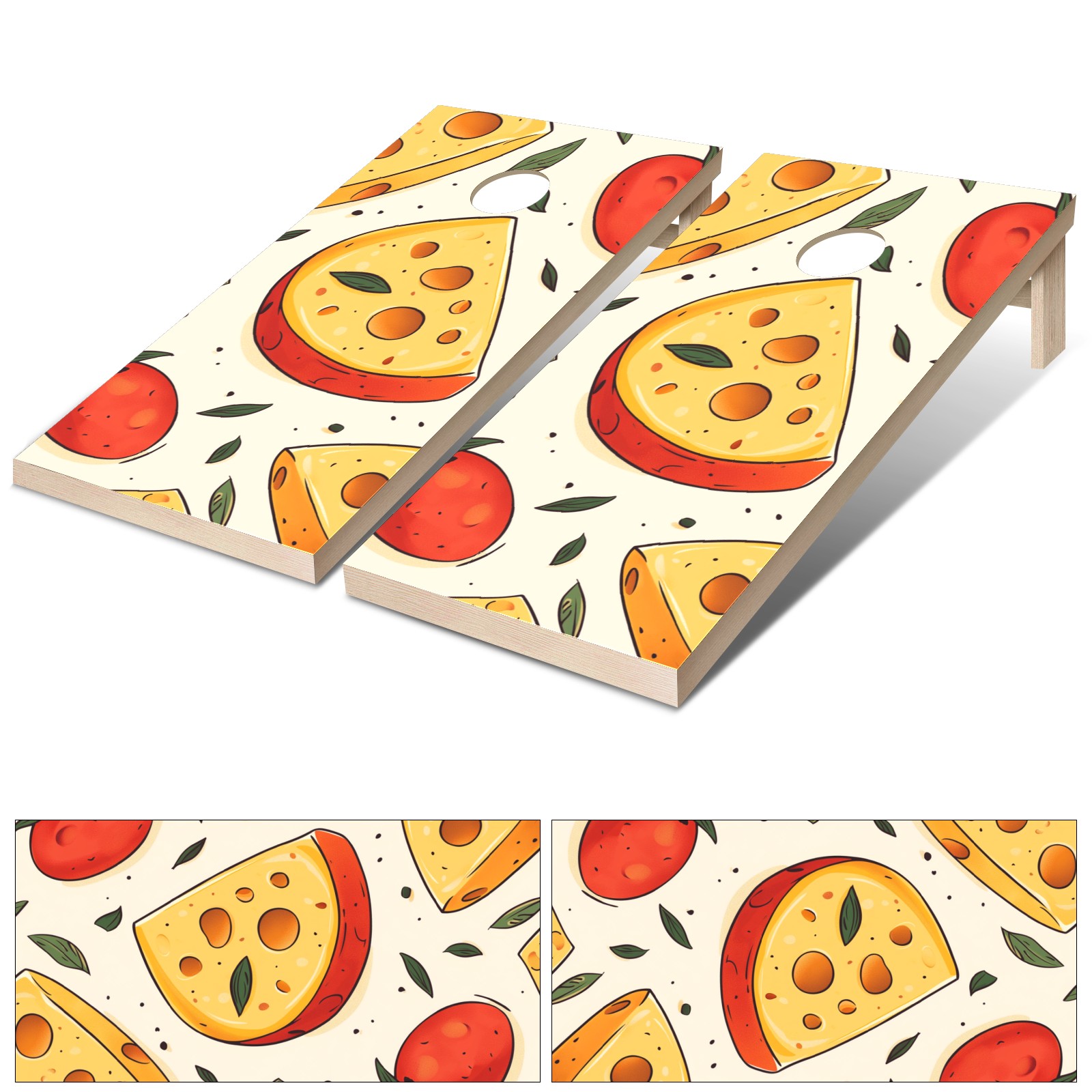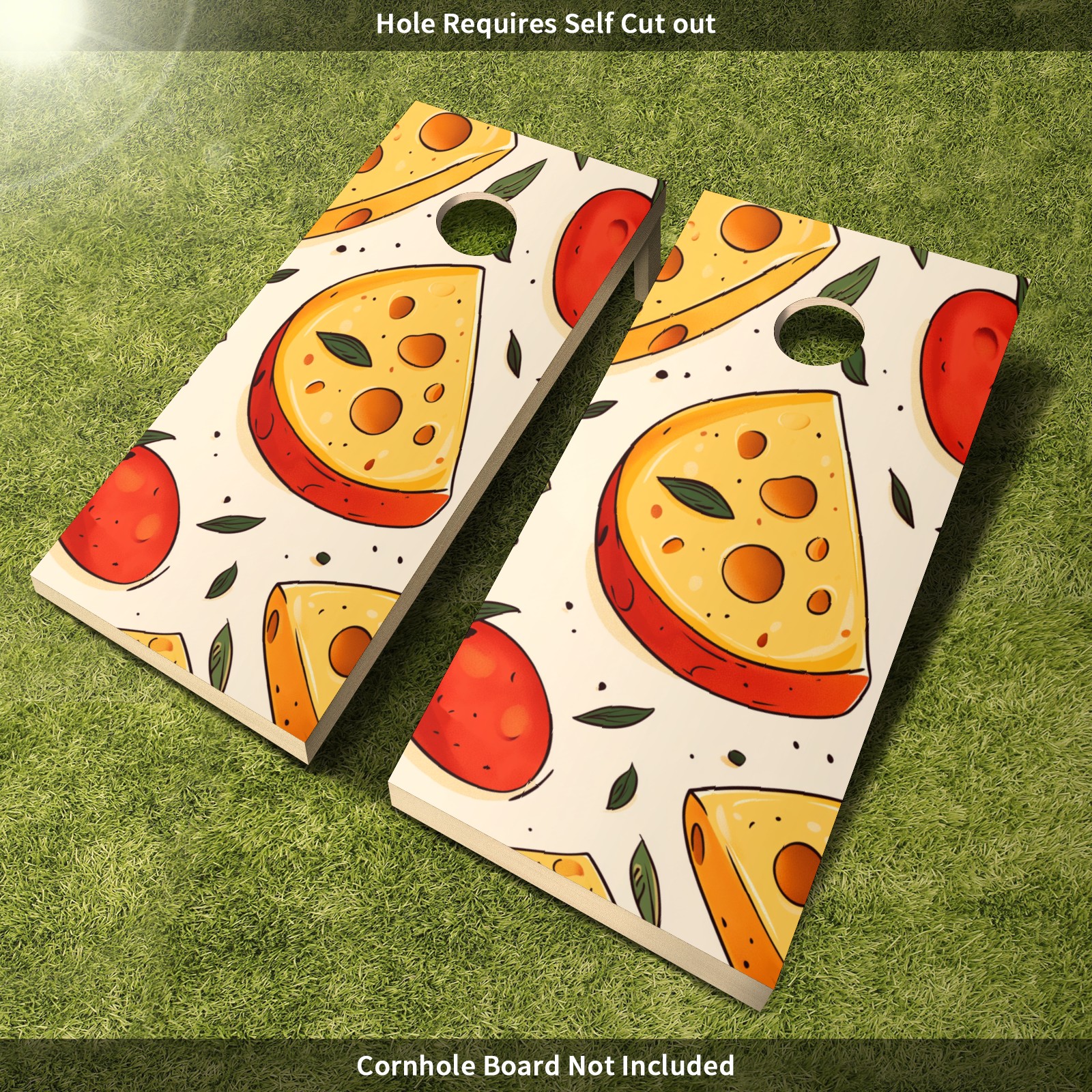 Portable 4x2 Ft Cornhole Boards Set with Two-piece Game Sticker(Decals ONLY), Easy to Apply - Corn Hole Games for Adults Outdoor Bean Bag Toss Game Cheese Slice Pattern