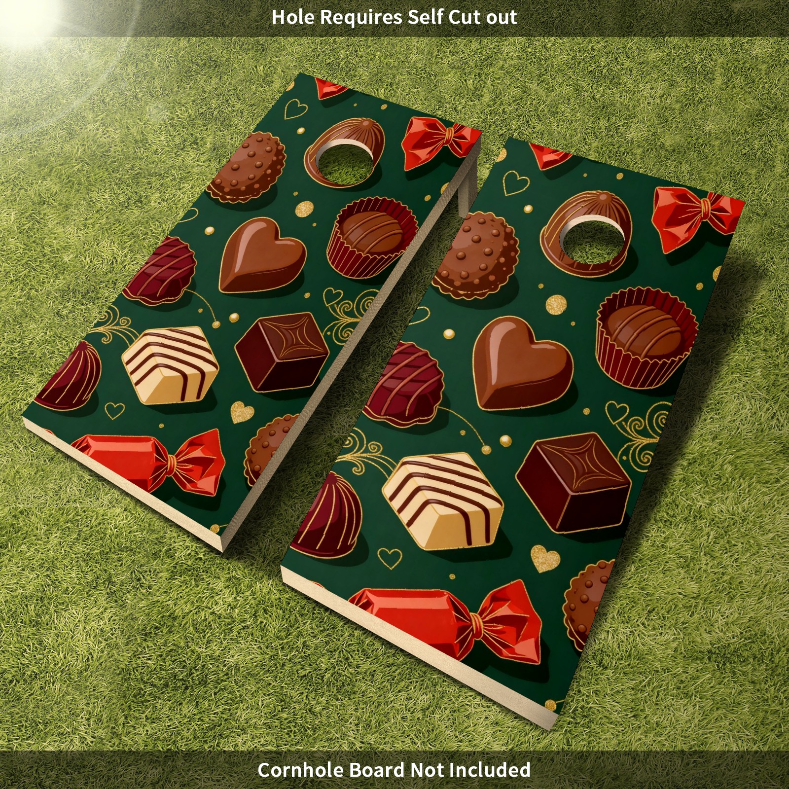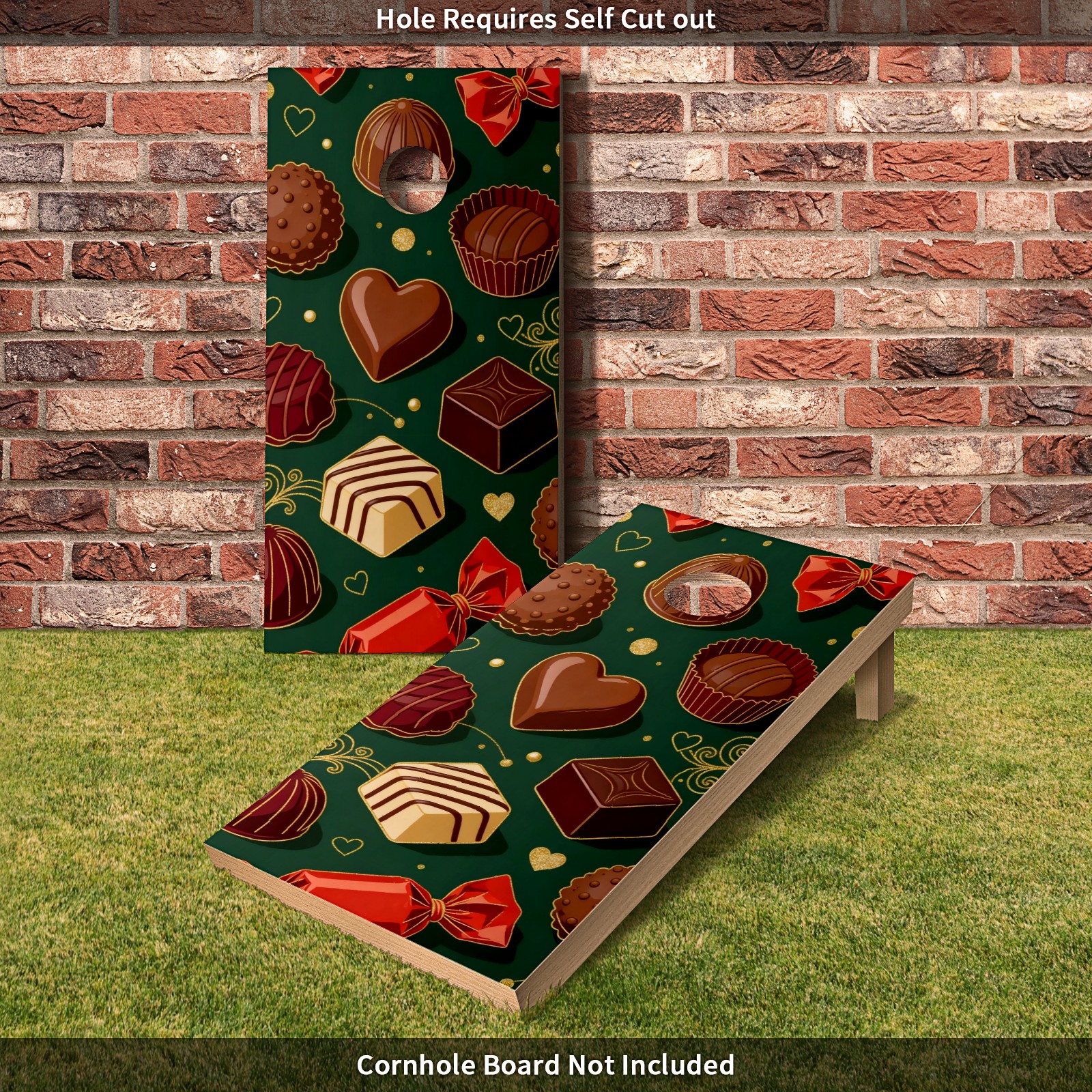 Portable 4x2 Ft Cornhole Boards Set with Two-piece Game Sticker(Decals ONLY), Easy to Apply - Corn Hole Games for Adults Outdoor Bean Bag Toss Game Delicious Chocolate Pattern