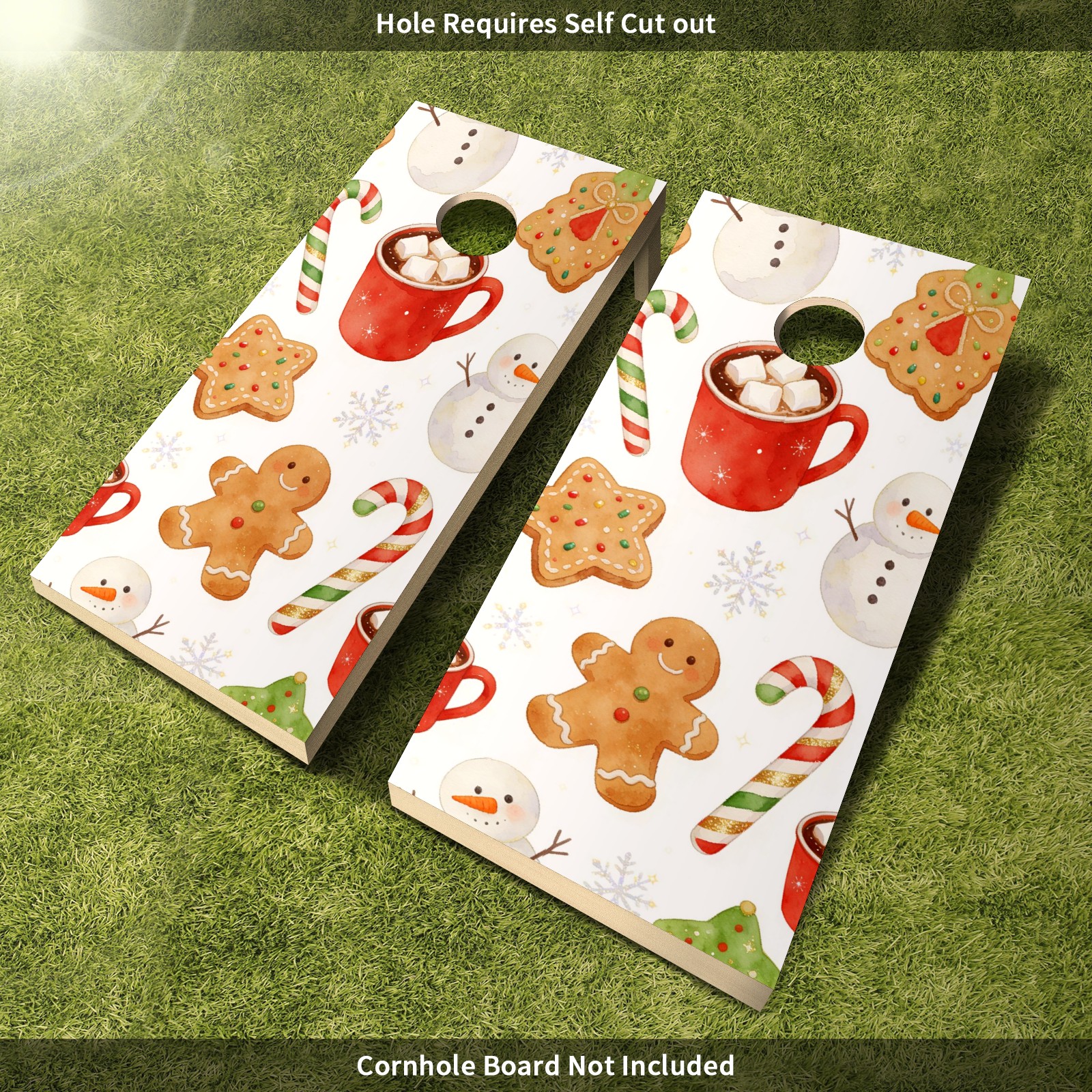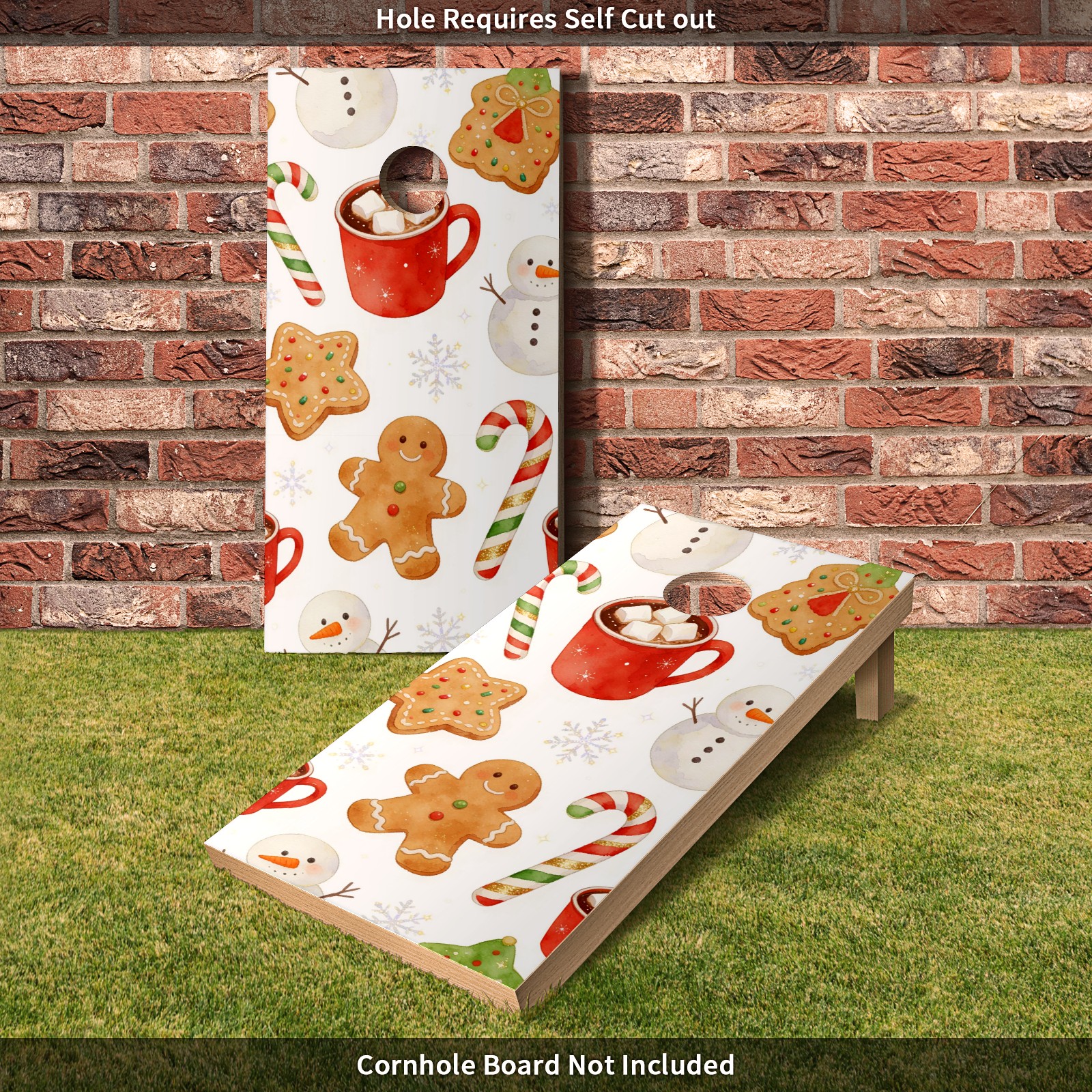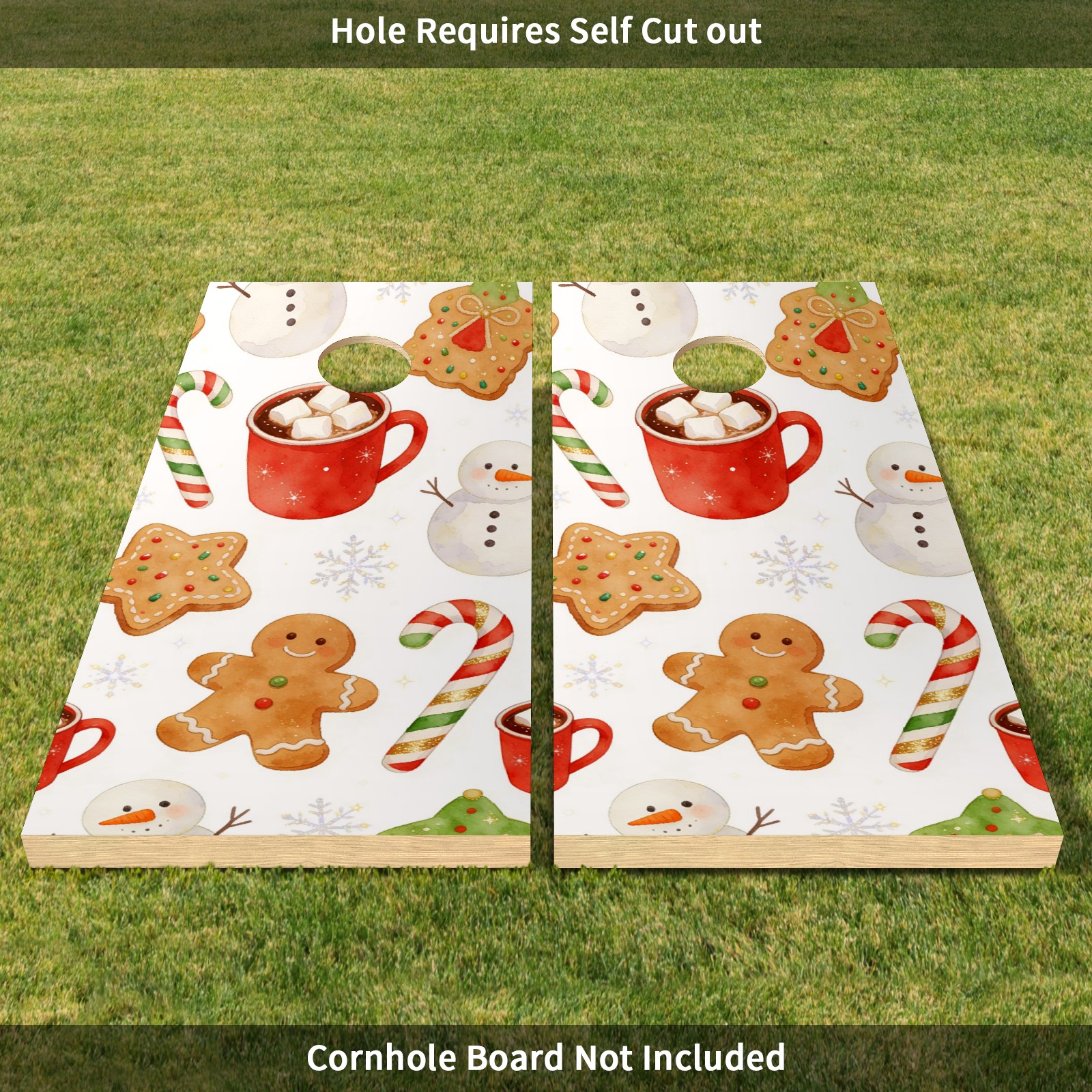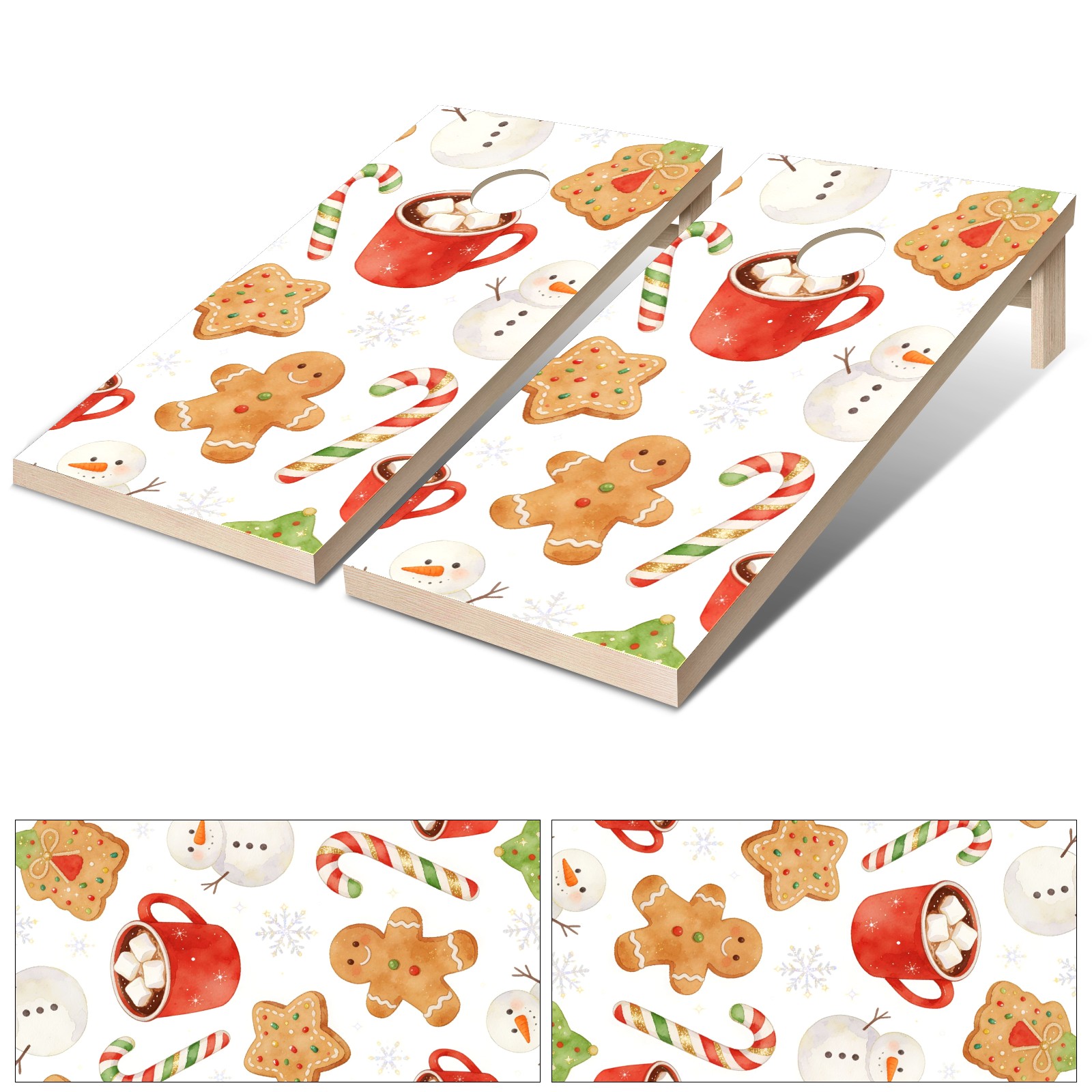 Portable 4x2 Ft Cornhole Boards Set with Two-piece Game Sticker(Decals ONLY), Easy to Apply - Corn Hole Games for Adults Outdoor Bean Bag Toss Game Christmas Cookie Patterns