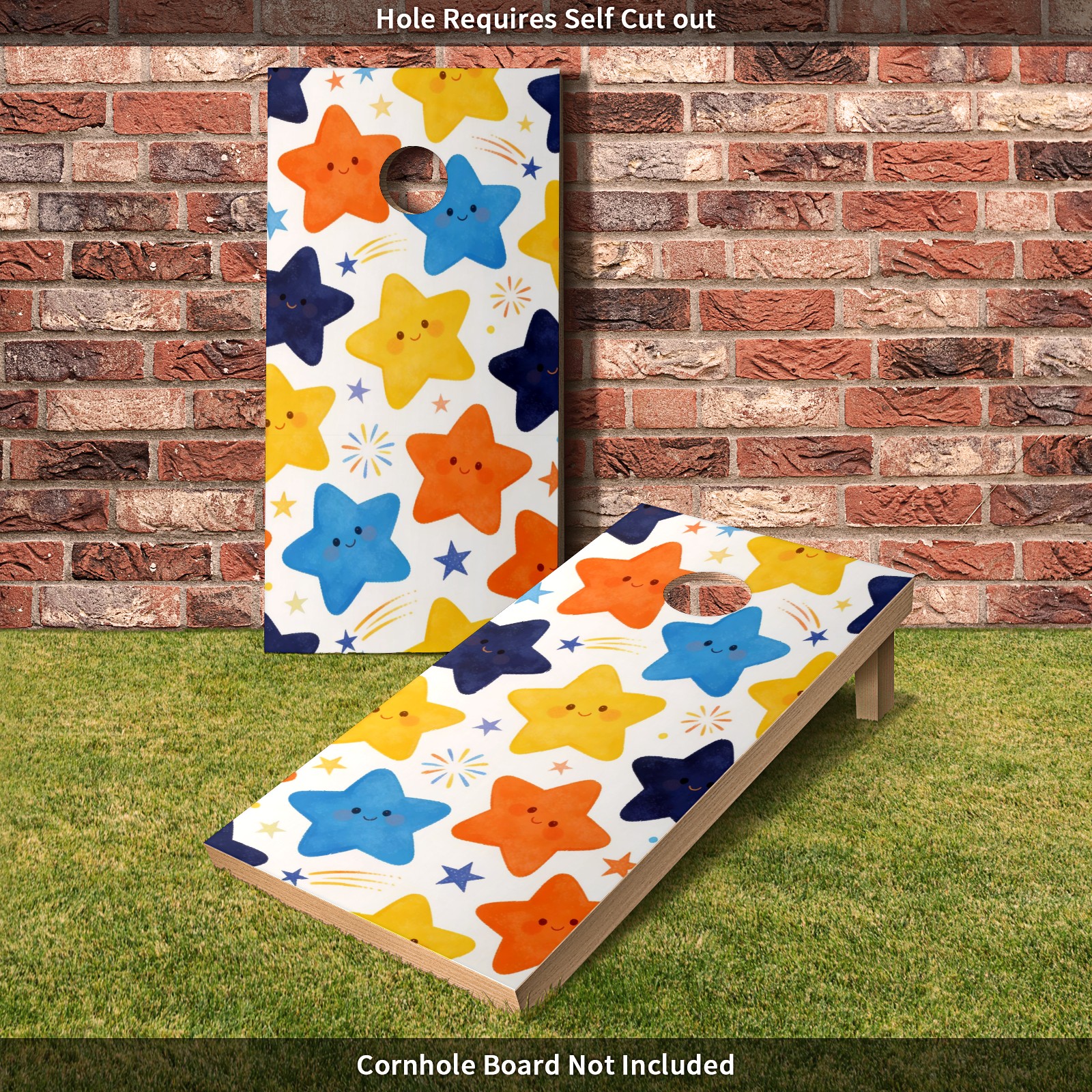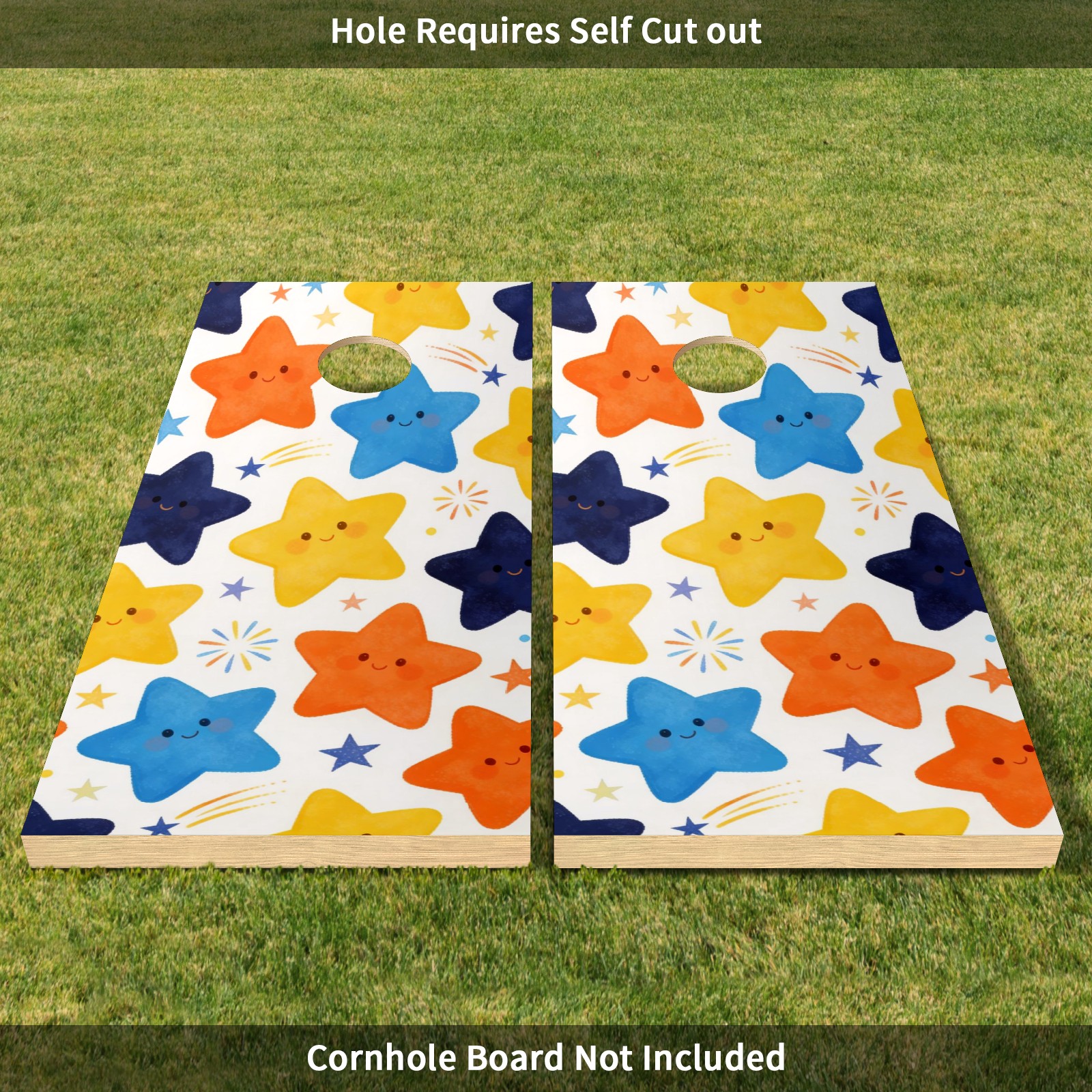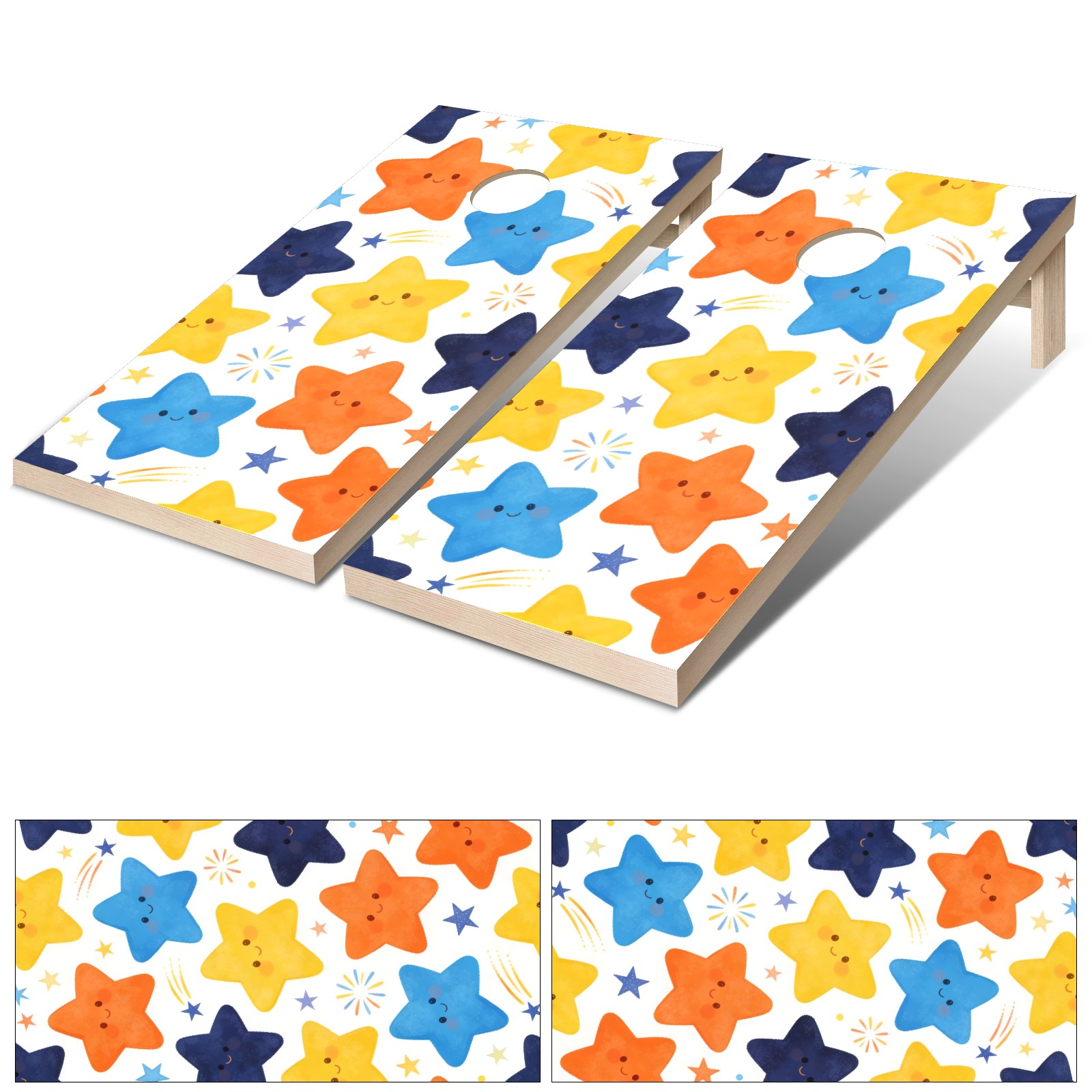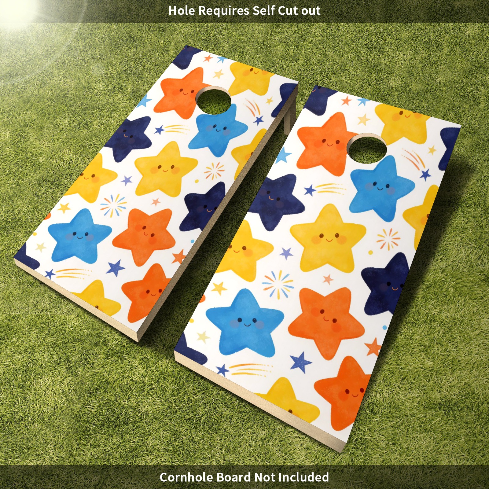 Portable 4x2 Ft Cornhole Boards Set with Two-piece Game Sticker(Decals ONLY), Easy to Apply - Corn Hole Games for Adults Outdoor Bean Bag Toss Game Colorful Star Pattern