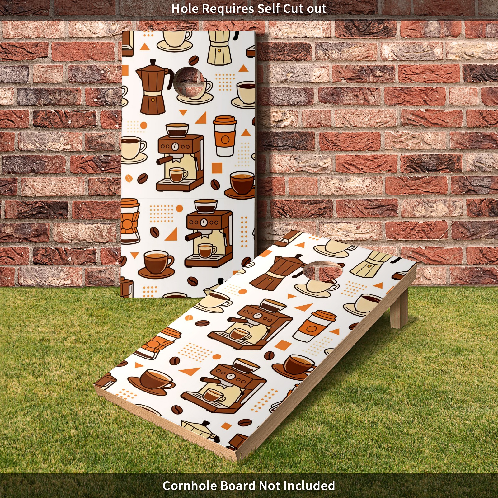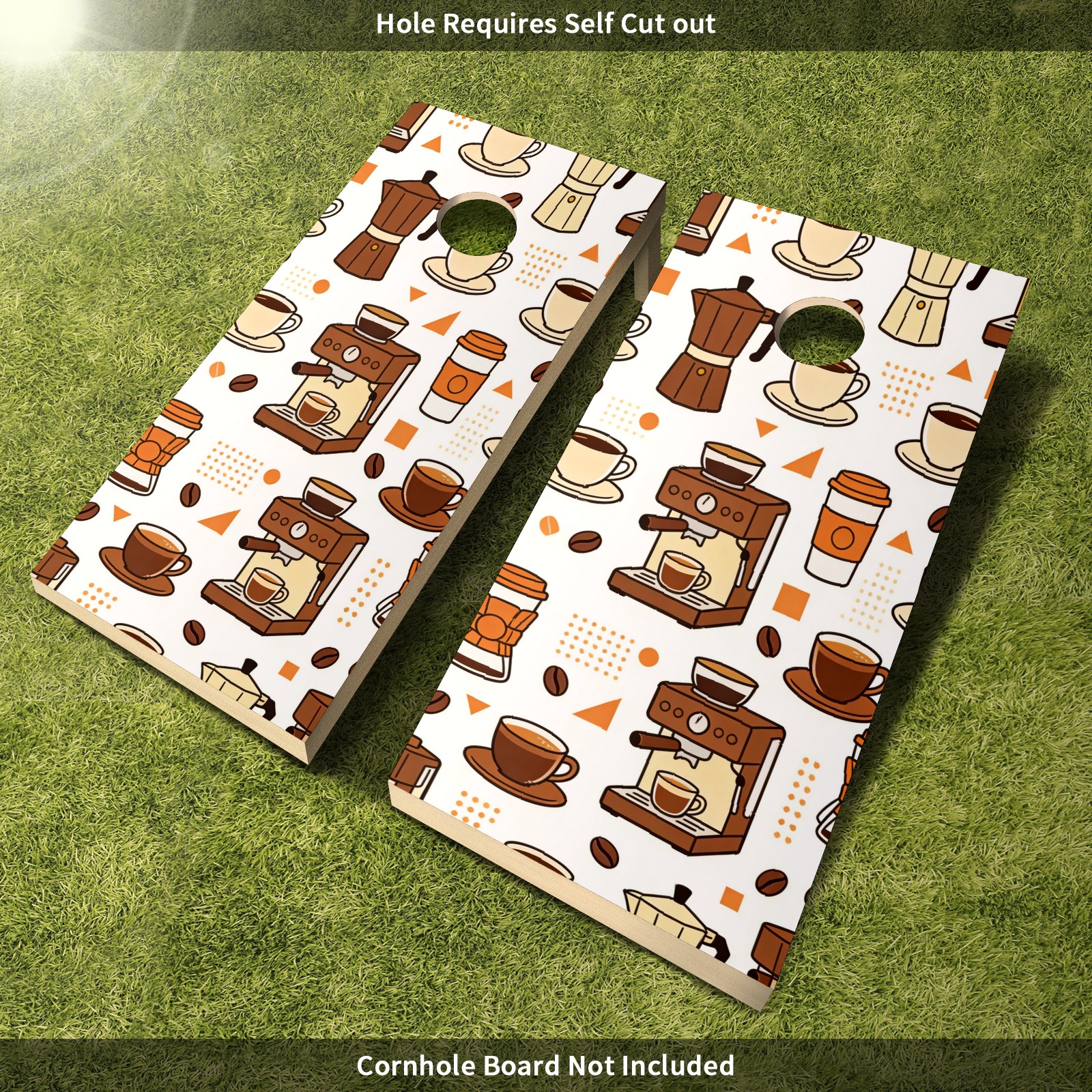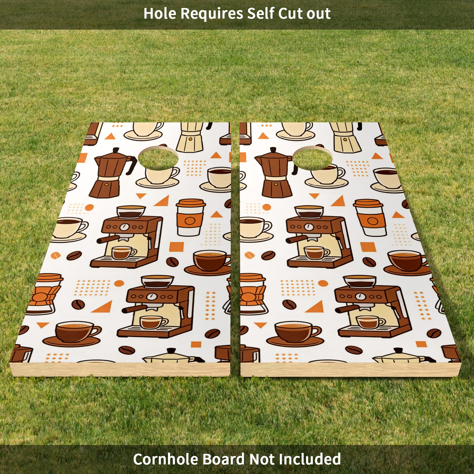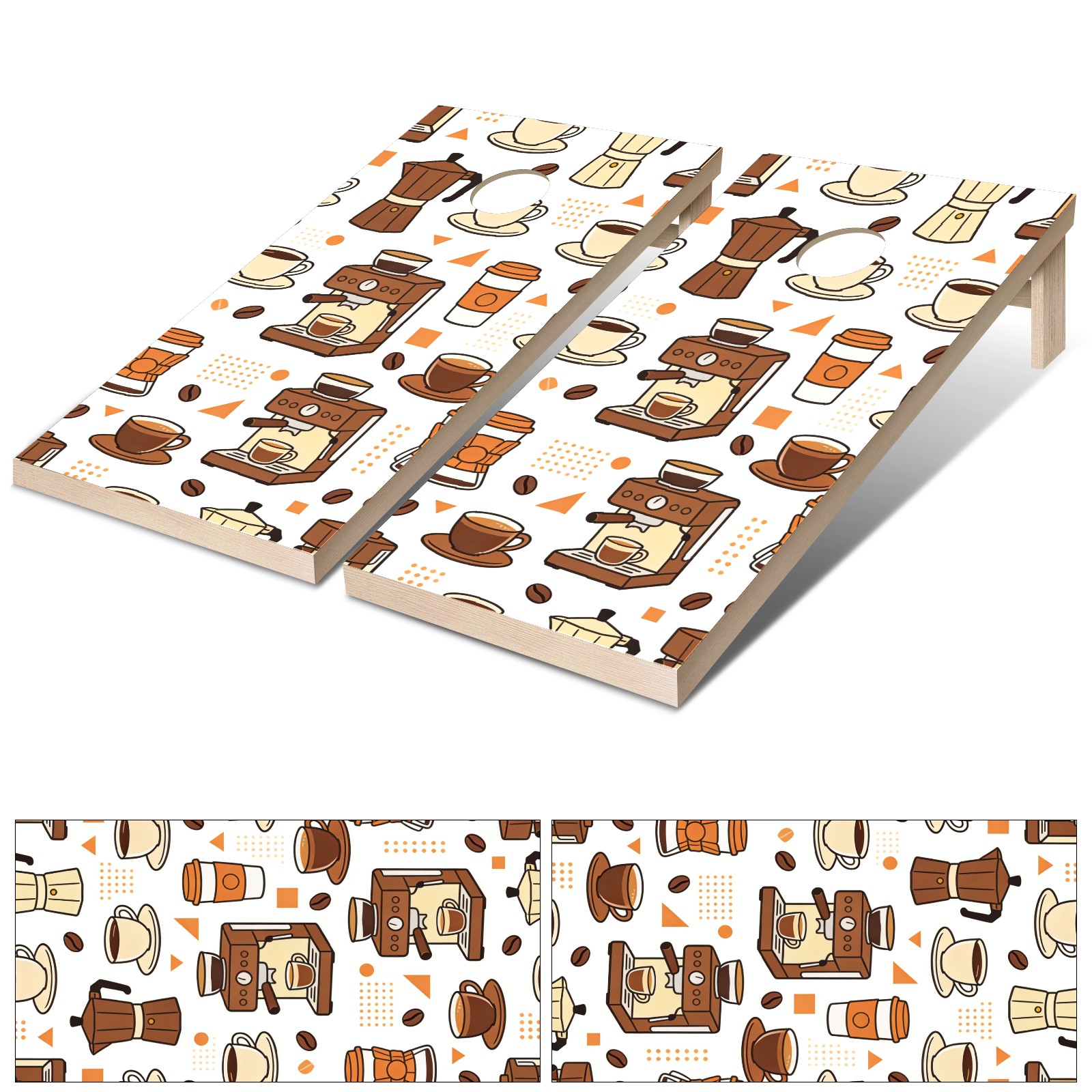 Portable 4x2 Ft Cornhole Boards Set with Two-piece Game Sticker(Decals ONLY), Easy to Apply - Corn Hole Games for Adults Outdoor Bean Bag Toss Game Coffee Machine Pattern
