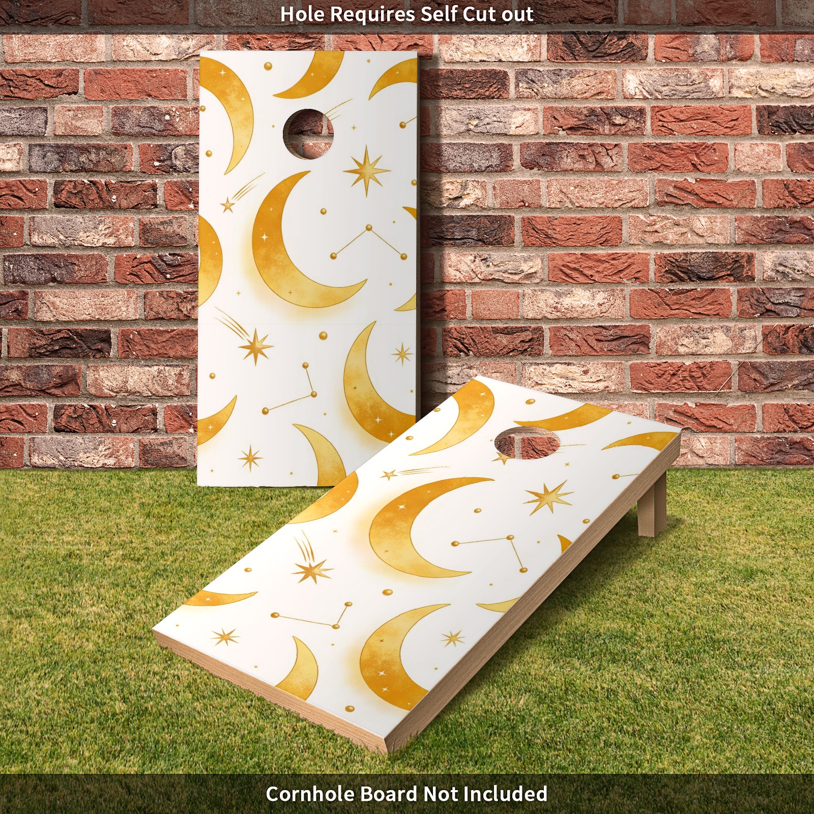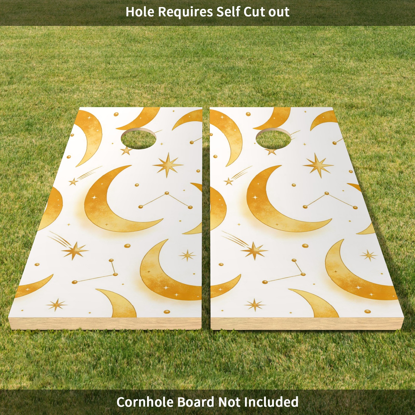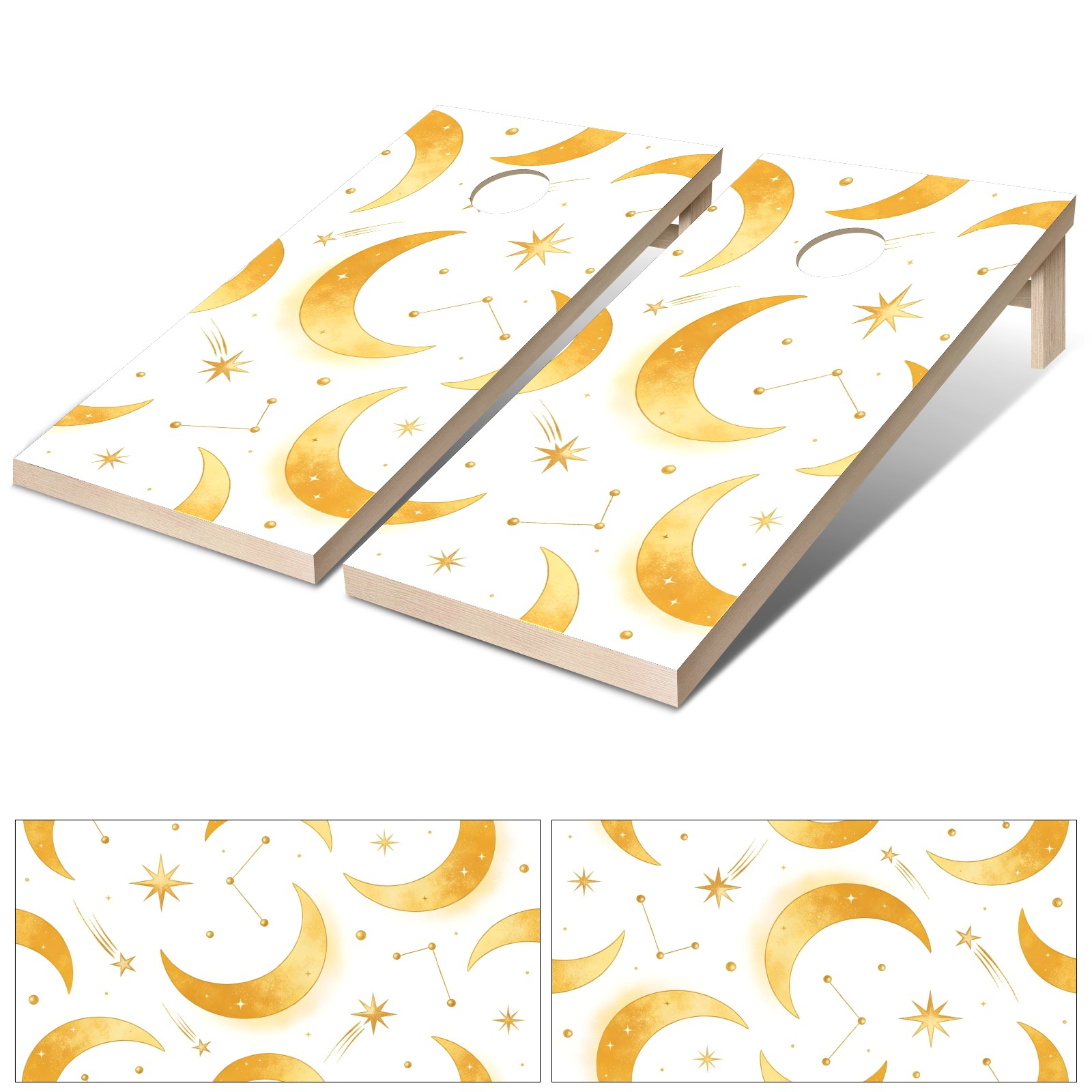 Portable 4x2 Ft Cornhole Boards Set with Two-piece Game Sticker(Decals ONLY), Easy to Apply - Corn Hole Games for Adults Outdoor Bean Bag Toss Game Yellow Star Moon Pattern