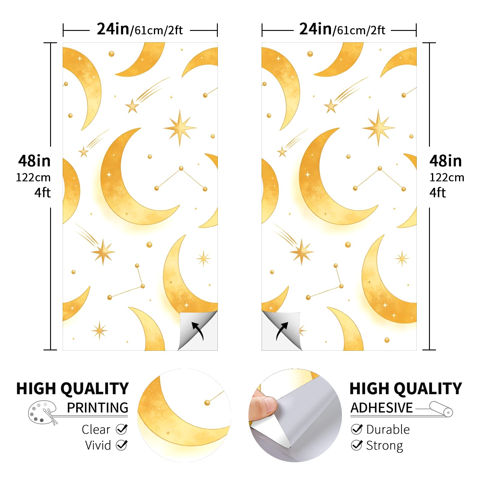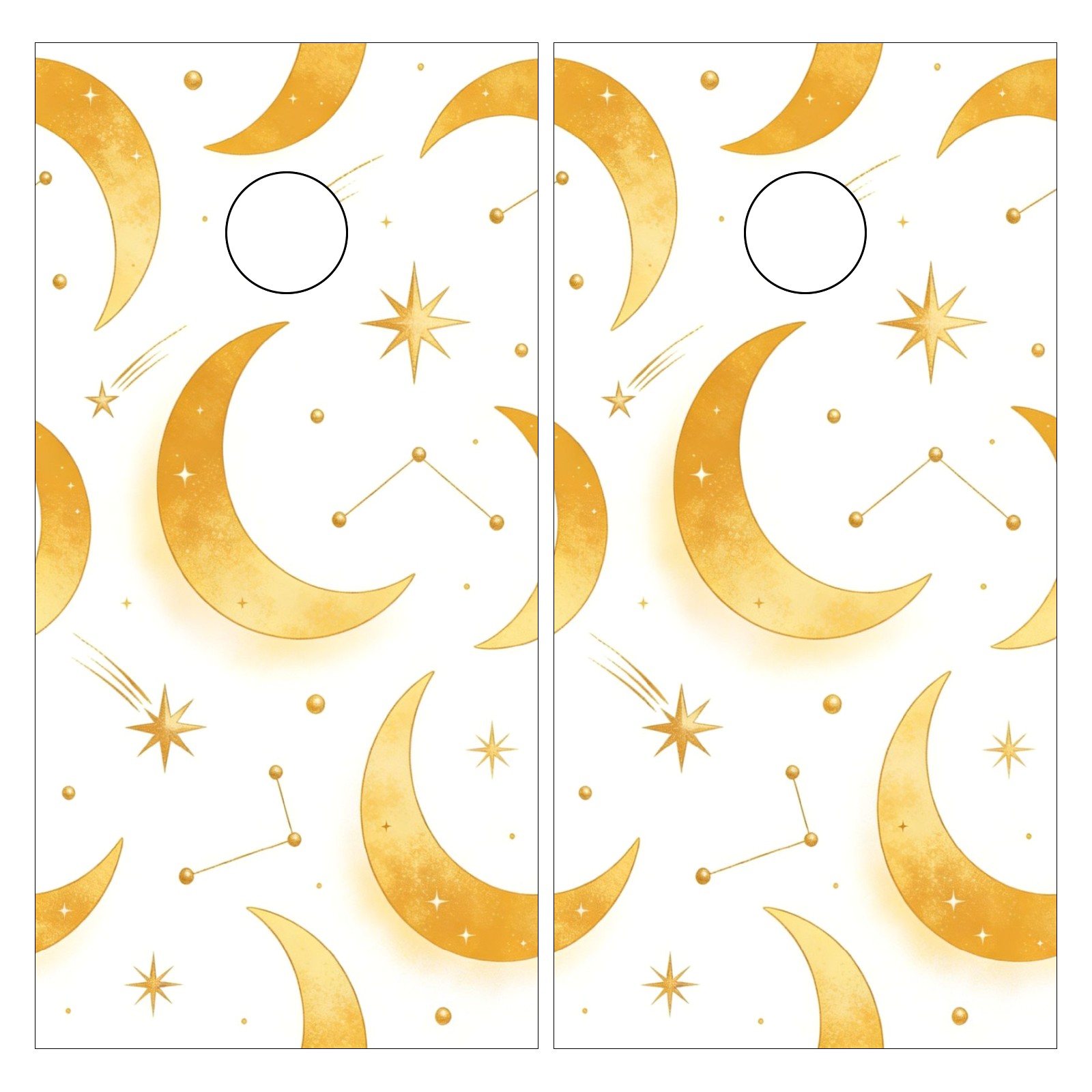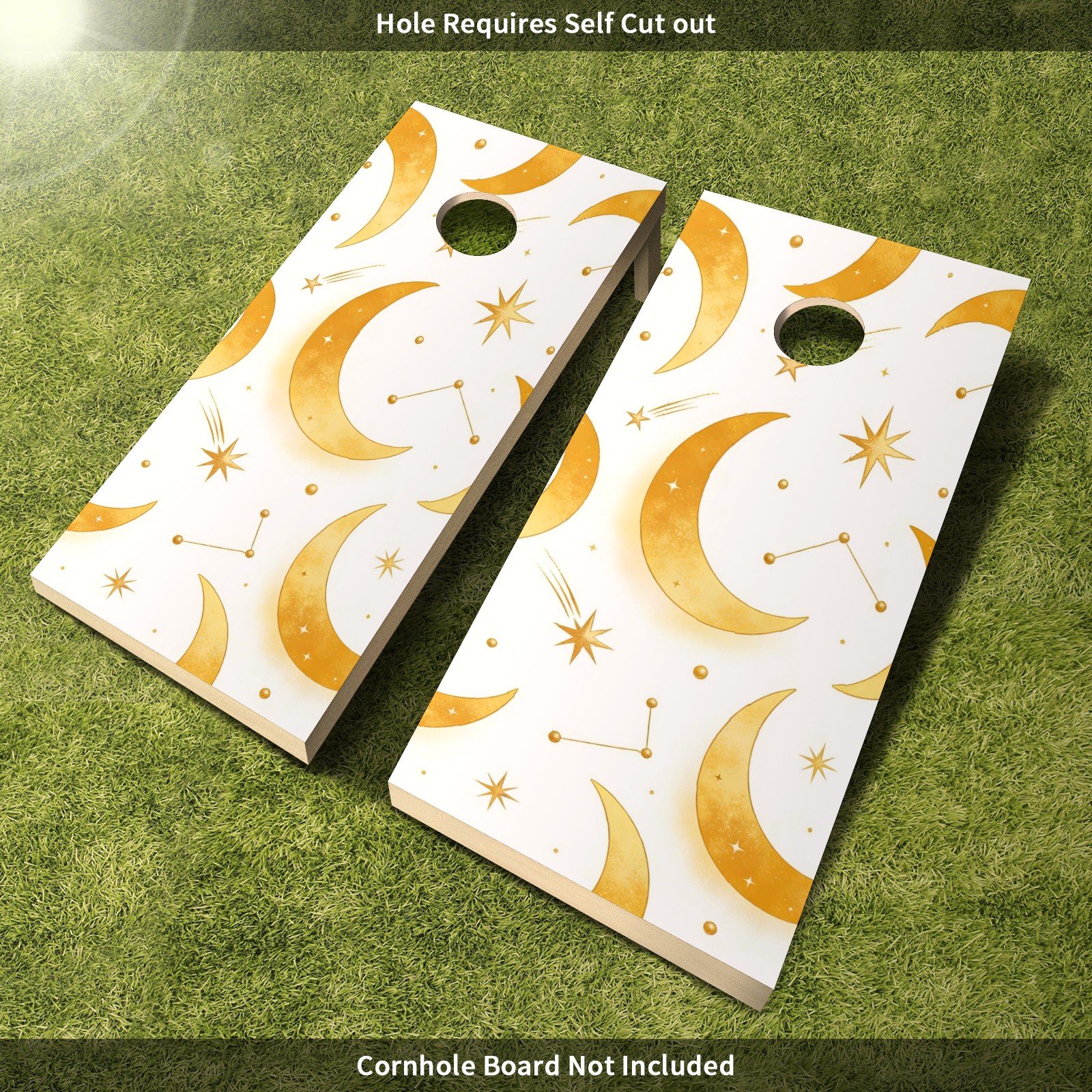 Portable 4x2 Ft Cornhole Boards Set with Two-piece Game Sticker(Decals ONLY), Easy to Apply - Corn Hole Games for Adults Outdoor Bean Bag Toss Game Yellow Star Moon Pattern