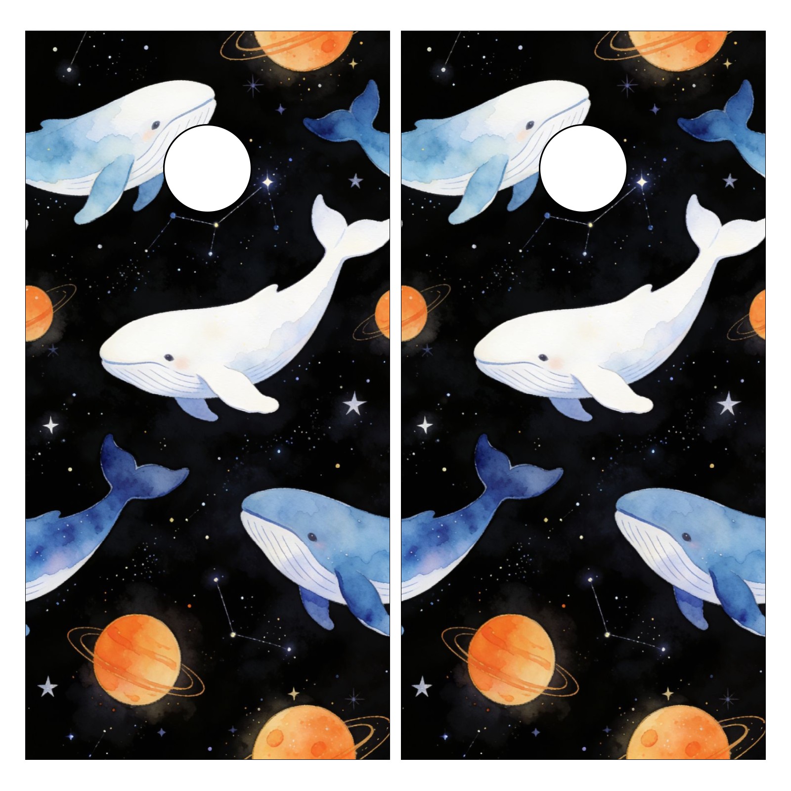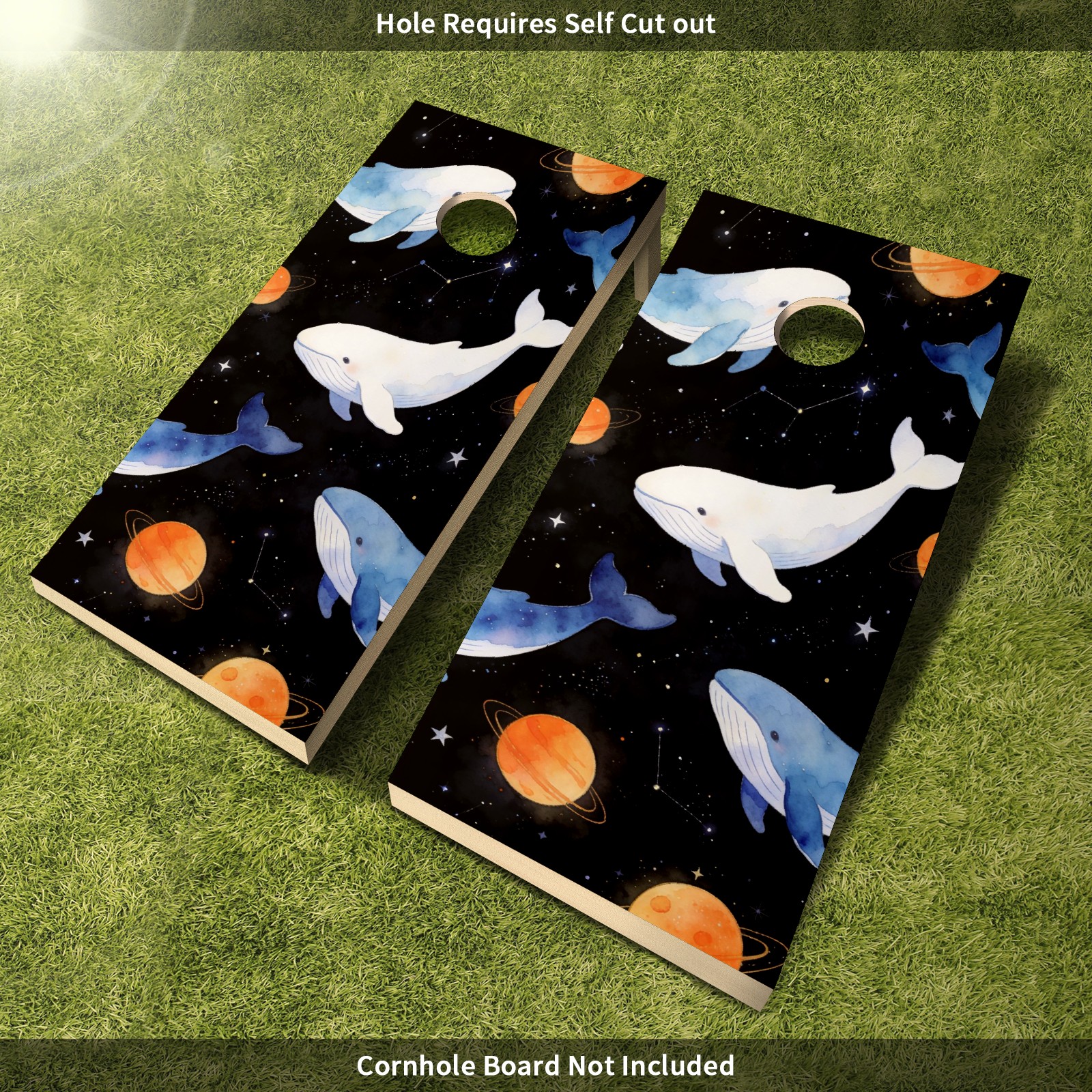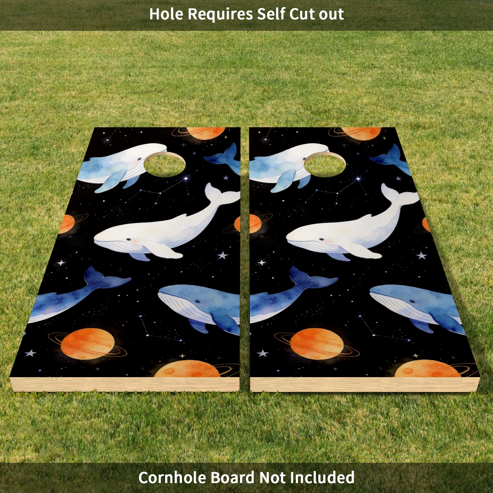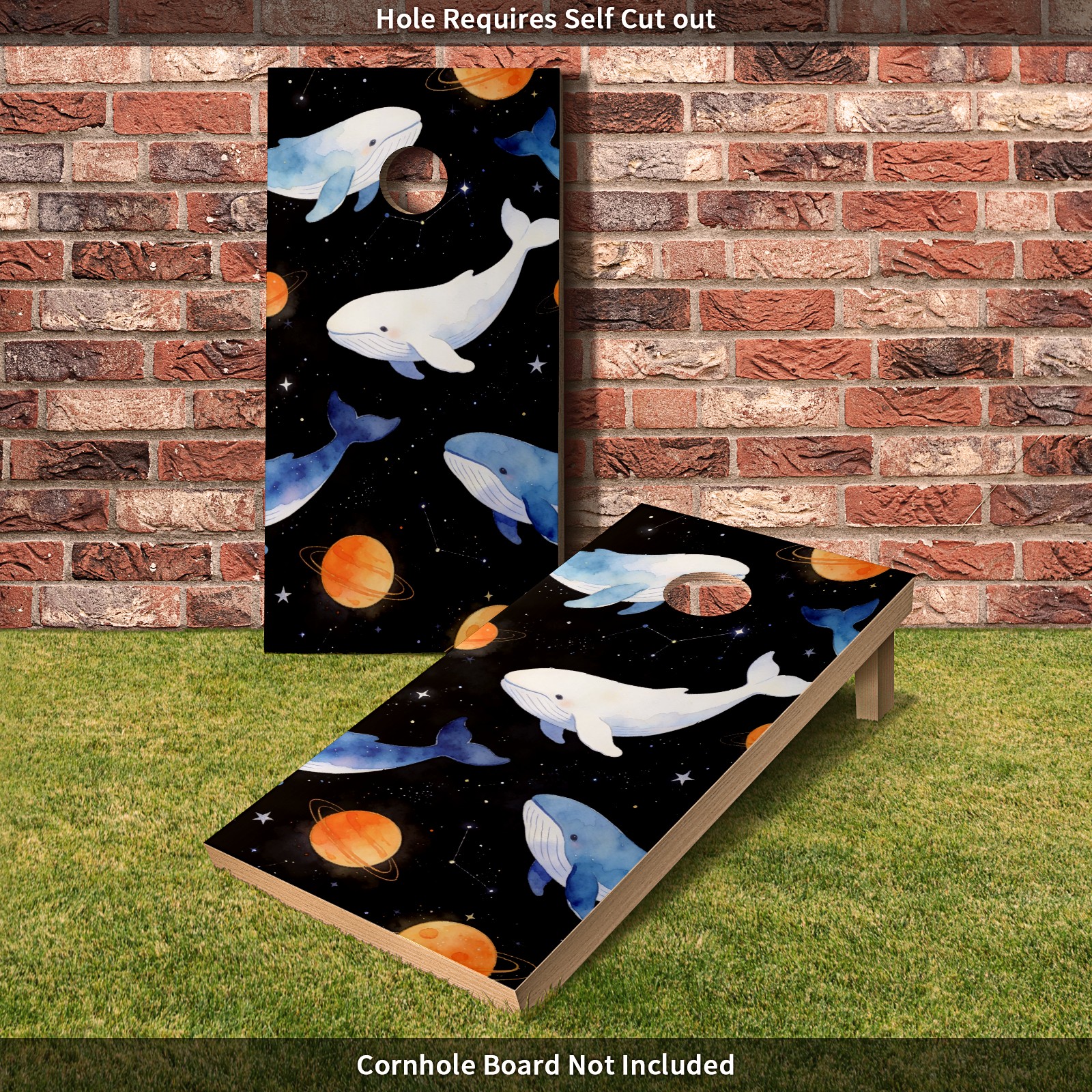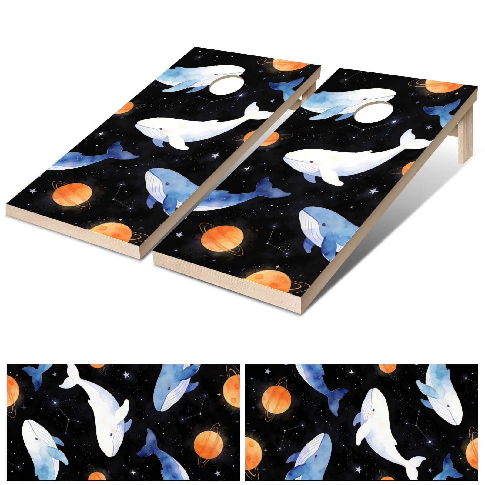 Portable 4x2 Ft Cornhole Boards Set with Two-piece Game Sticker(Decals ONLY), Easy to Apply - Corn Hole Games for Adults Outdoor Bean Bag Toss Game Starry Sky Whale Pattern