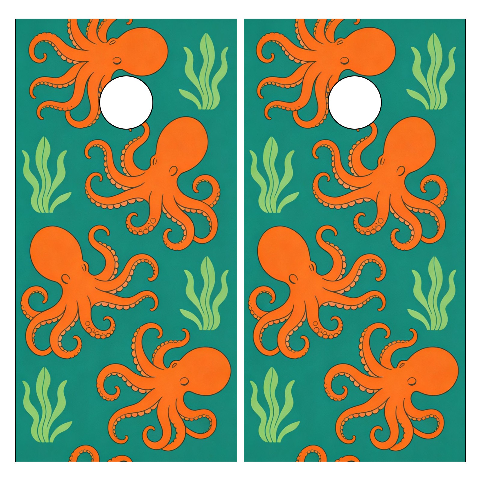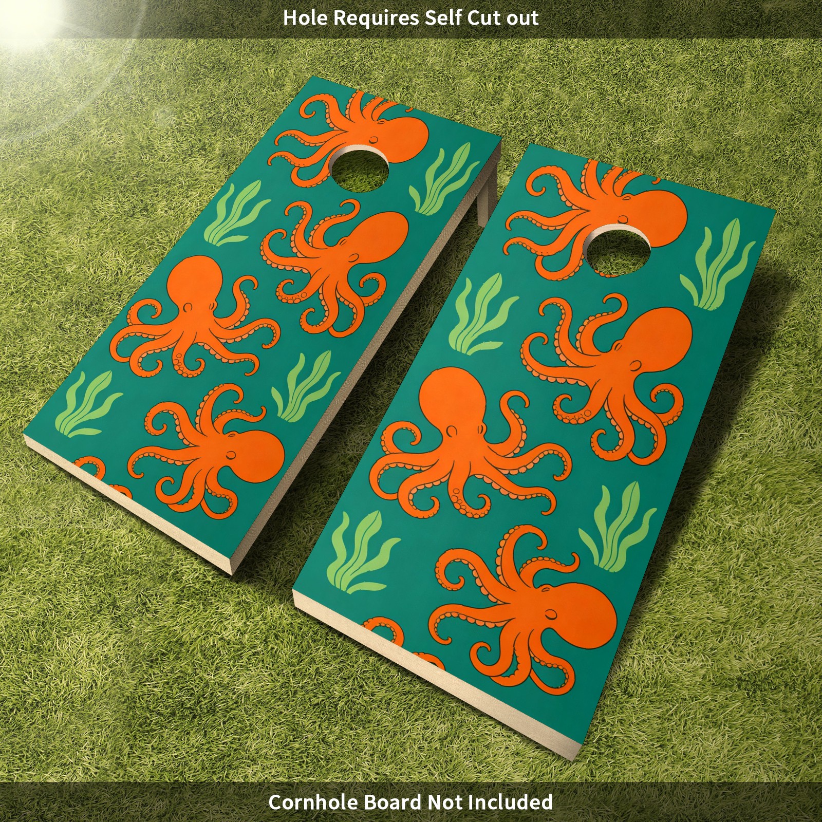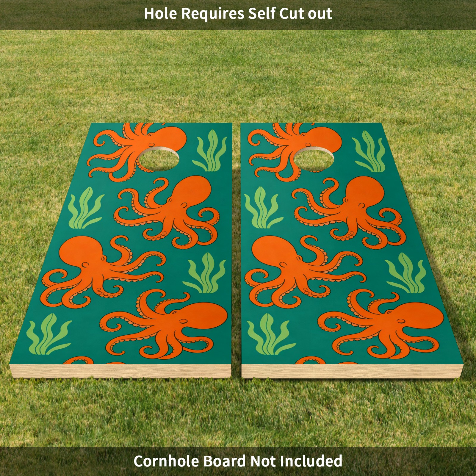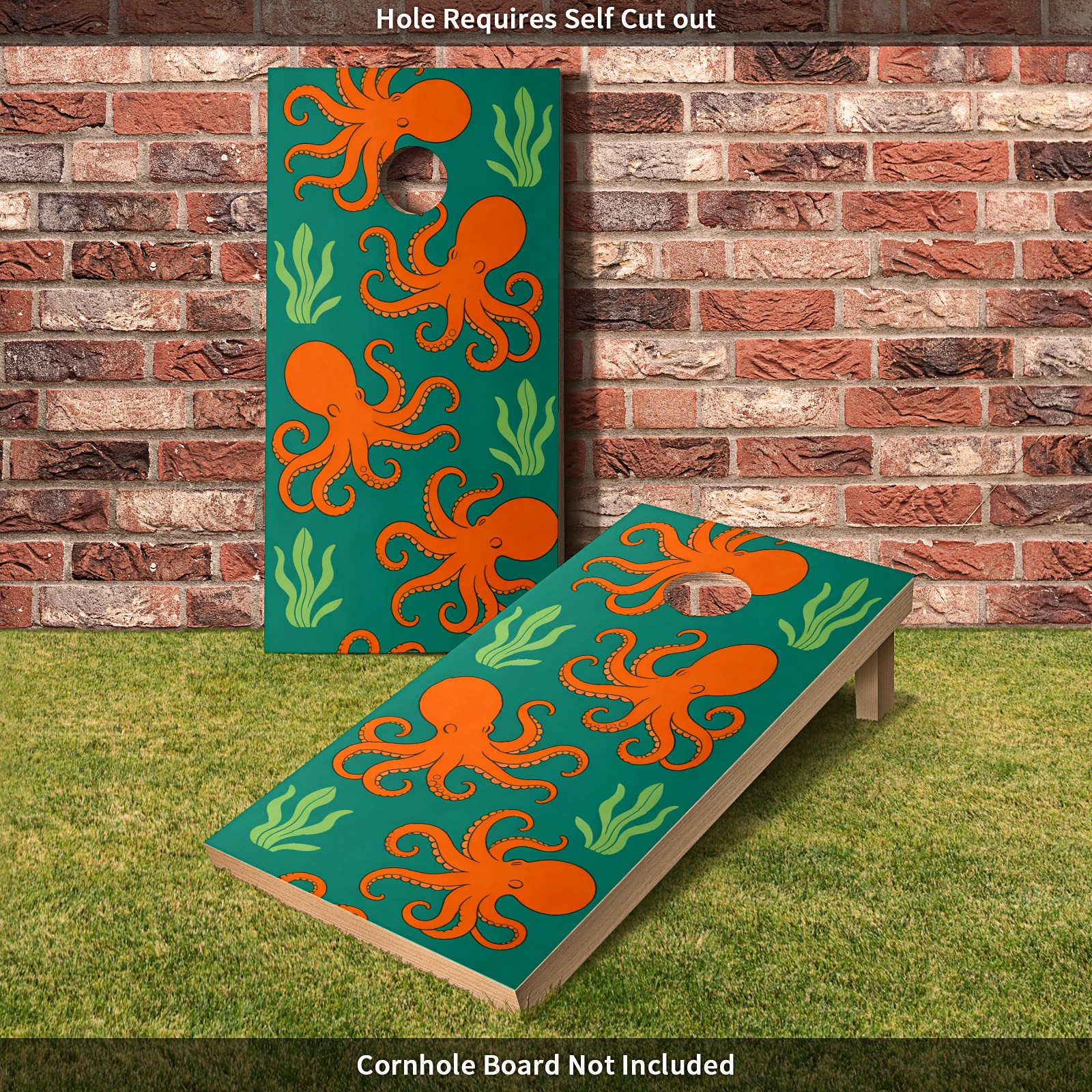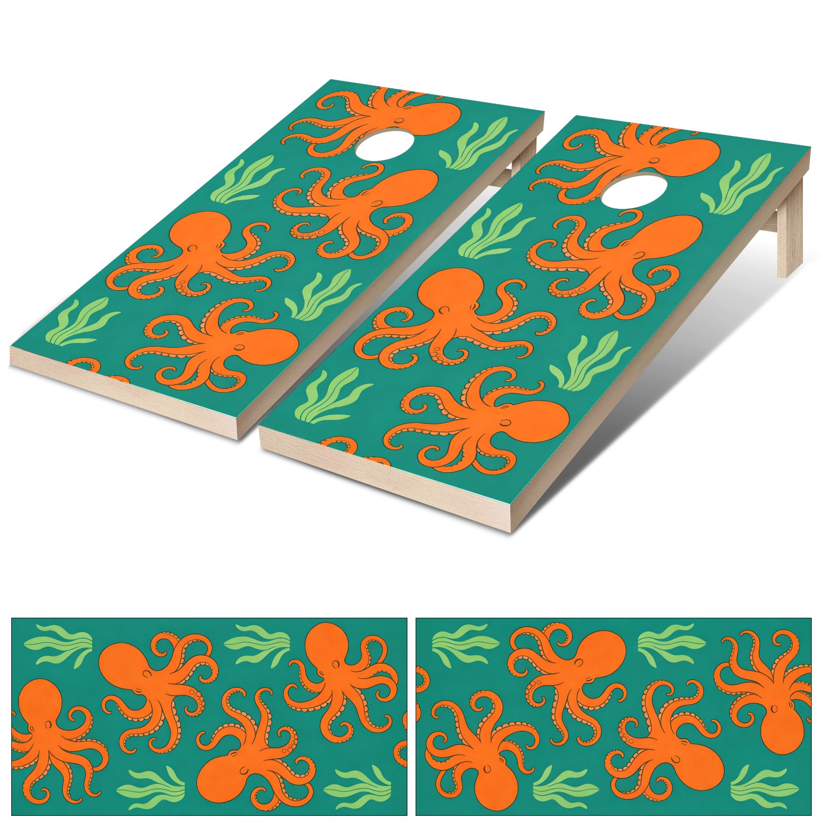 Portable 4x2 Ft Cornhole Boards Set with Two-piece Game Sticker(Decals ONLY), Easy to Apply - Corn Hole Games for Adults Outdoor Bean Bag Toss Game Orange Octopus Pattern
