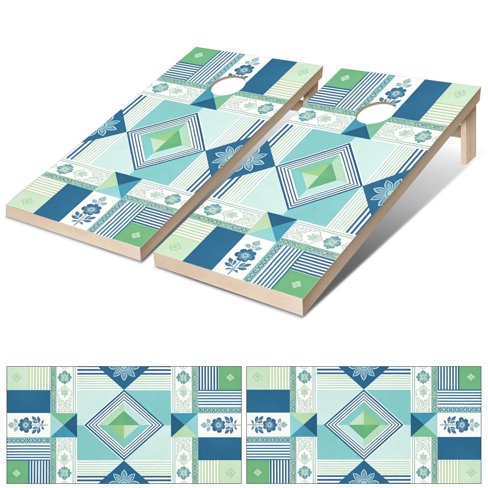 Portable 4x2 Ft Cornhole Boards Set with Two-piece Game Sticker(Decals ONLY), Easy to Apply - Corn Hole Games for Adults Outdoor Bean Bag Toss Game Blue Plaid Pattern