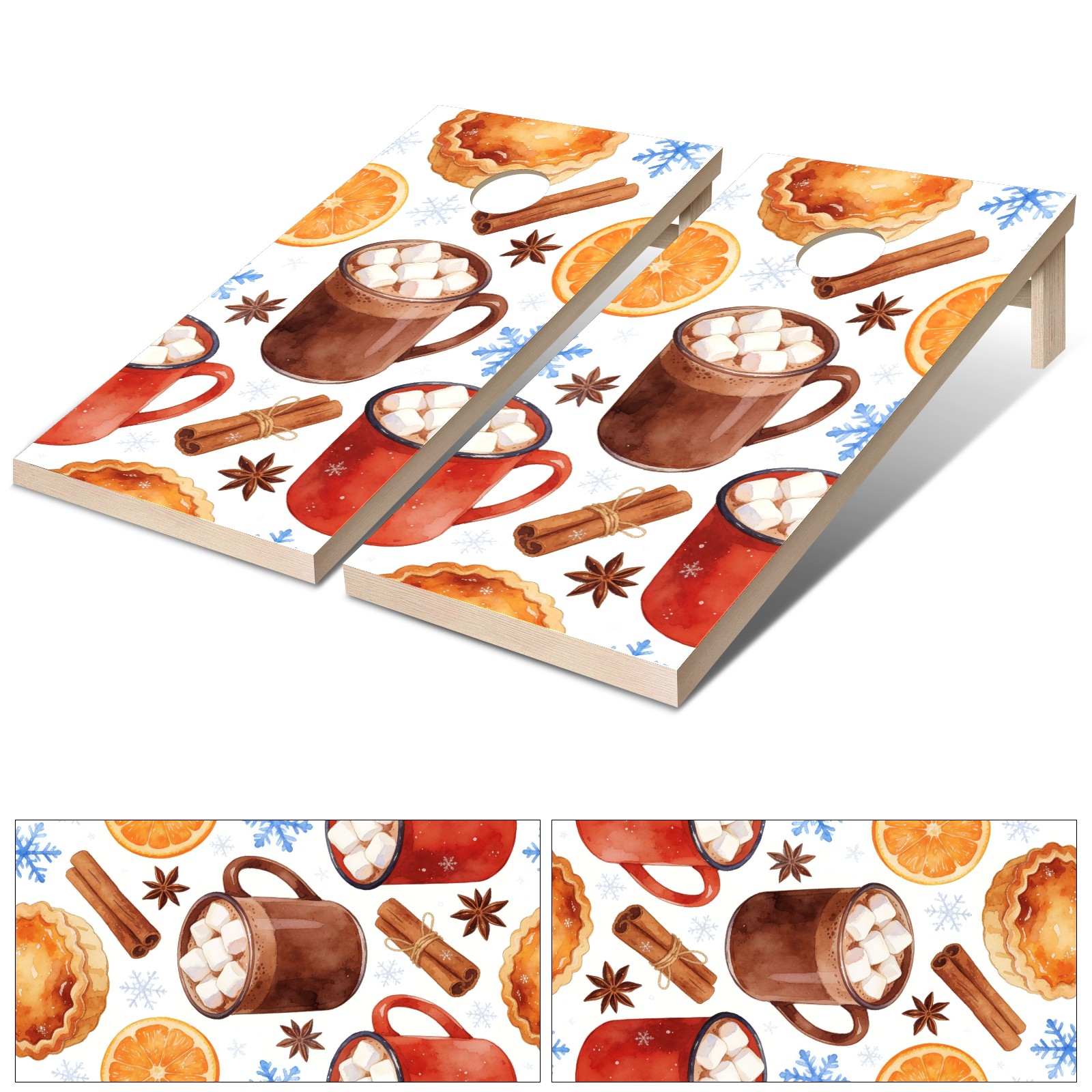 Portable 4x2 Ft Cornhole Boards Set with Two-piece Game Sticker(Decals ONLY), Easy to Apply - Corn Hole Games for Adults Outdoor Bean Bag Toss Game Coffee Dessert Pattern