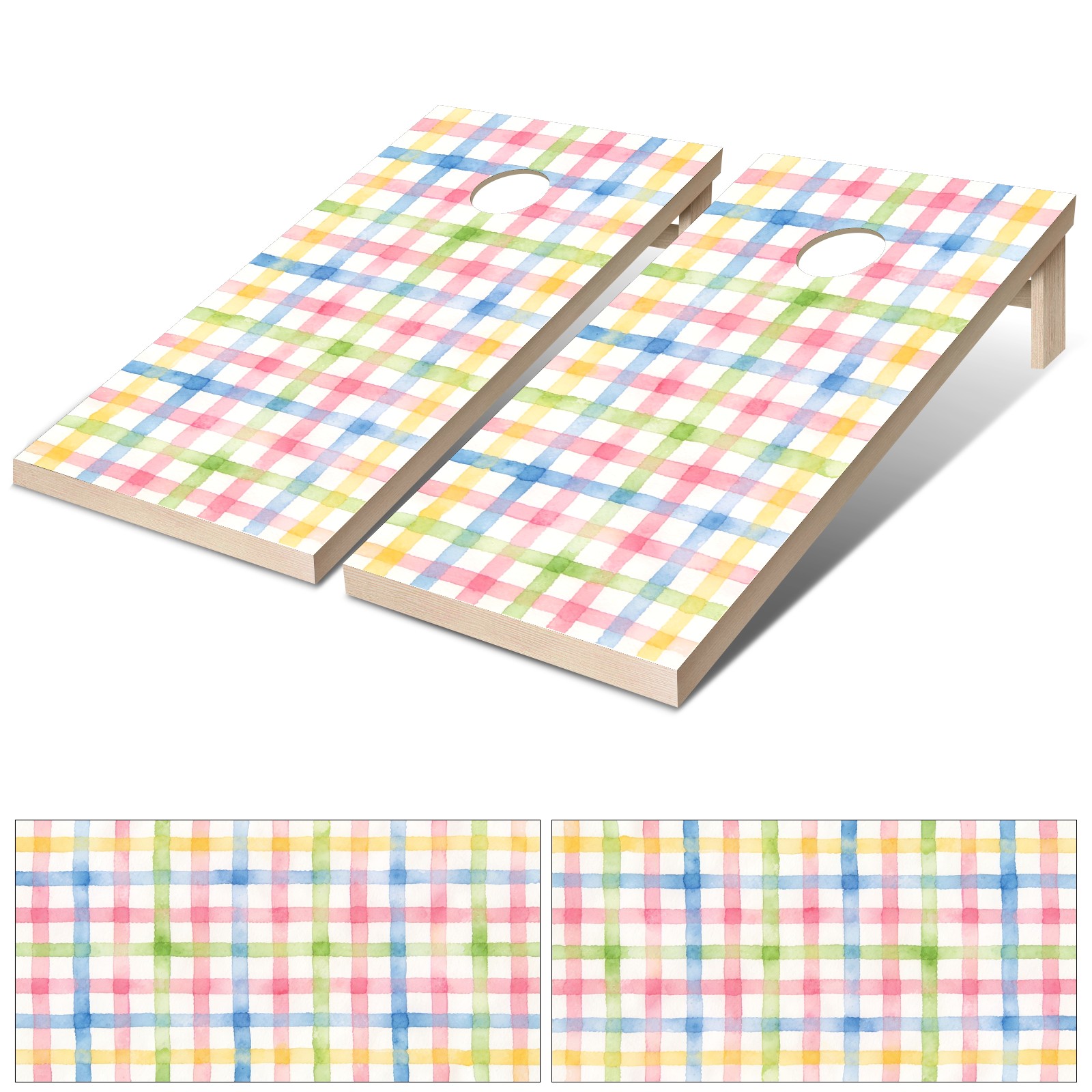Portable 4x2 Ft Cornhole Boards Set with Two-piece Game Sticker(Decals ONLY), Easy to Apply - Corn Hole Games for Adults Outdoor Bean Bag Toss Game Colorful Strip Pattern