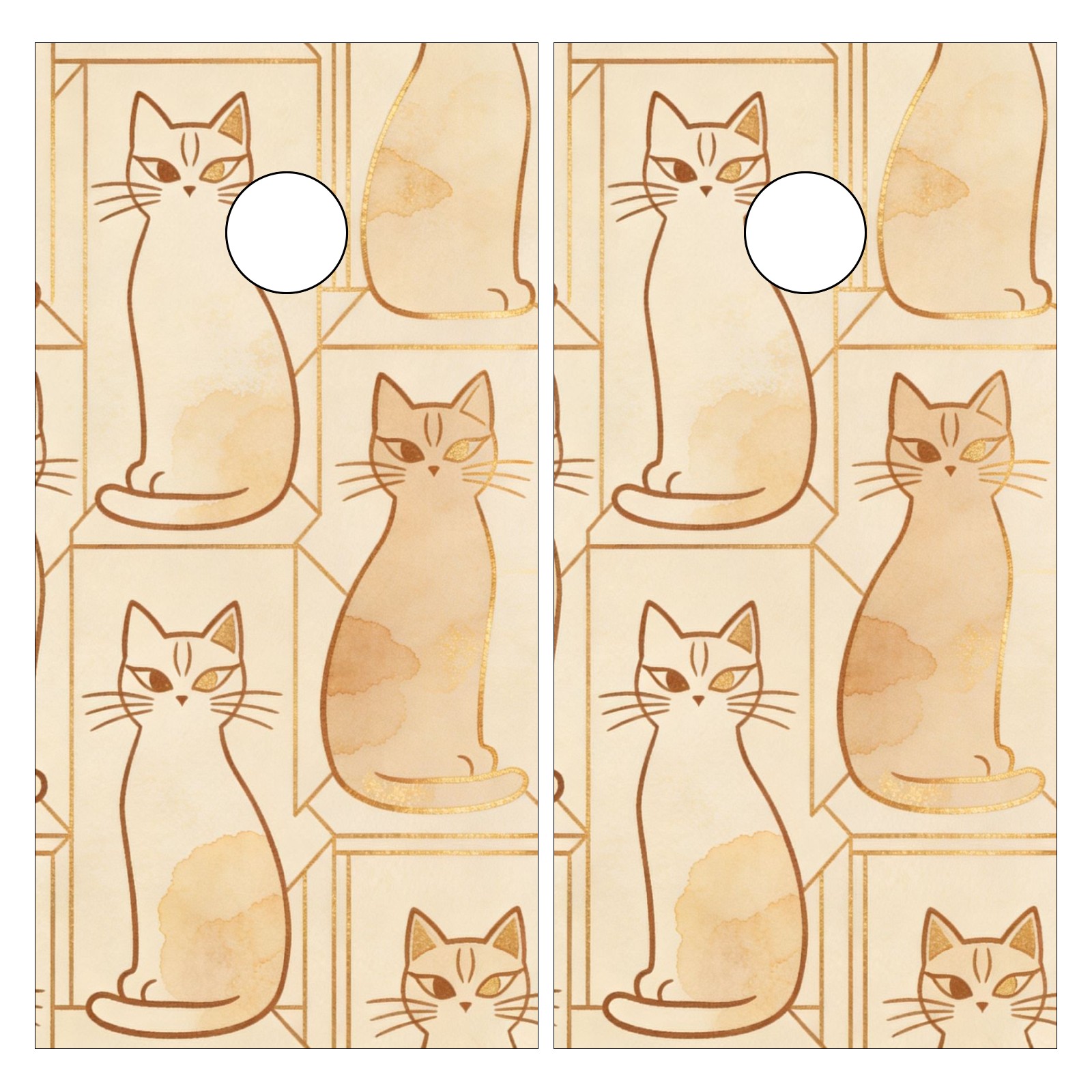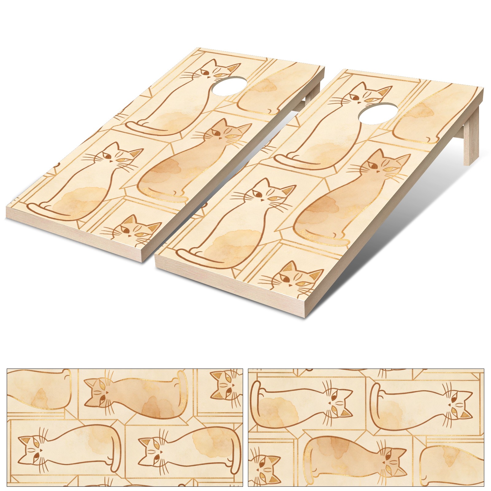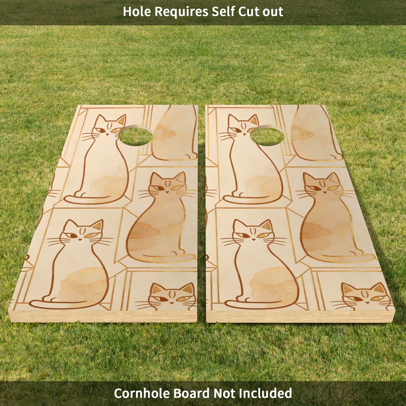 Portable 4x2 Ft Cornhole Boards Set with Two-piece Game Sticker(Decals ONLY), Easy to Apply - Corn Hole Games for Adults Outdoor Bean Bag Toss Game Simple Cat Pattern
