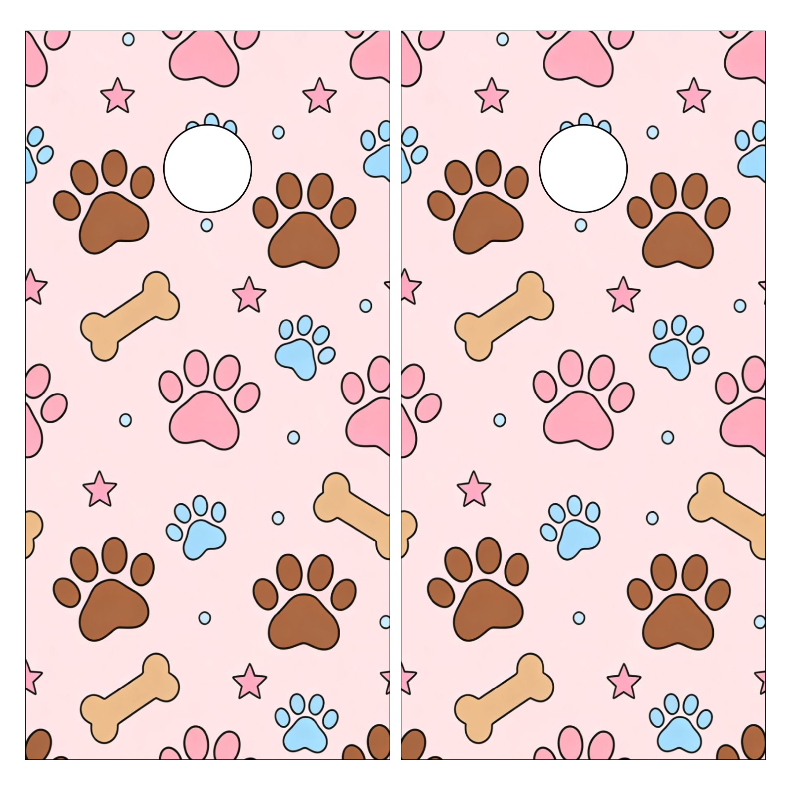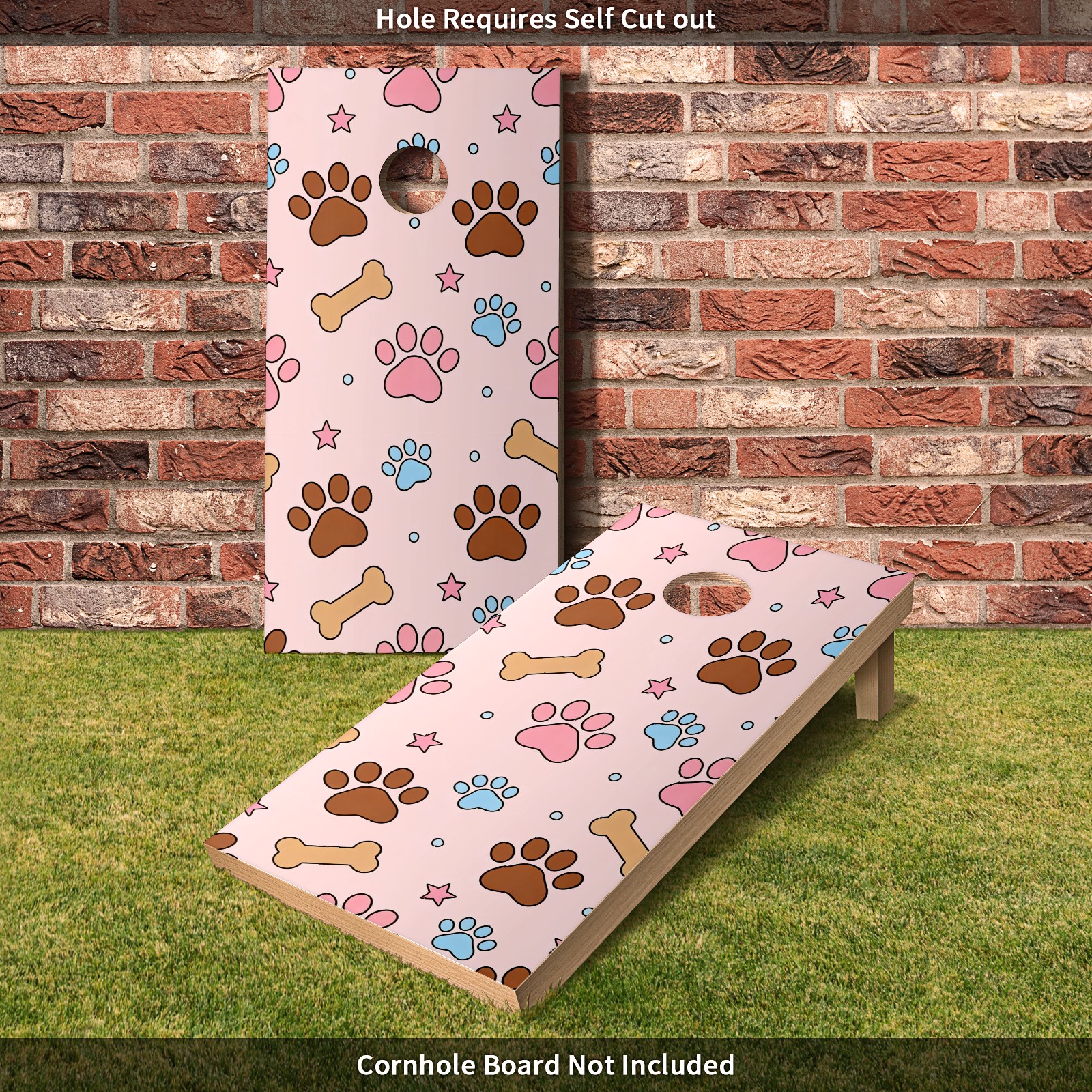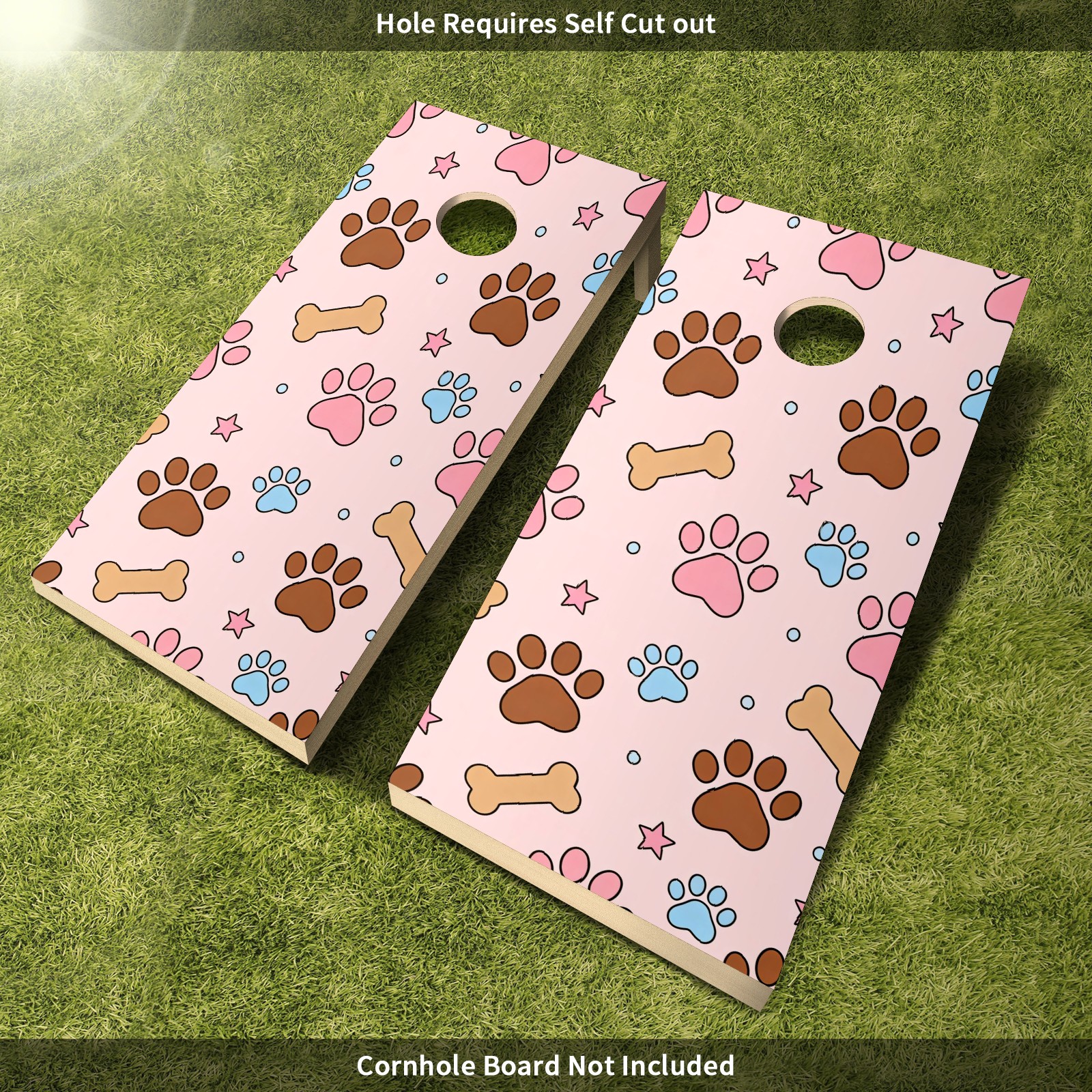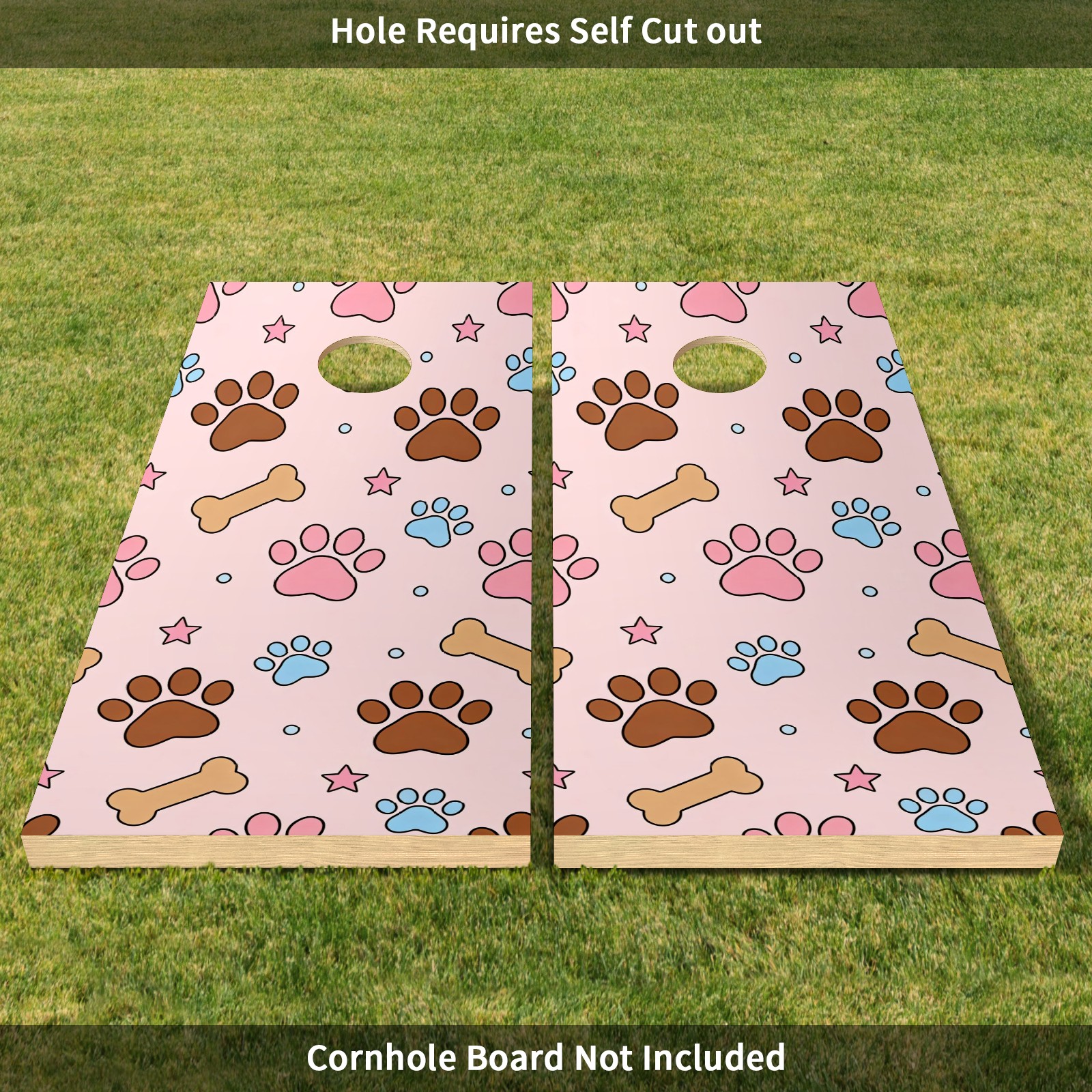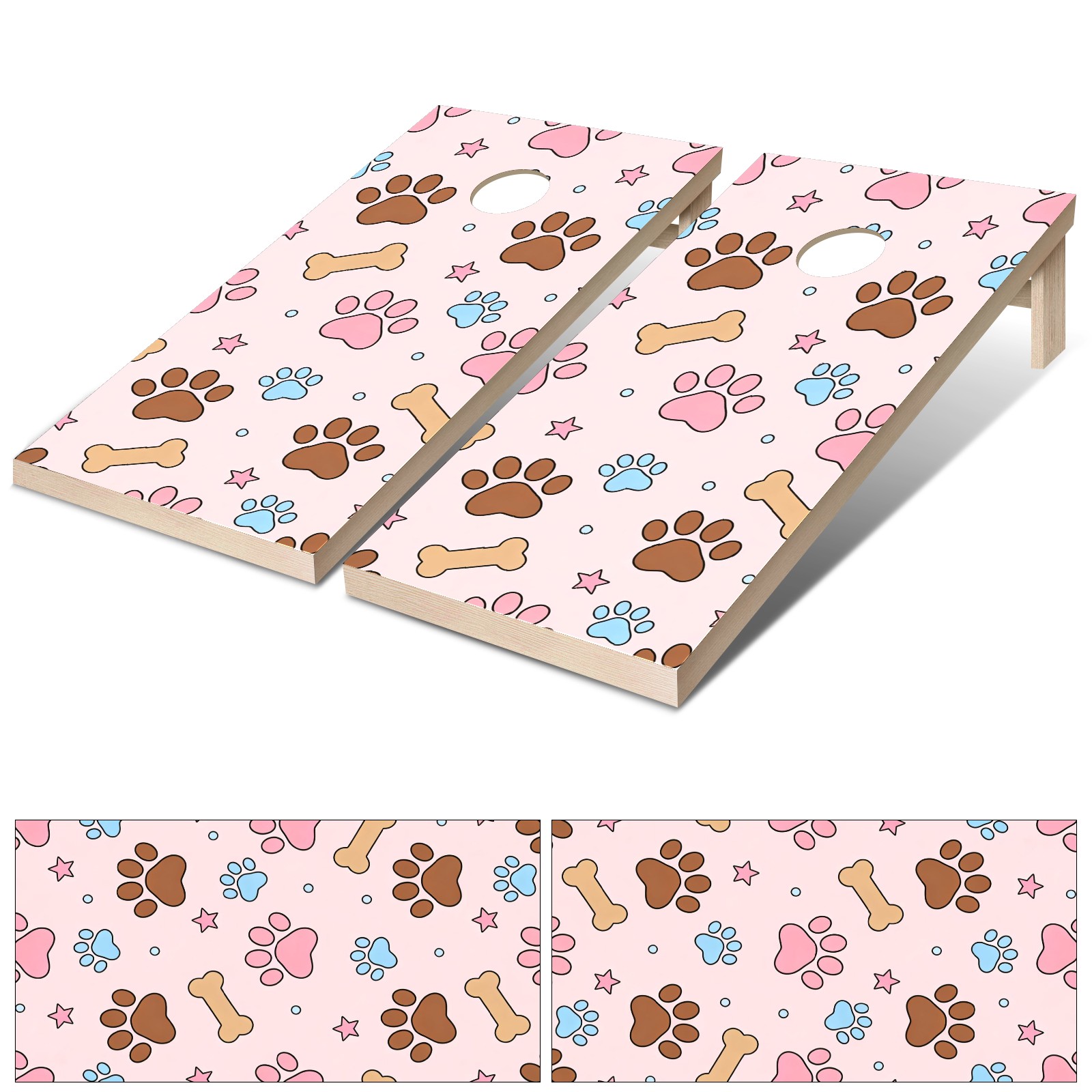 Portable 4x2 Ft Cornhole Boards Set with Two-piece Game Sticker(Decals ONLY), Easy to Apply - Corn Hole Games for Adults Outdoor Bean Bag Toss Game Pink Footprint Pattern