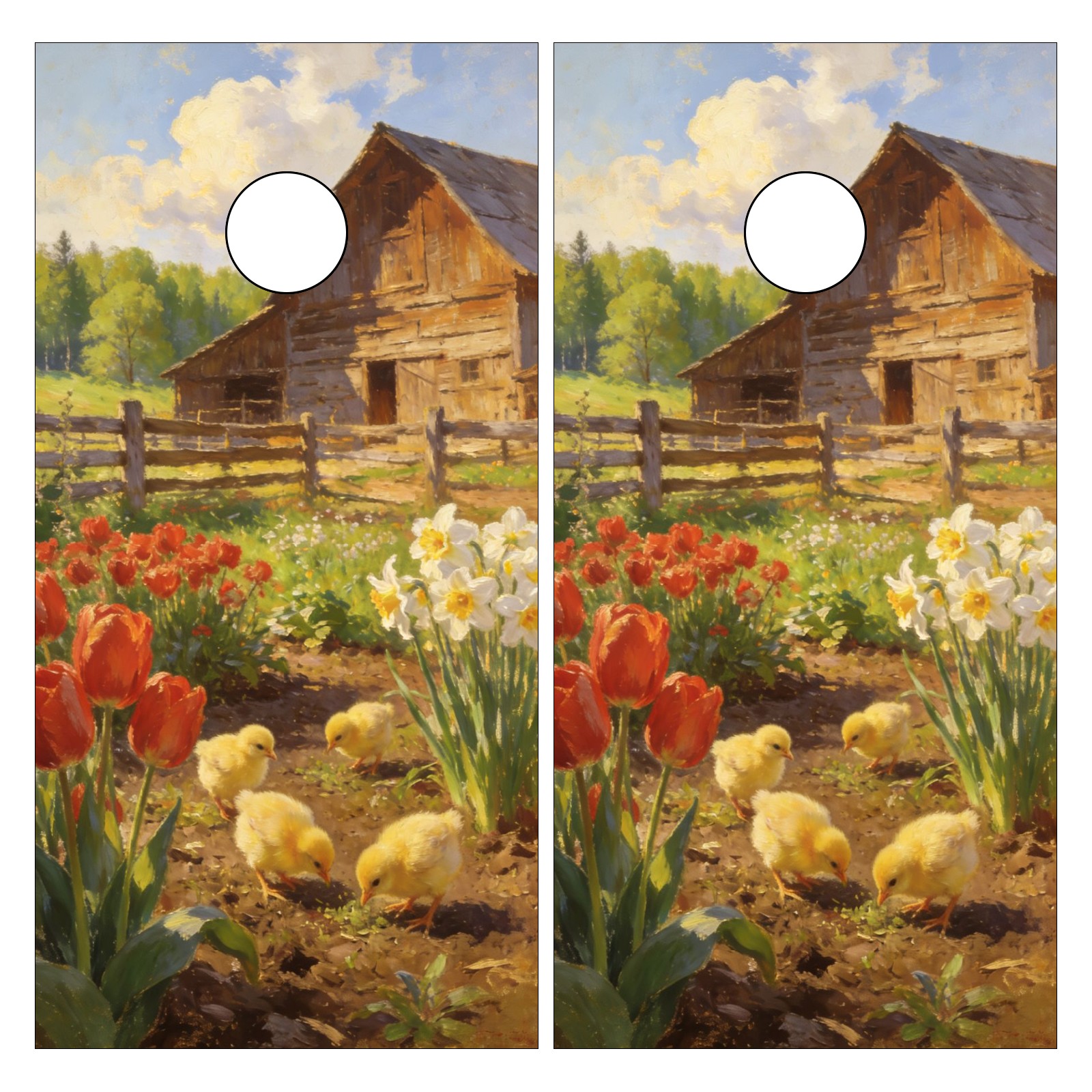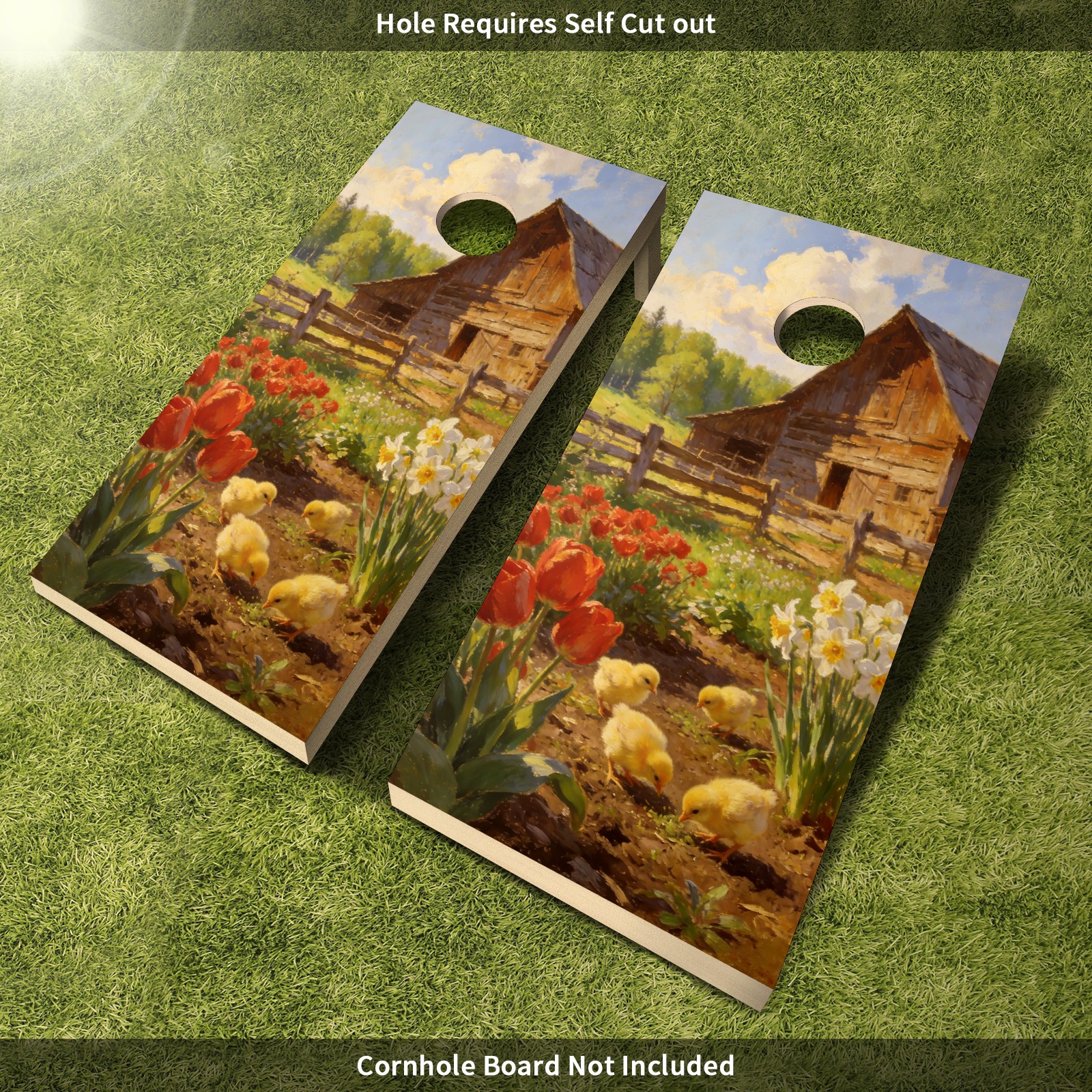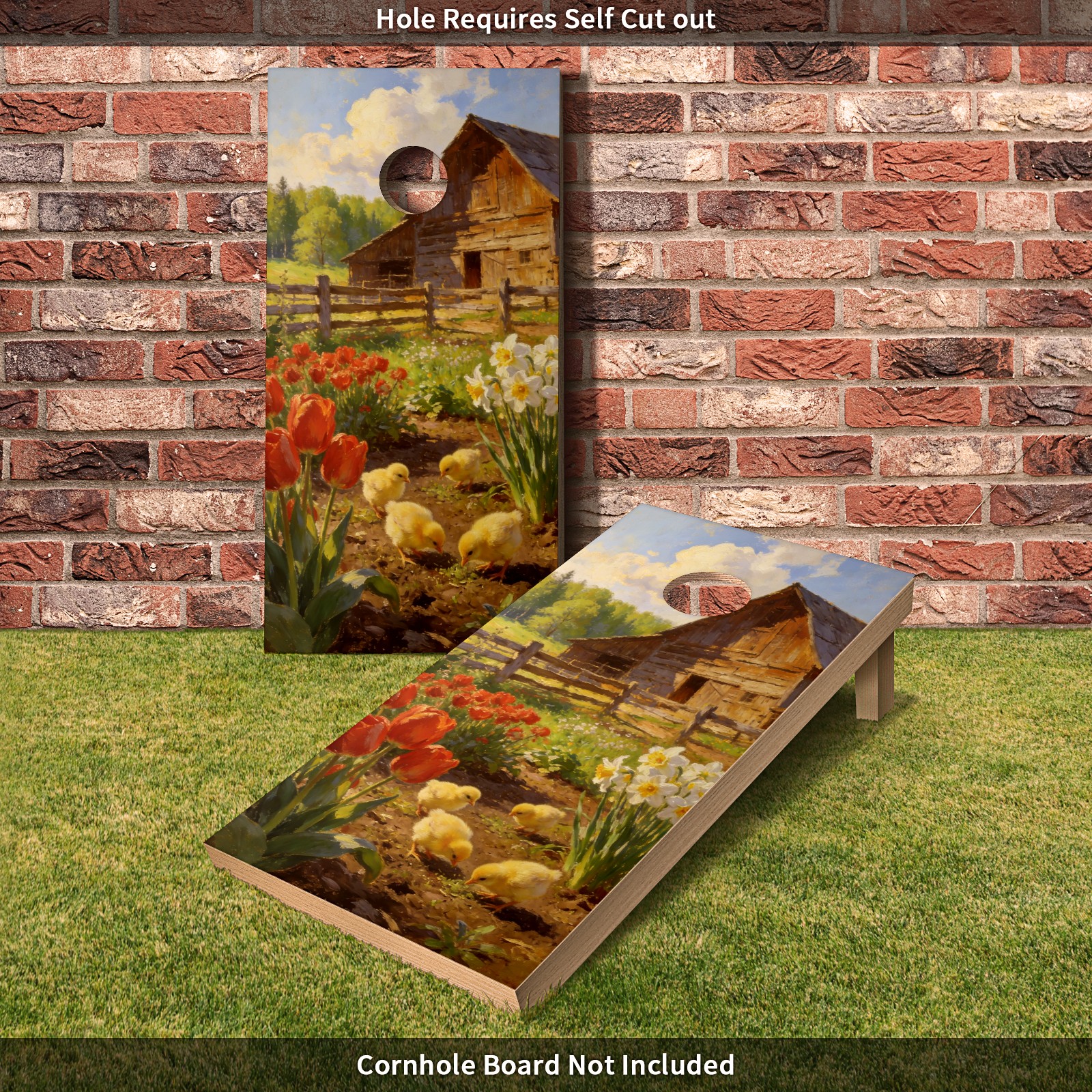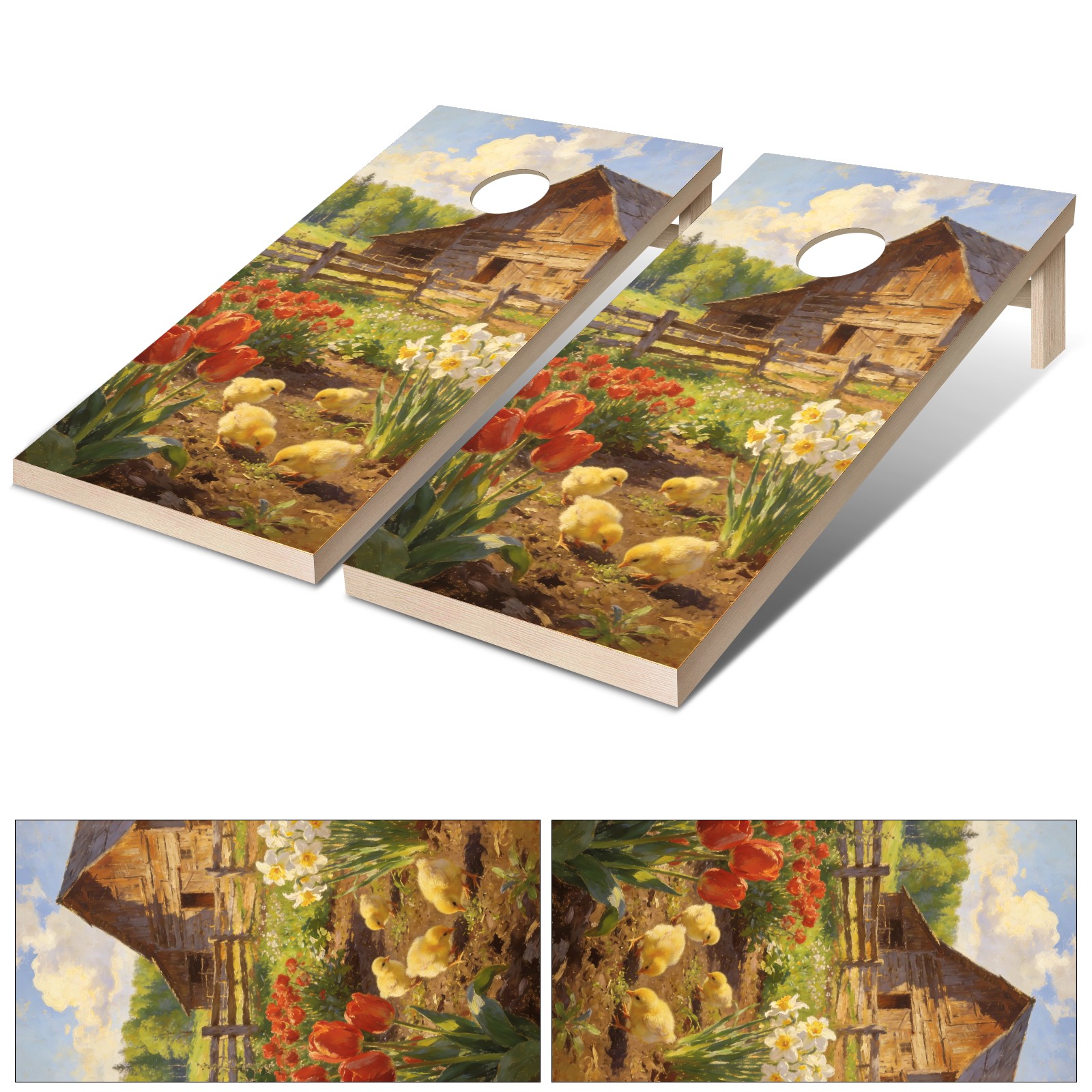 Portable 4x2 Ft Cornhole Boards Set with Two-piece Game Sticker(Decals ONLY), Easy to Apply - Corn Hole Games for Adults Outdoor Bean Bag Toss Game Oil Painting House Pattern